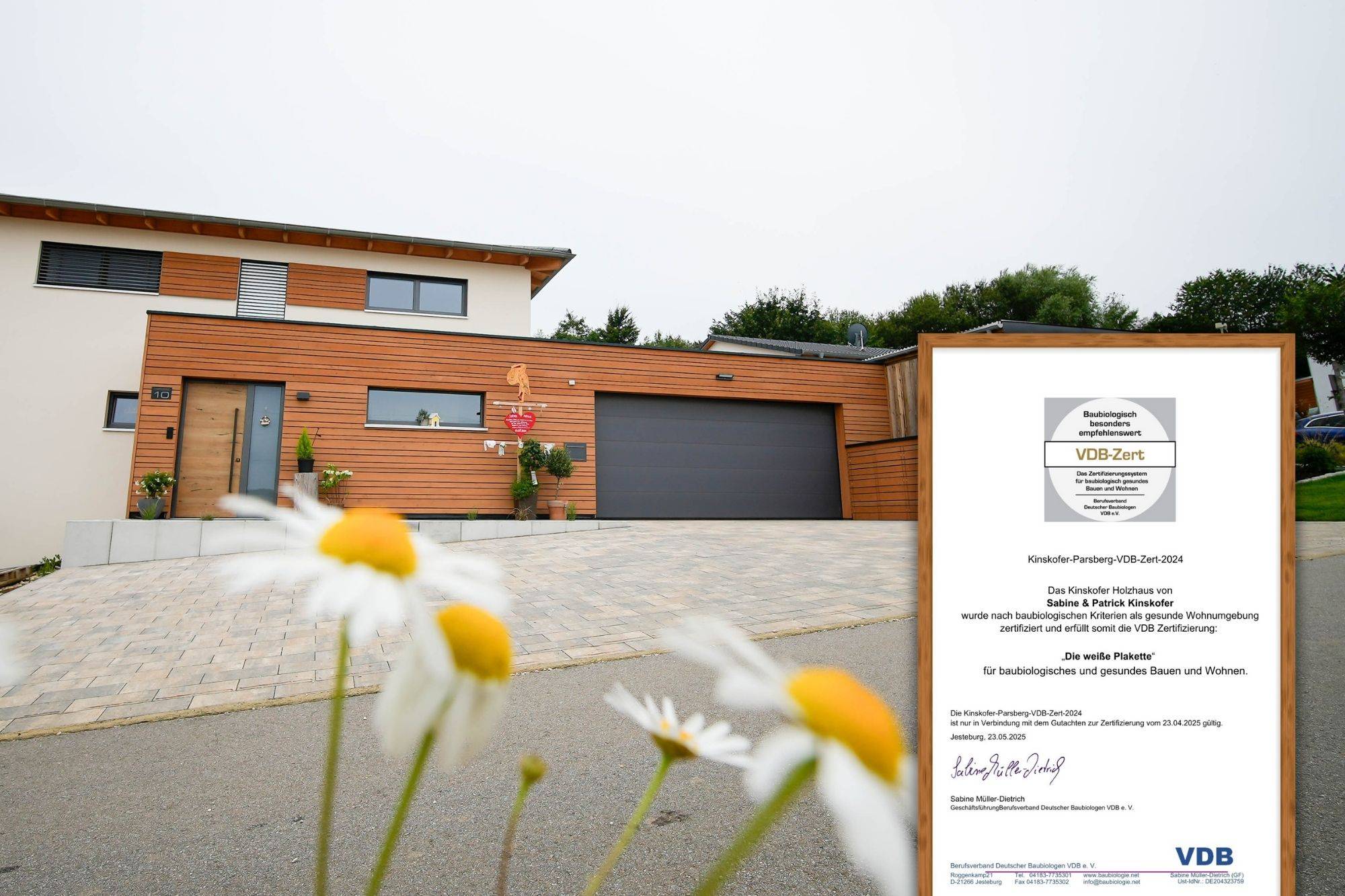 Ein Grund zur Freude – und ein echtes Gütesiegel für unsere Philosophie: Das neue Zuhause unserer beiden Junior-Chefs, Sabine und Patrick Kinskofer, wurde vom Berufsverband Deutscher Baubiologen (VDB e. V.) mit der weißen Plakette für baubiologisches und gesundes Bauen und Wohnen ausgezeichnet.