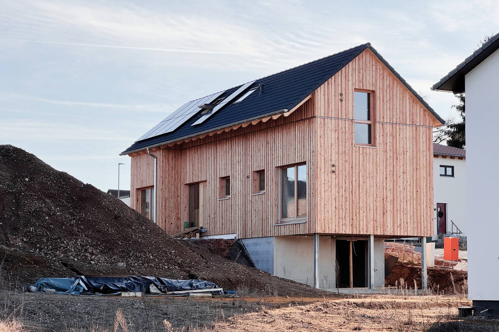 Auch die Architektur folgt klaren Prinzipien: kompakt, funktional, barrierefrei. Schlafzimmer und Bad befinden sich im Erdgeschoss, Südfenster oder eine klassische Haustür gibt es nicht – der Eingang erfolgt über die Terrasse. „Viele Häuser werden für eine Lebenssituation gebaut, die vielleicht 20 Jahre hält“, sagt der Kulturwissenschaftler. „Ich wollte etwas, das dauerhaft Sinn ergibt.“