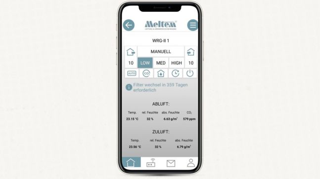 Über eine Handyapp lassen sich die Lüfter im Haus bequem steuern und programmieren.