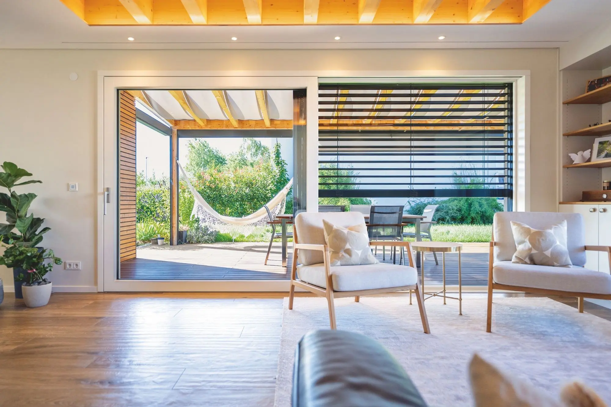 Mit Raffstores lässt man im Sommer Licht ins Haus, die Sonnenstrahlen bleiben draußen.