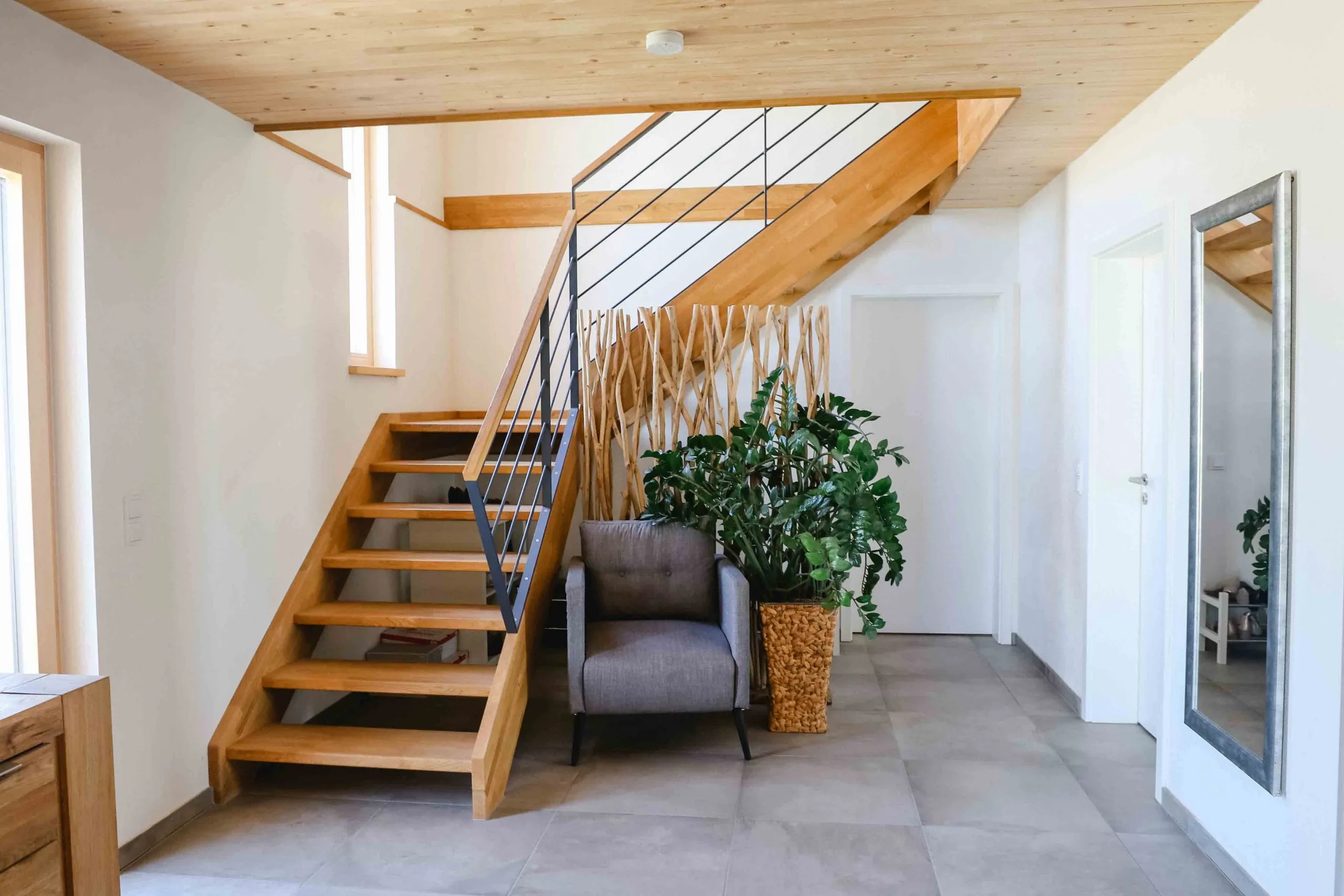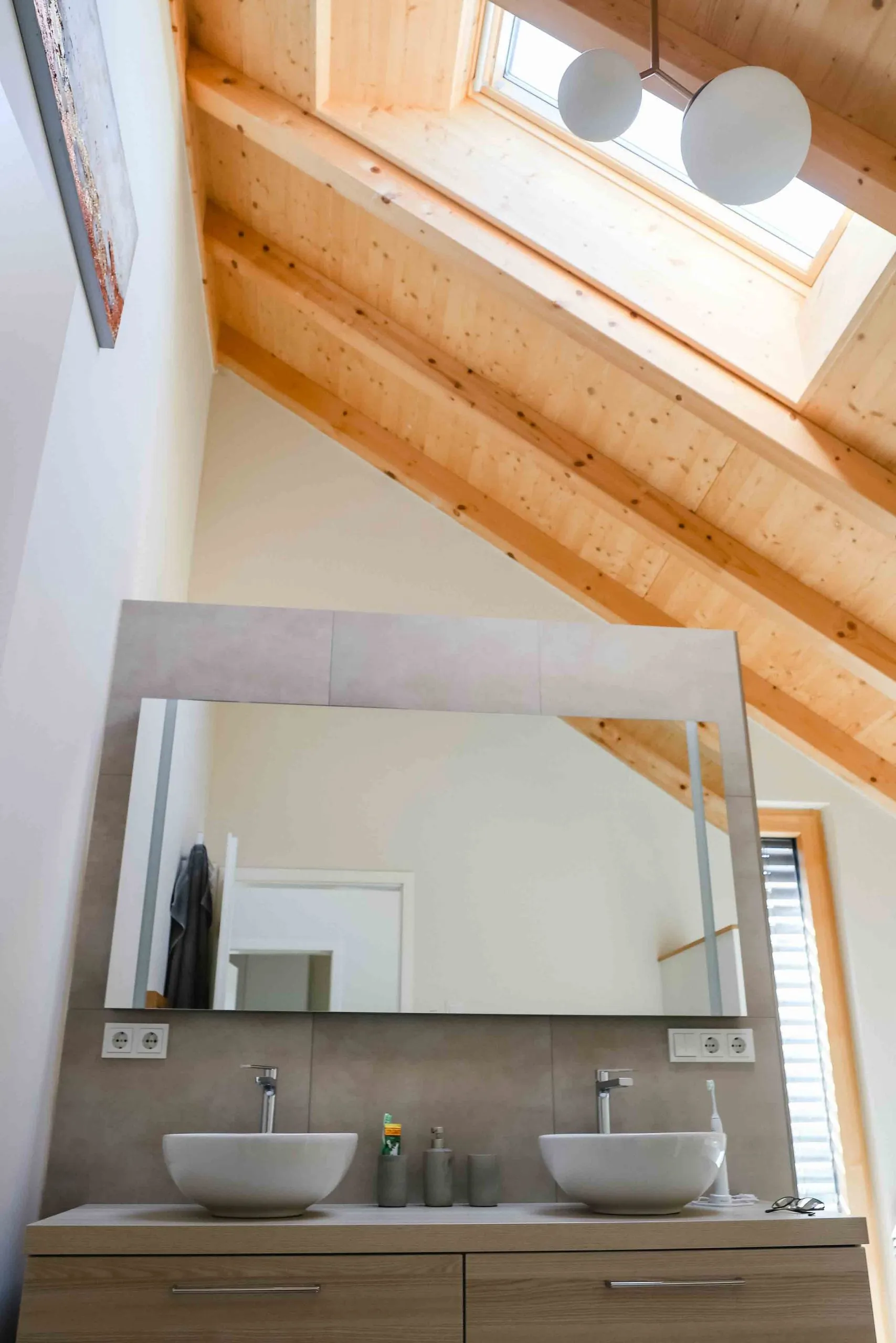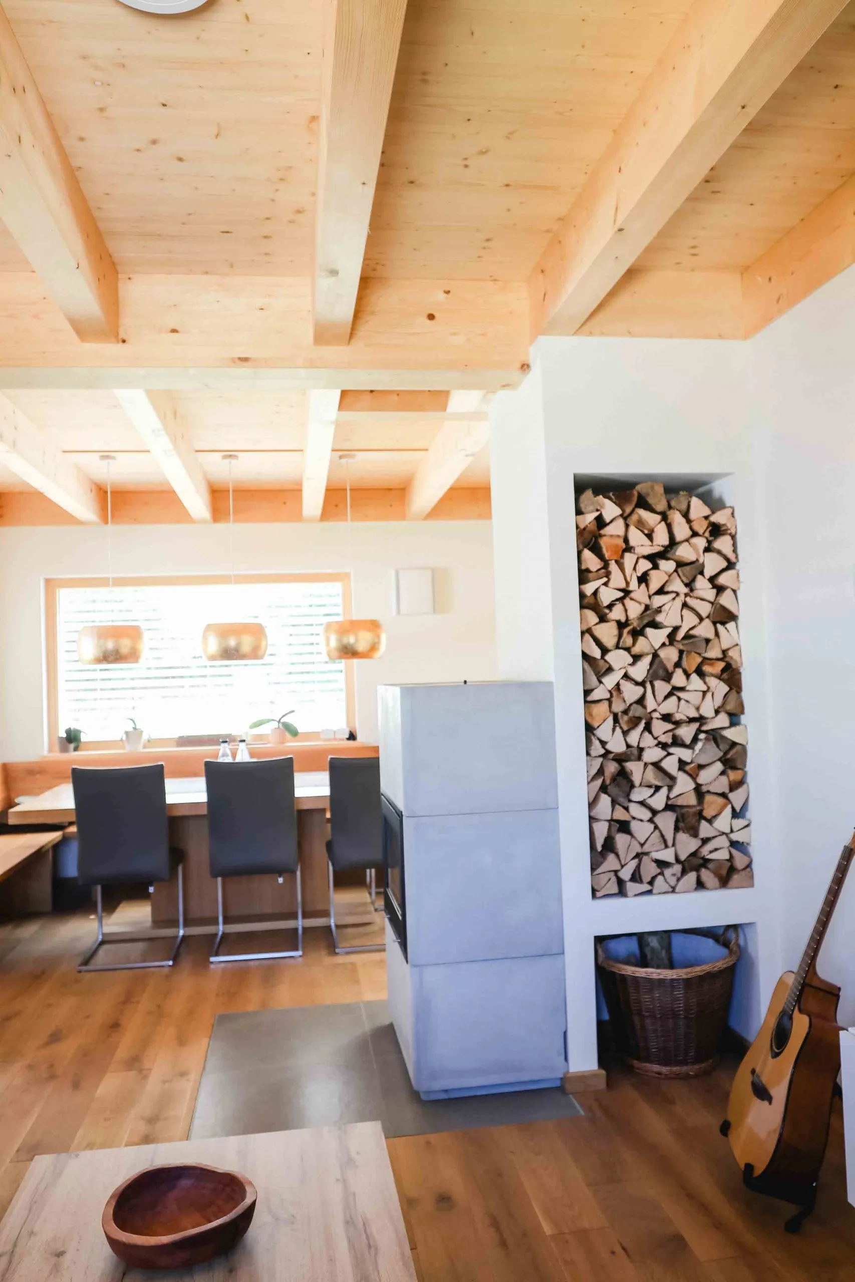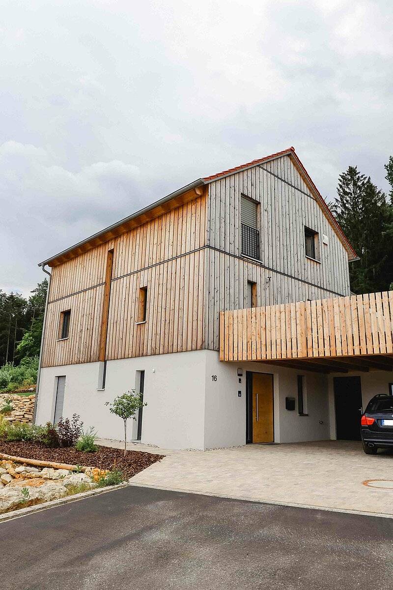 Viel Eigenleistung, Eingang durch Hanglage im Kellergeschoss, Dielenboden in der Küche, Brettstapeldecke im Kellergeschoss