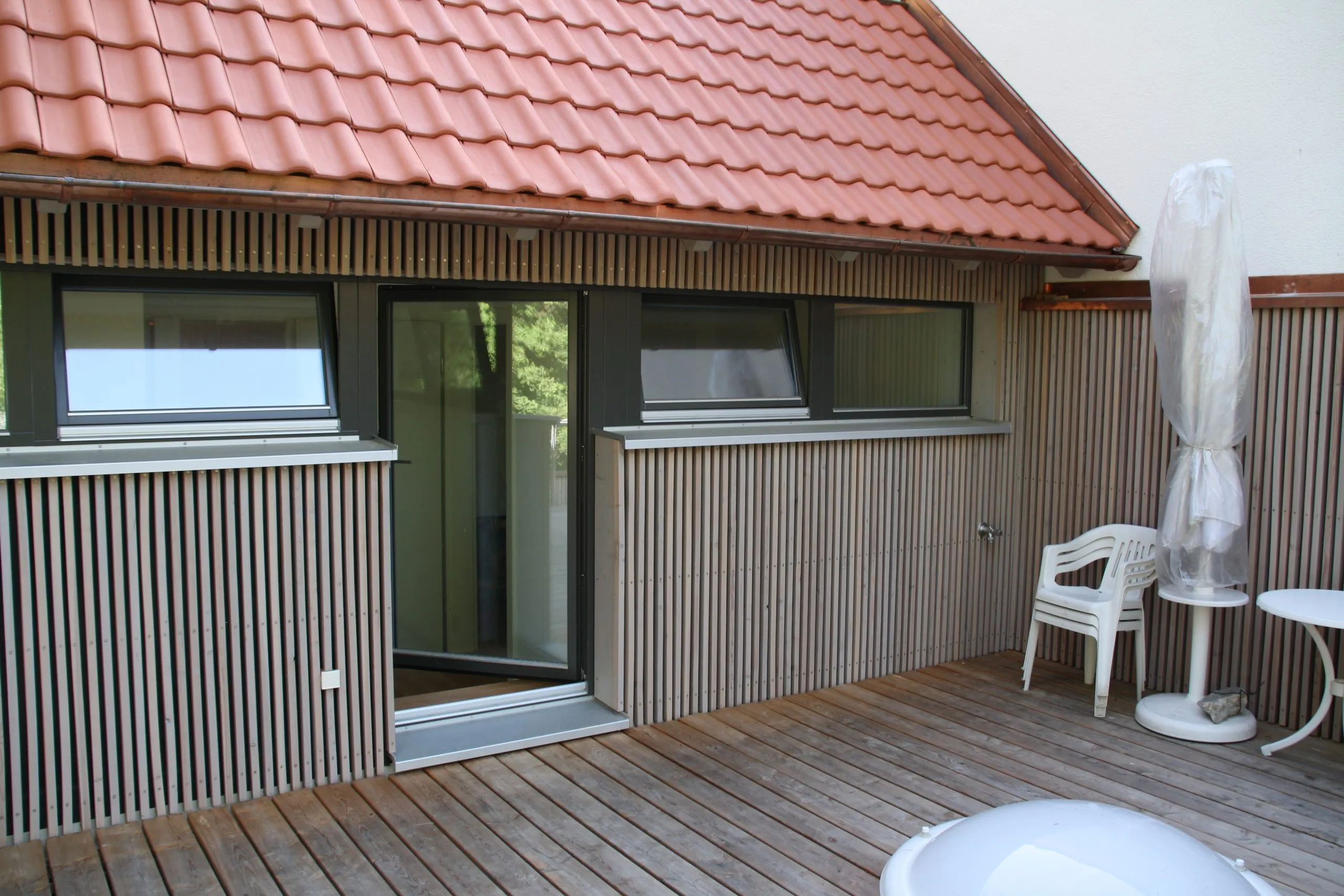 Anbau an ein bestehendes Gebäude als Galerie, Fußboden mit Spachteltechnik