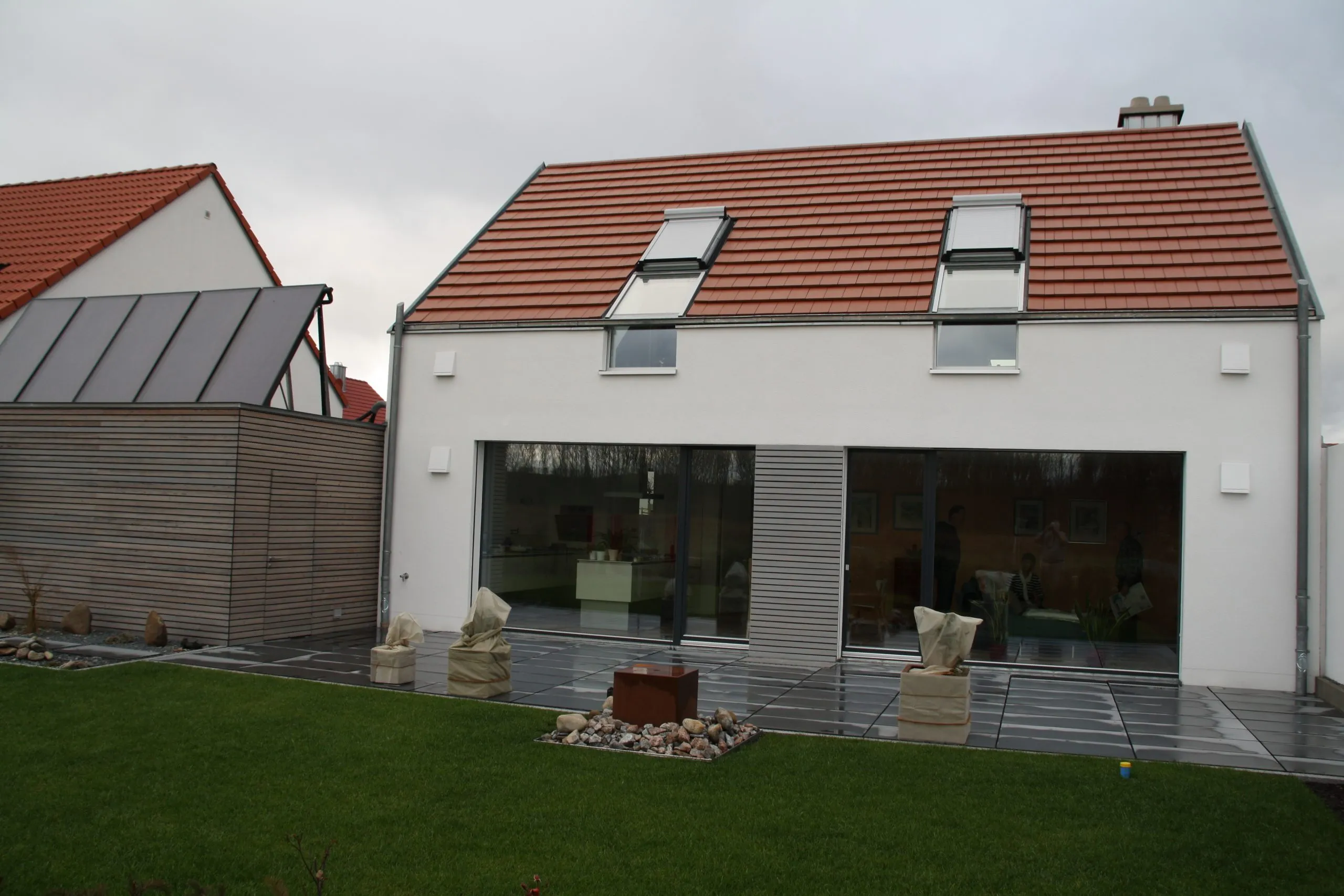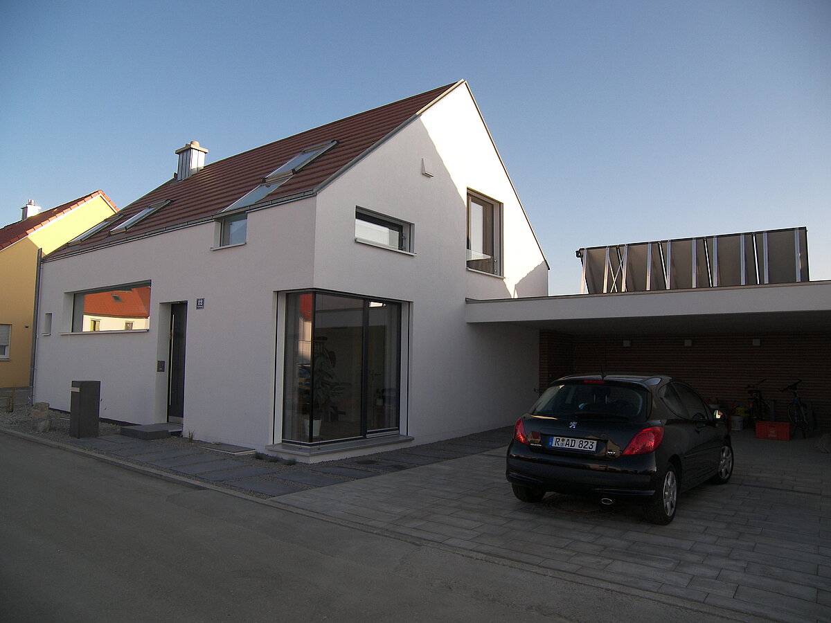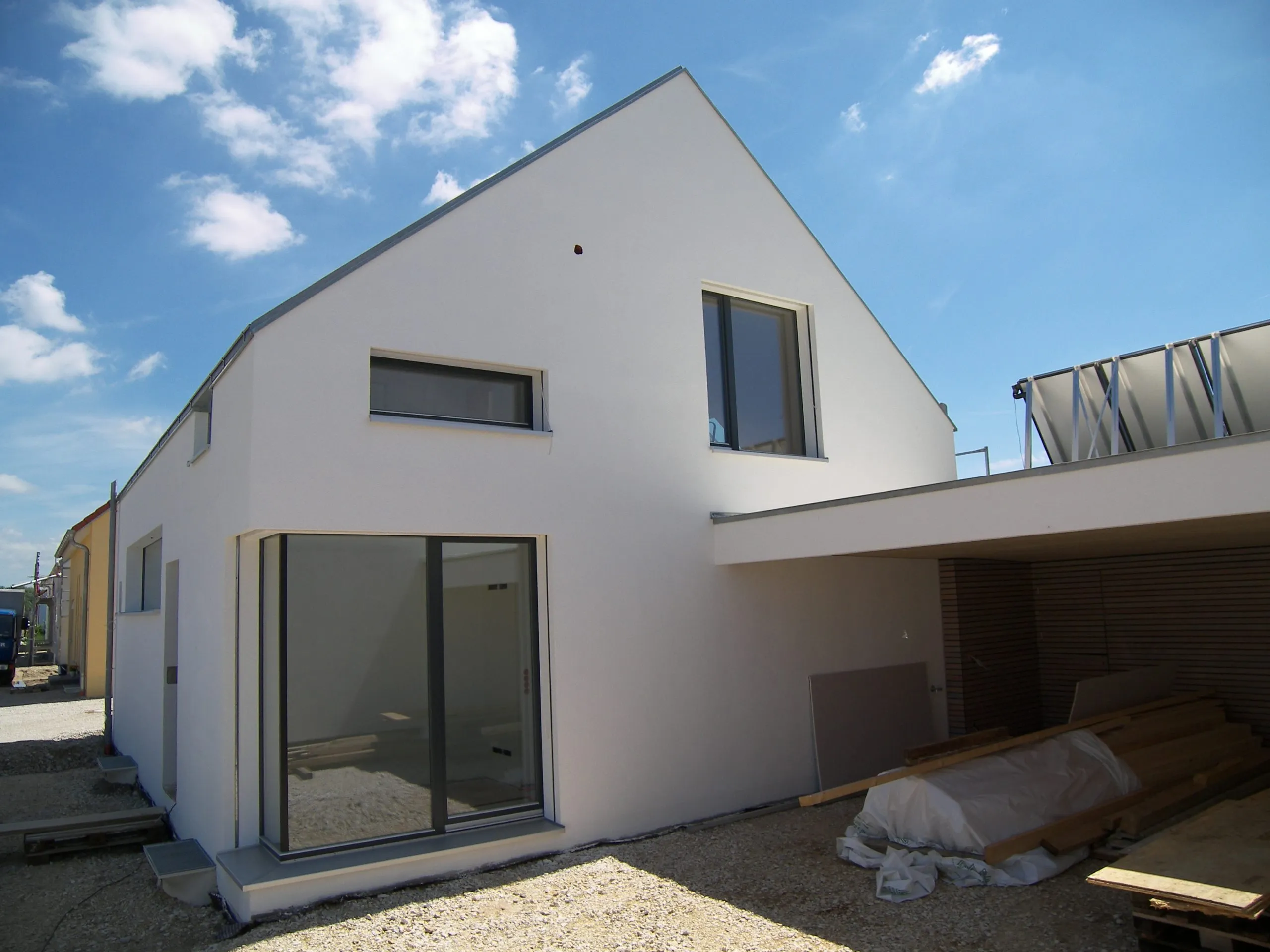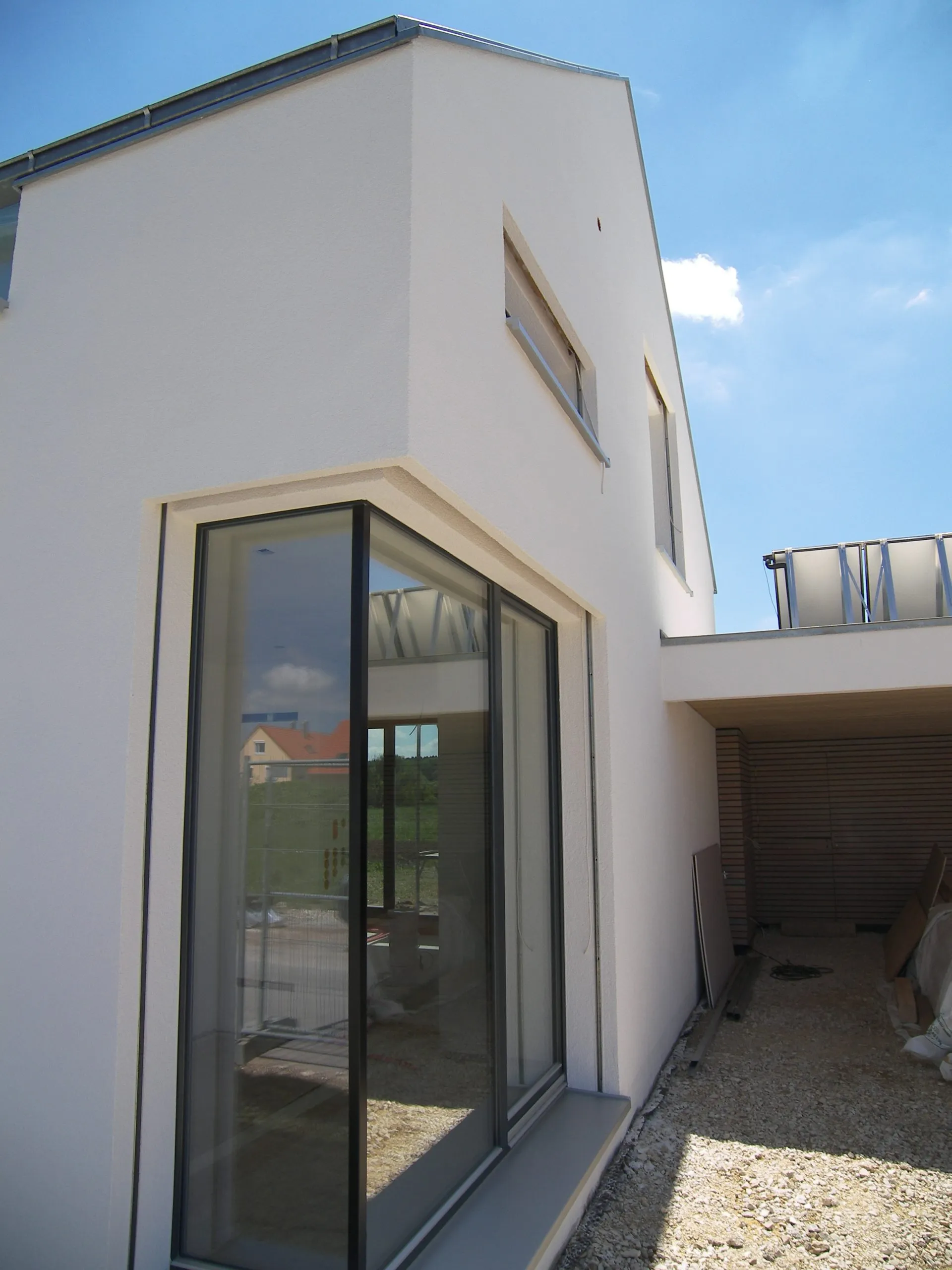 Modernes Architektenhaus ohne Dachüberstand, Dachfenster integriert
