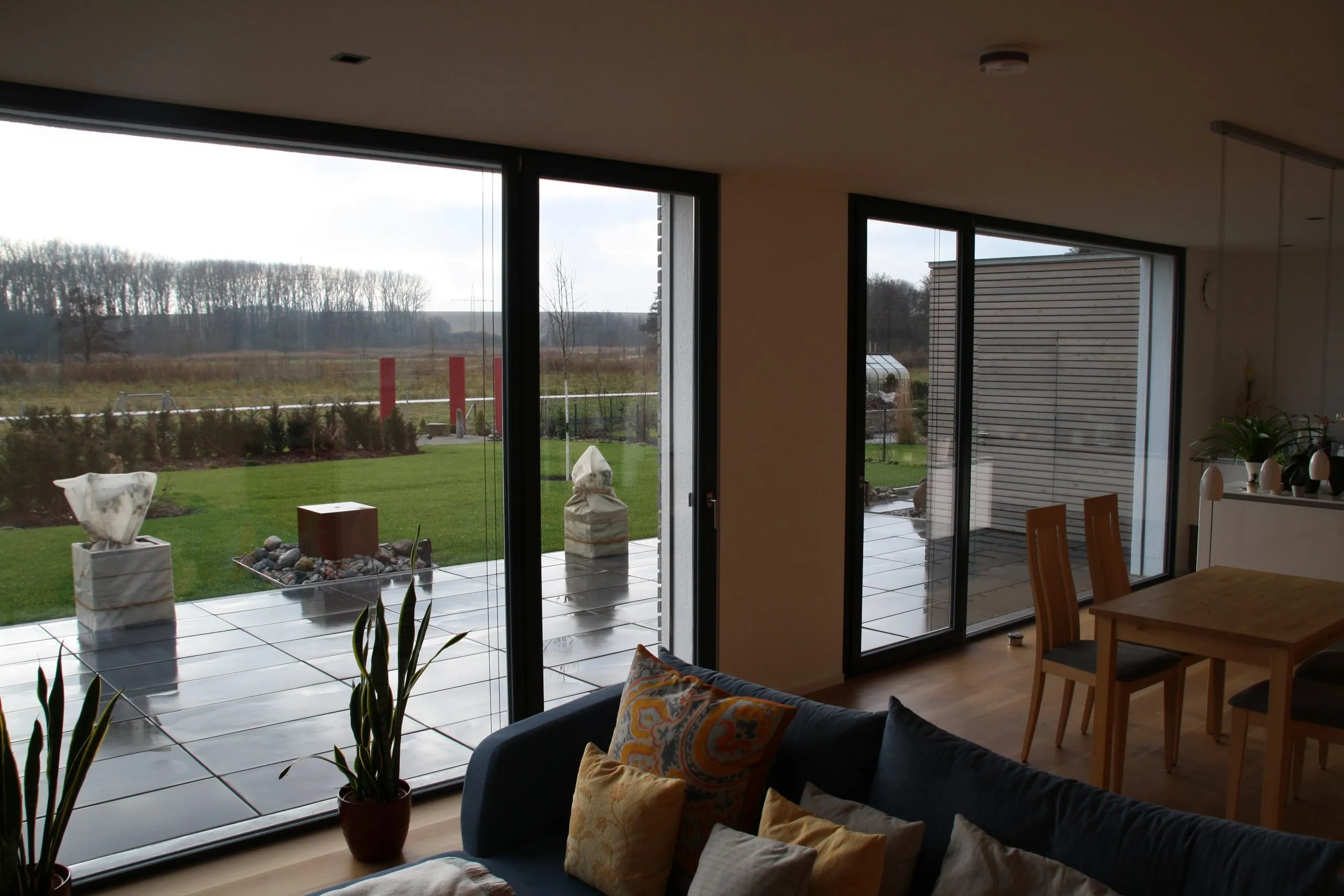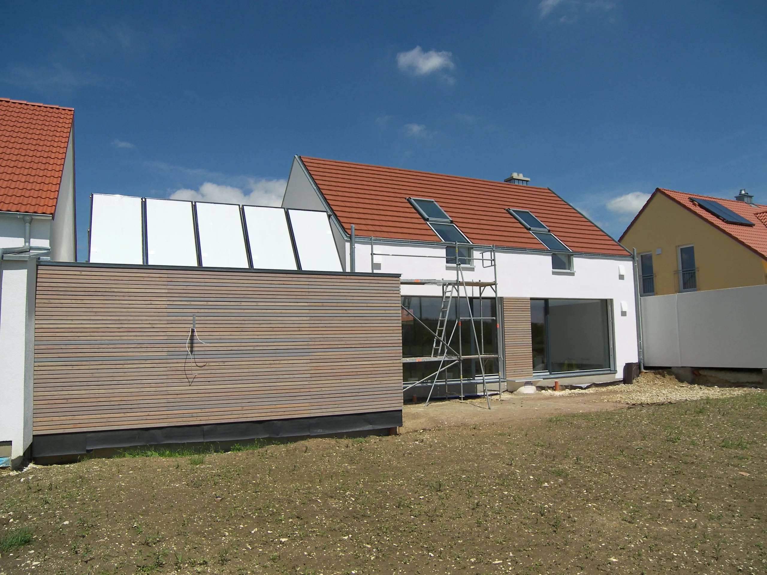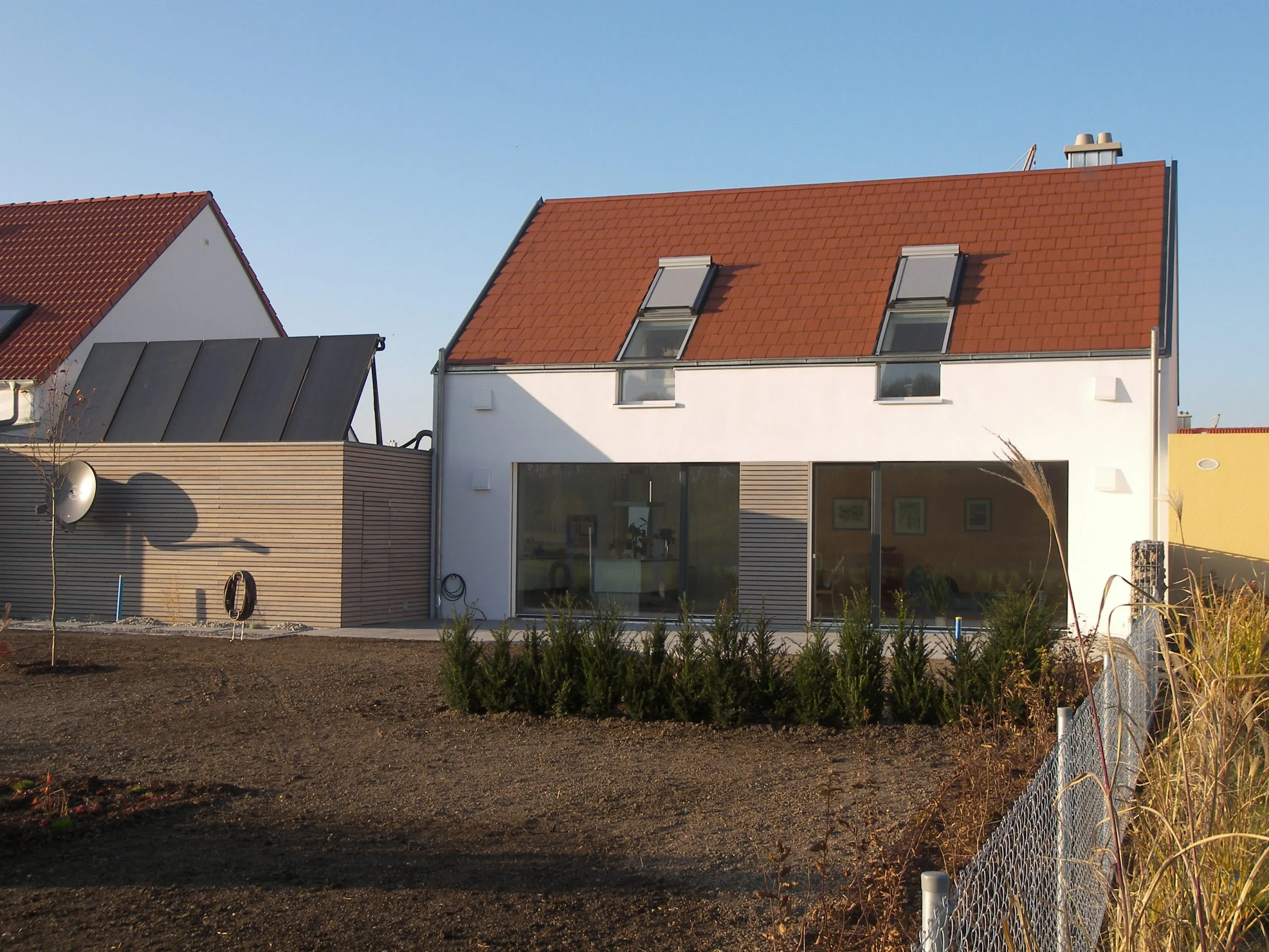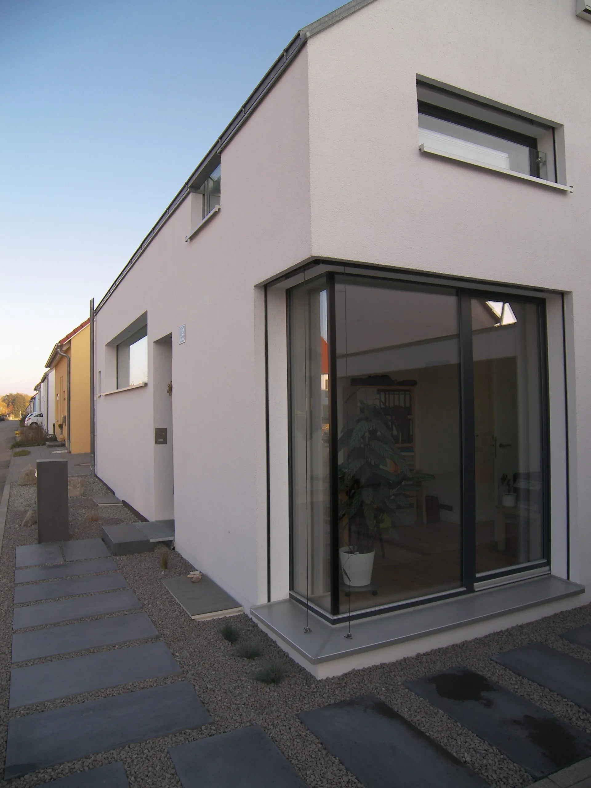 Modernes Architektenhaus ohne Dachüberstand, Dachfenster integriert