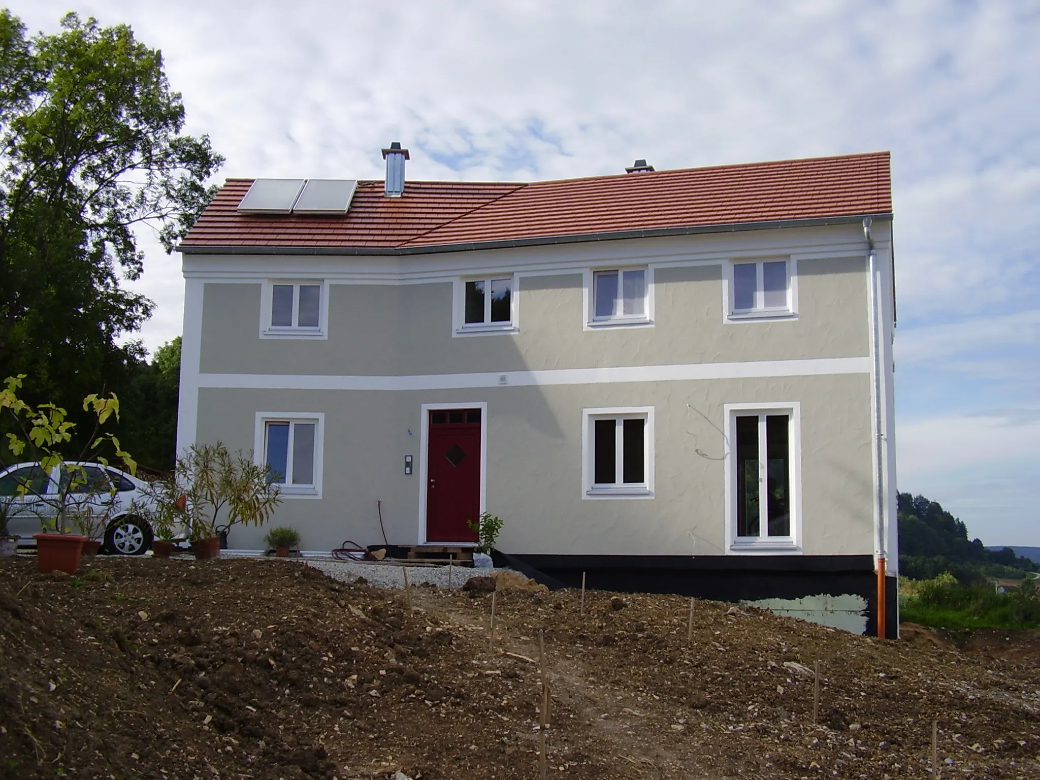 Haus im Jura-Stil mit Gesimsen, Kellerdecke aus Holz