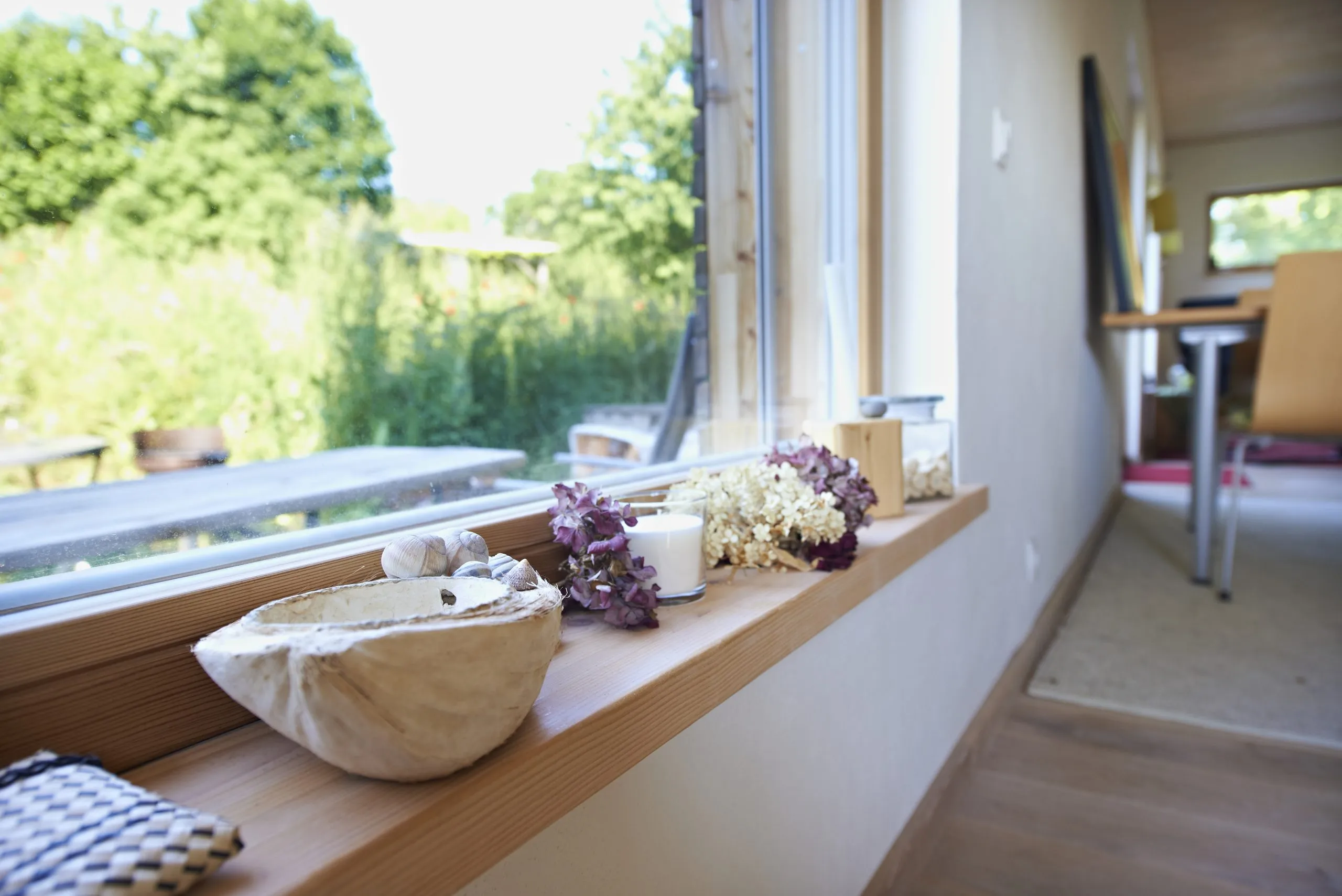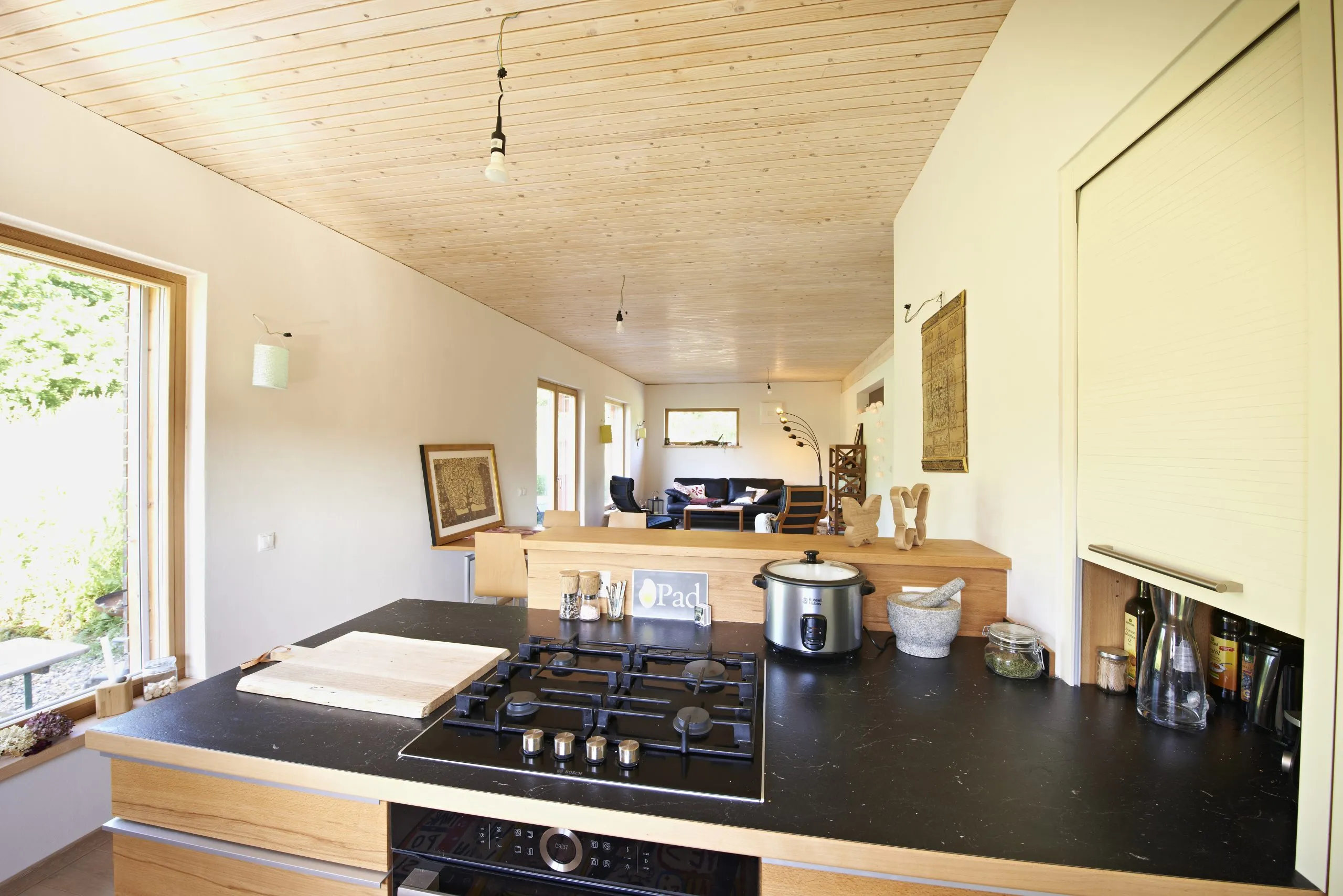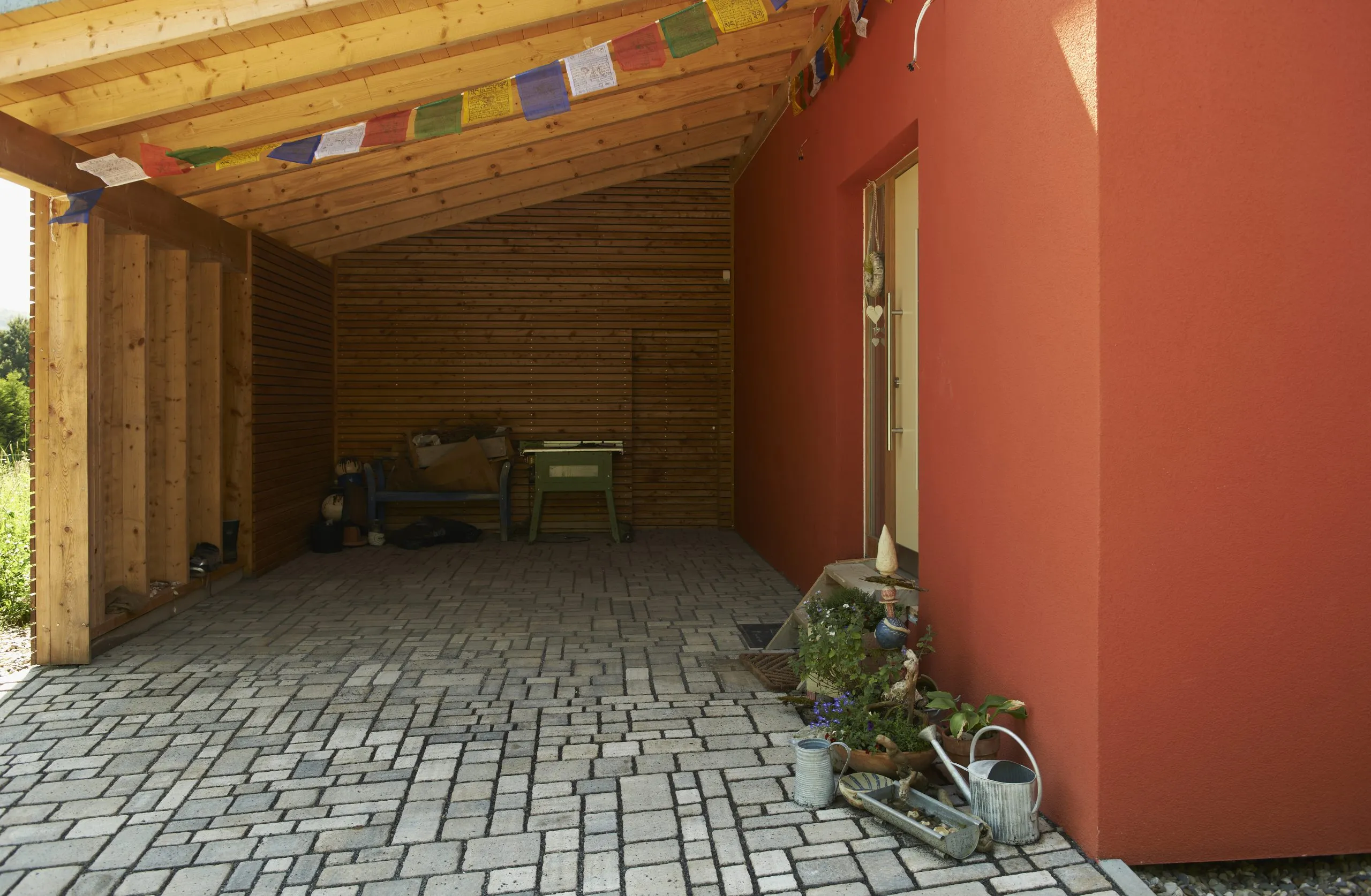 Sehr schönes kleines Haus auf Betonpfählen mit einem Pultdach und einem Anbau auf einem Schraubenfundament, der 2020 entstand.