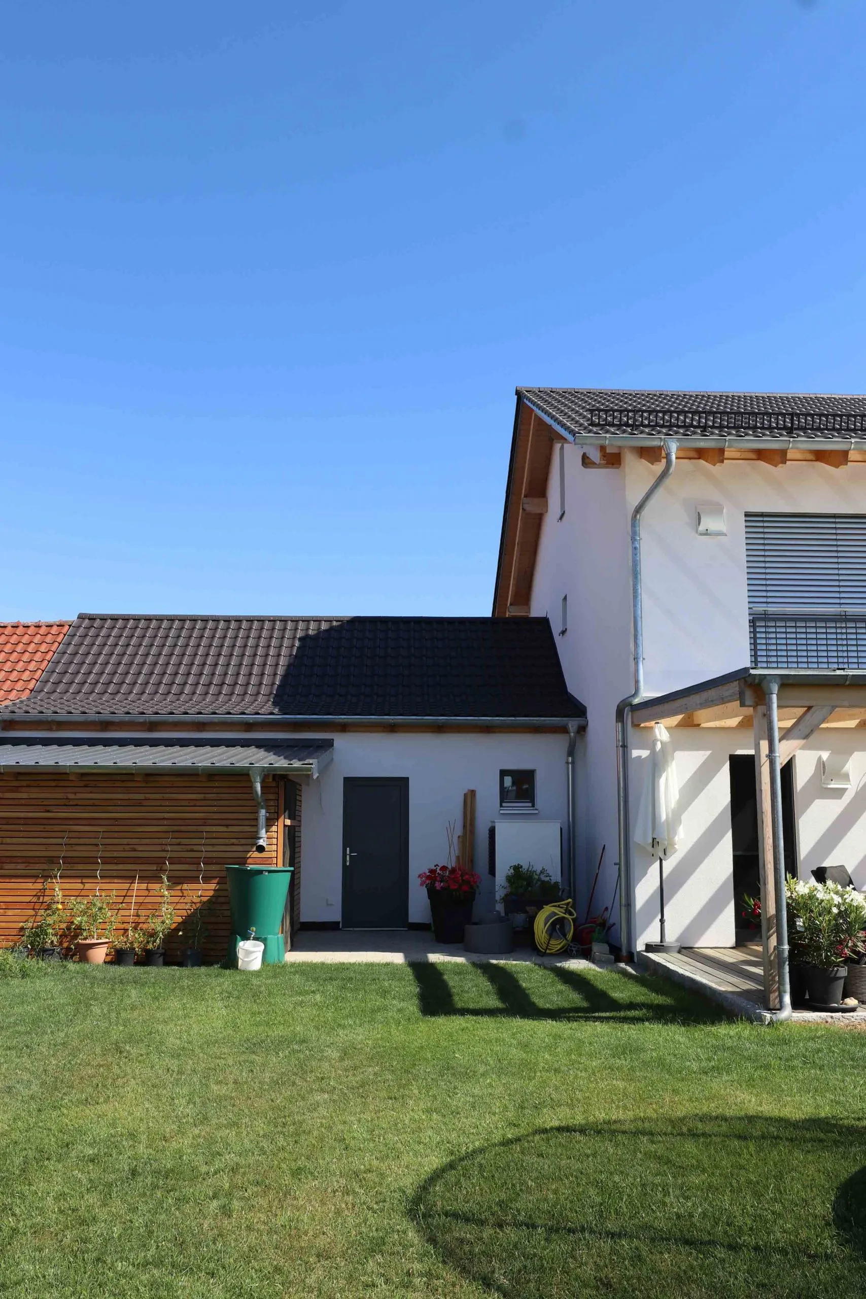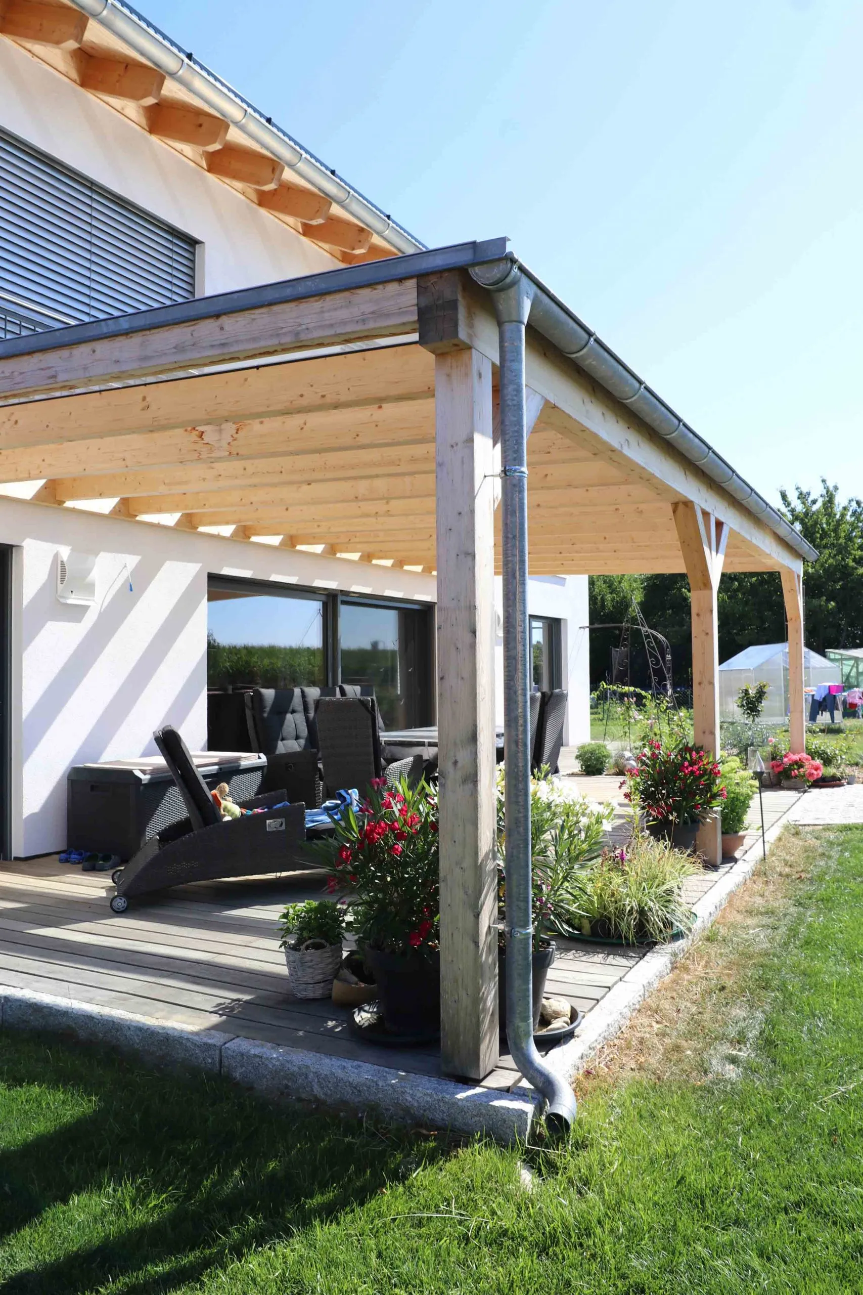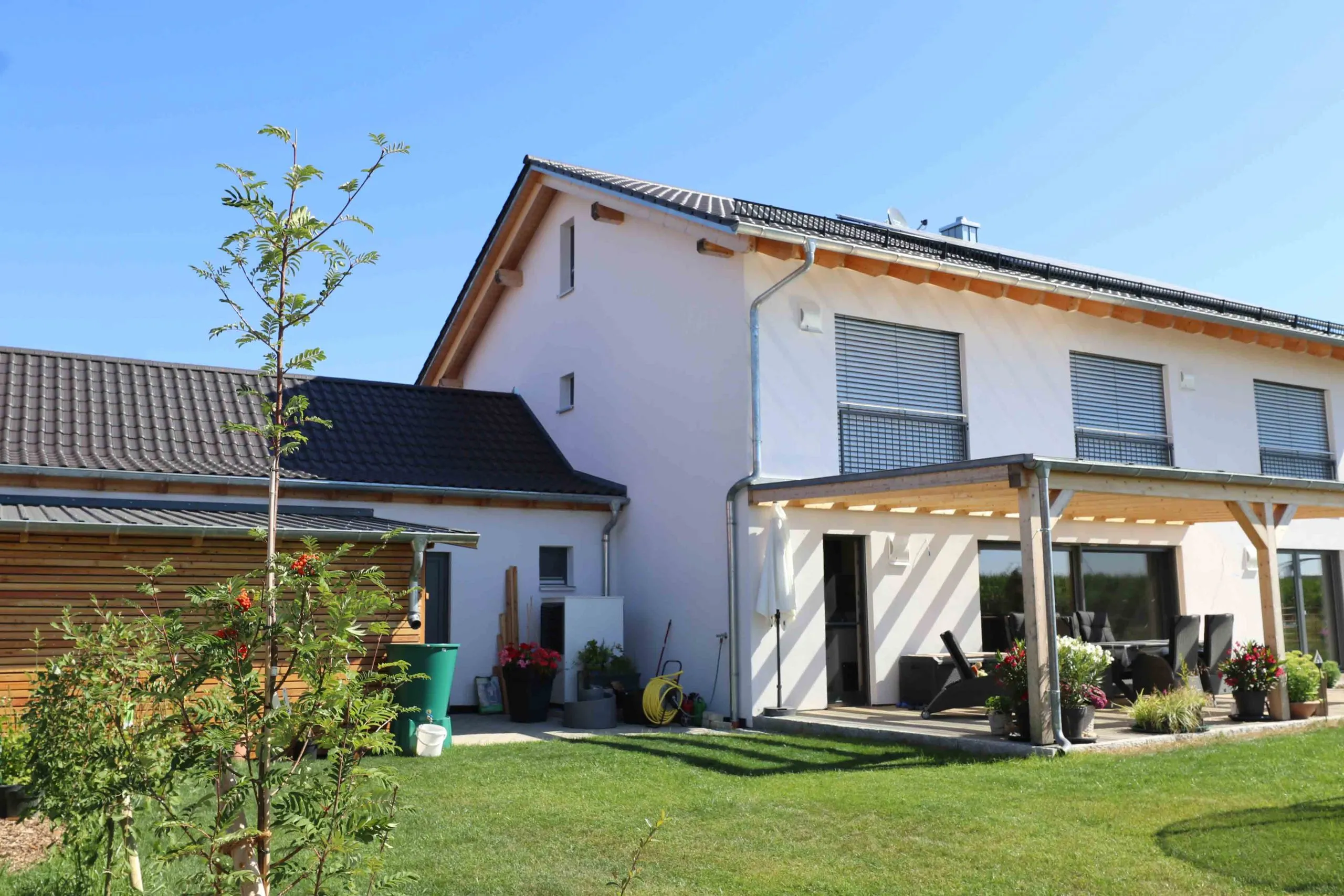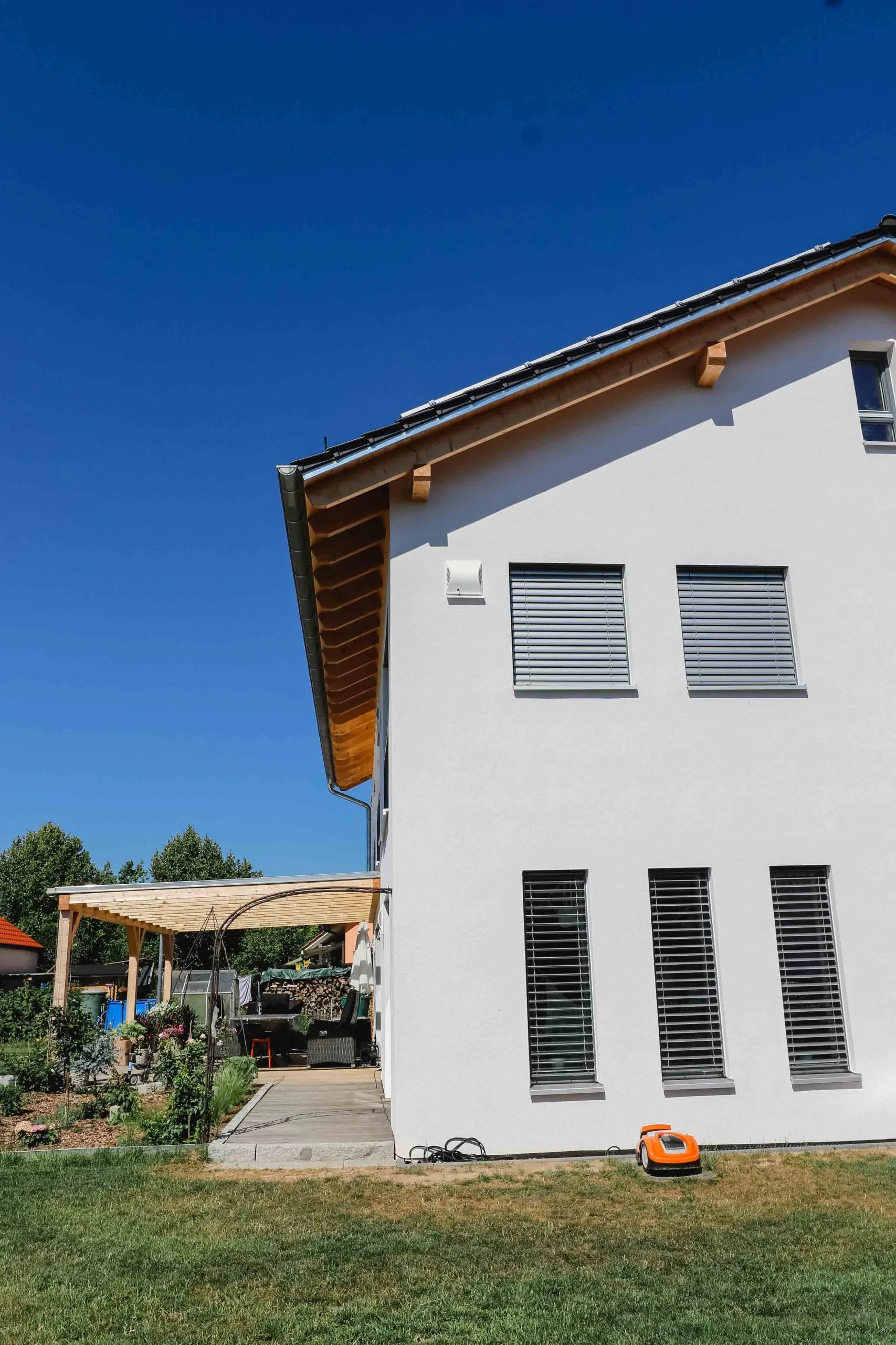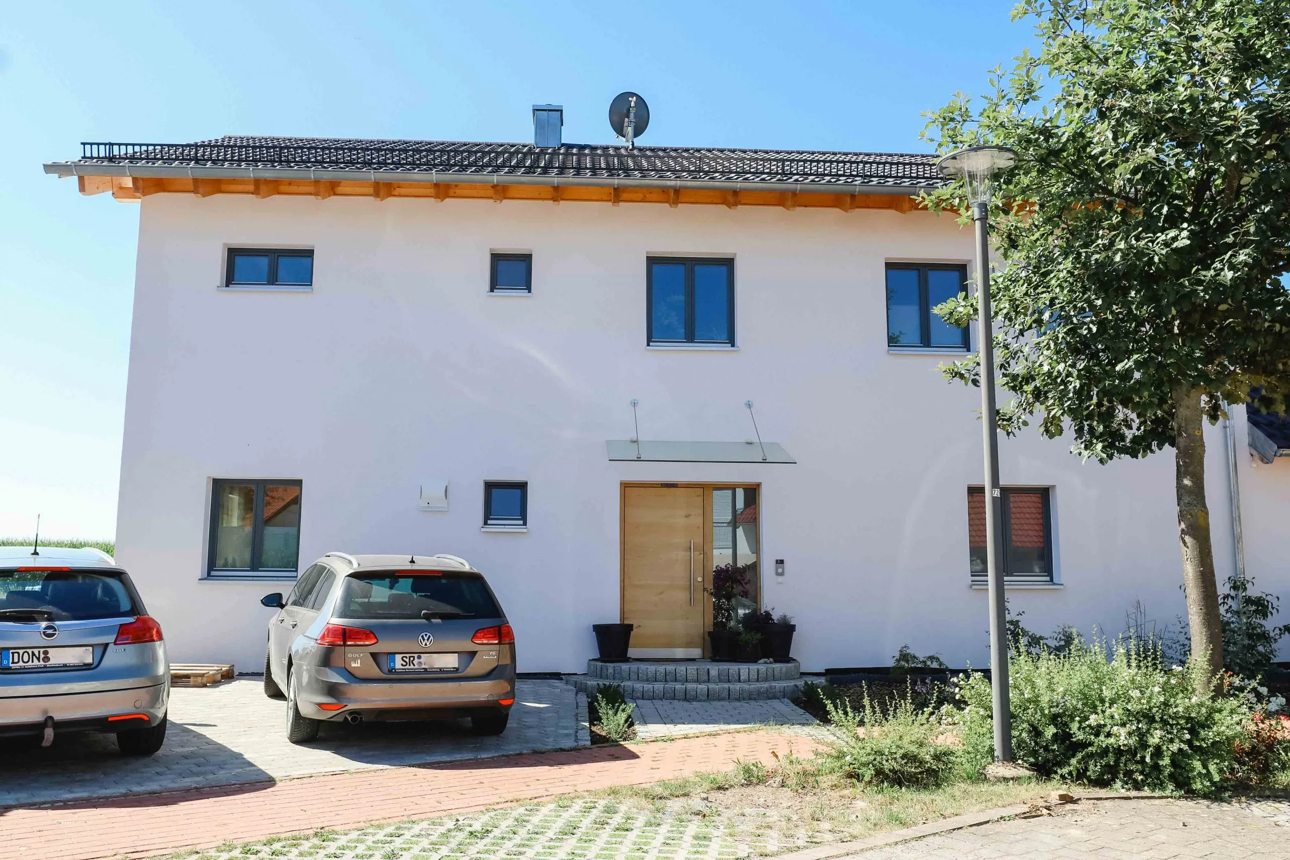 Sichtdecke farblos gestrichen, massiver Eichendielenboden mit Weißpigmenten, Vollholztüren aus Eiche