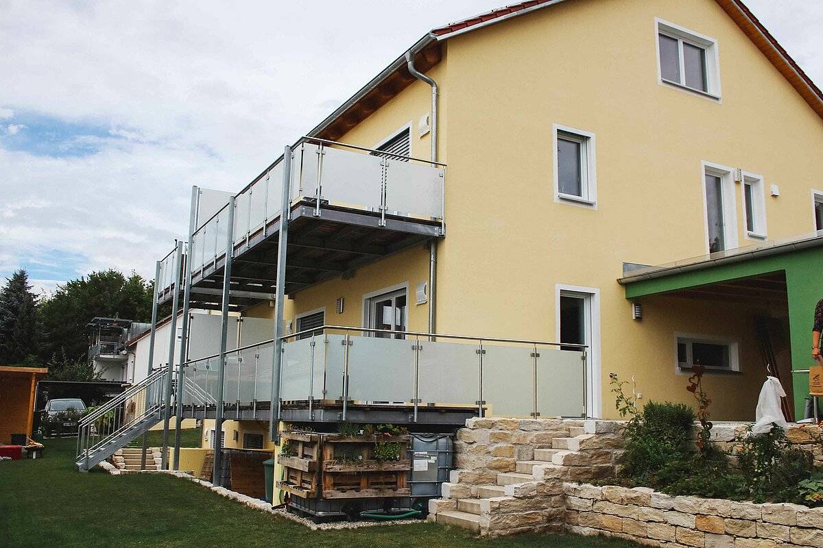 Doppelhaus mit 4 Wohneinheiten, Balkon aus Stahl mit Holzbelag