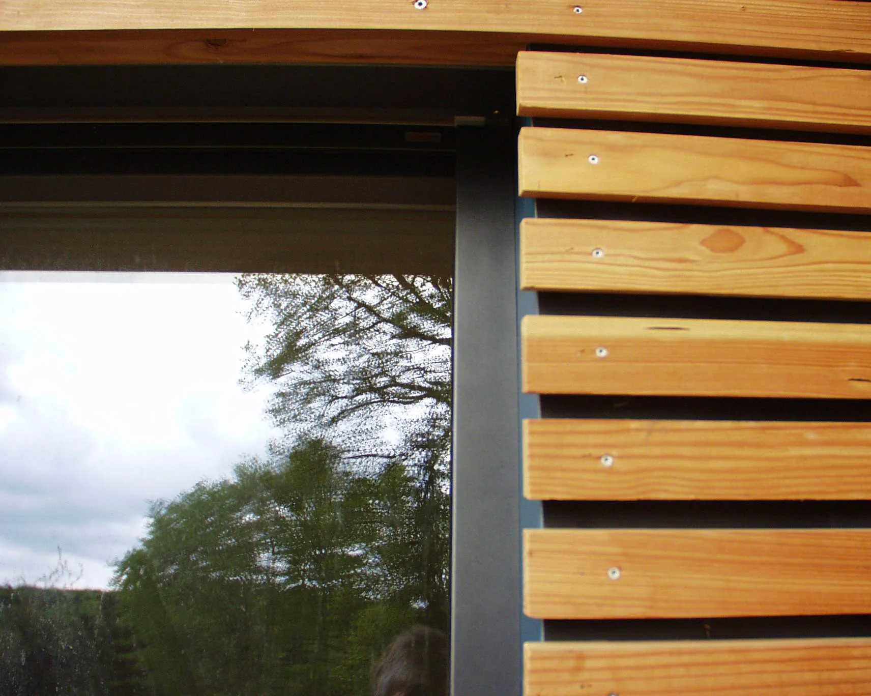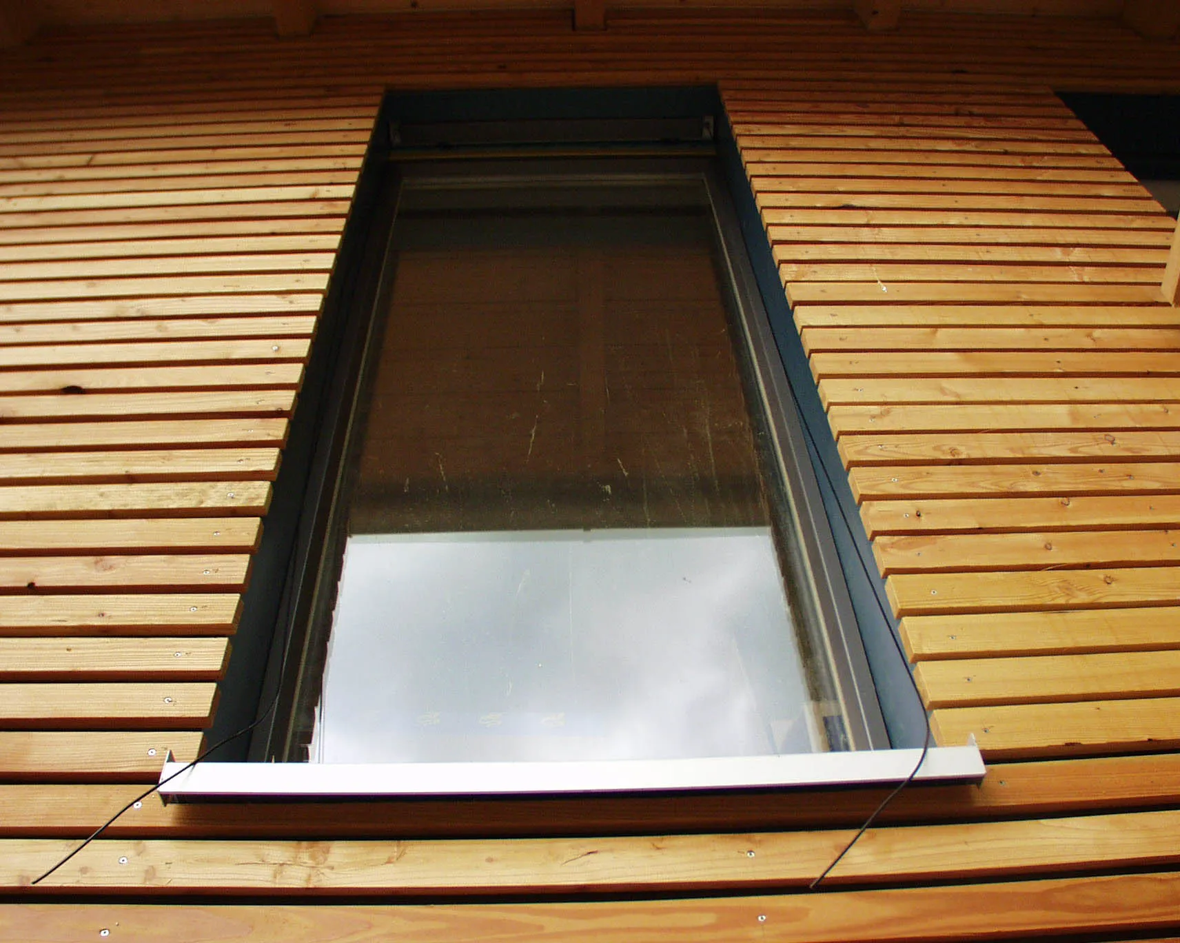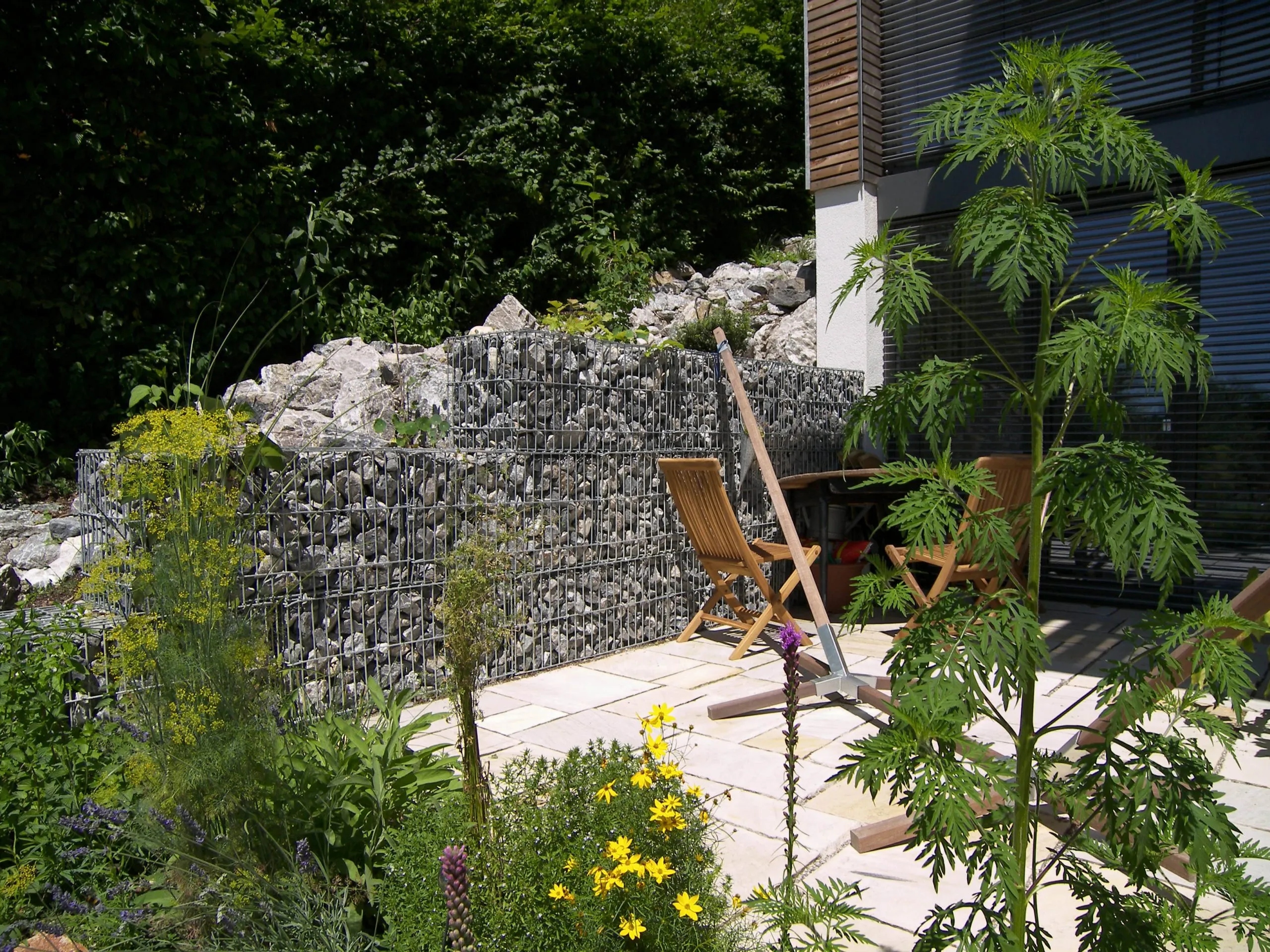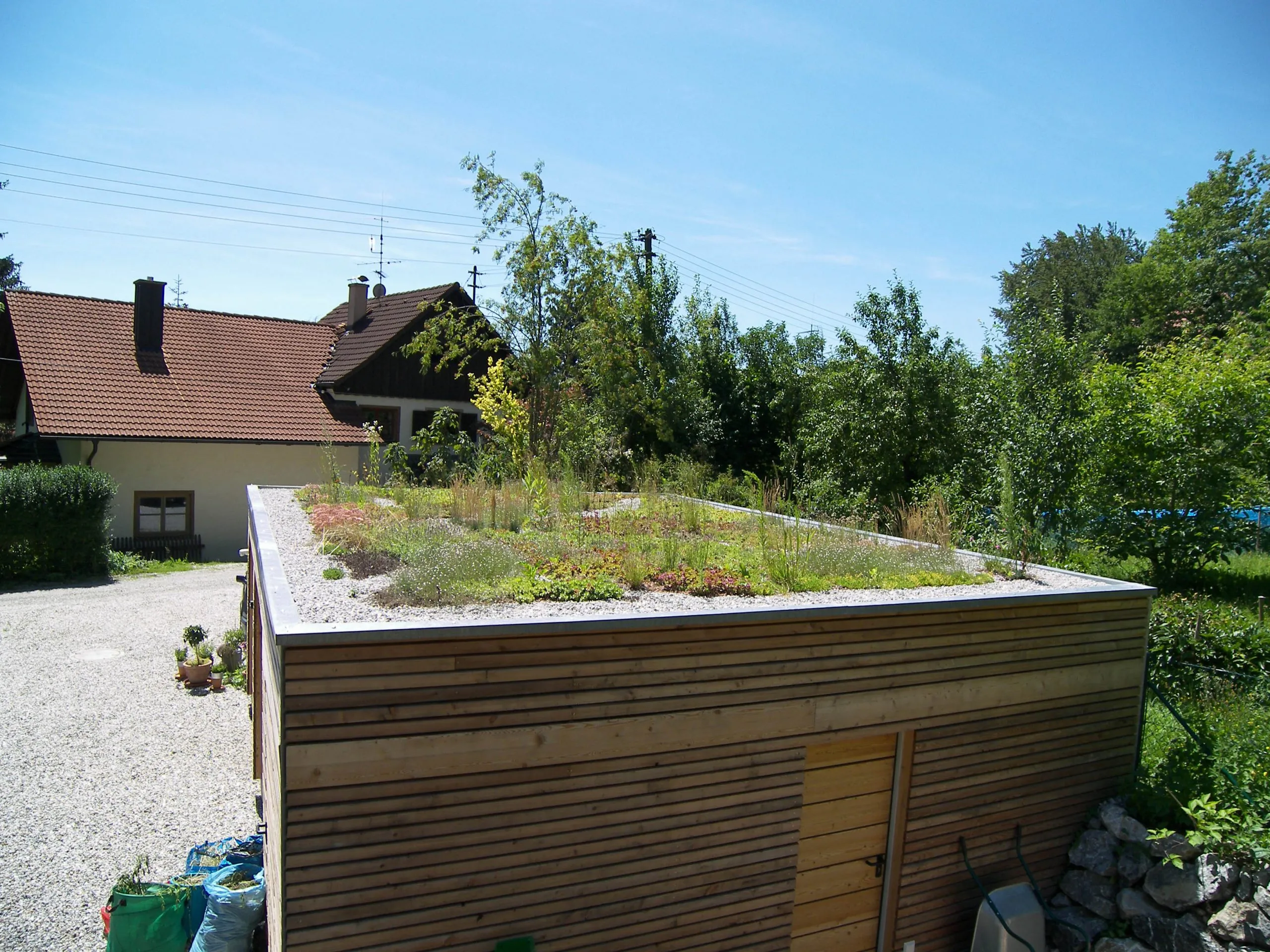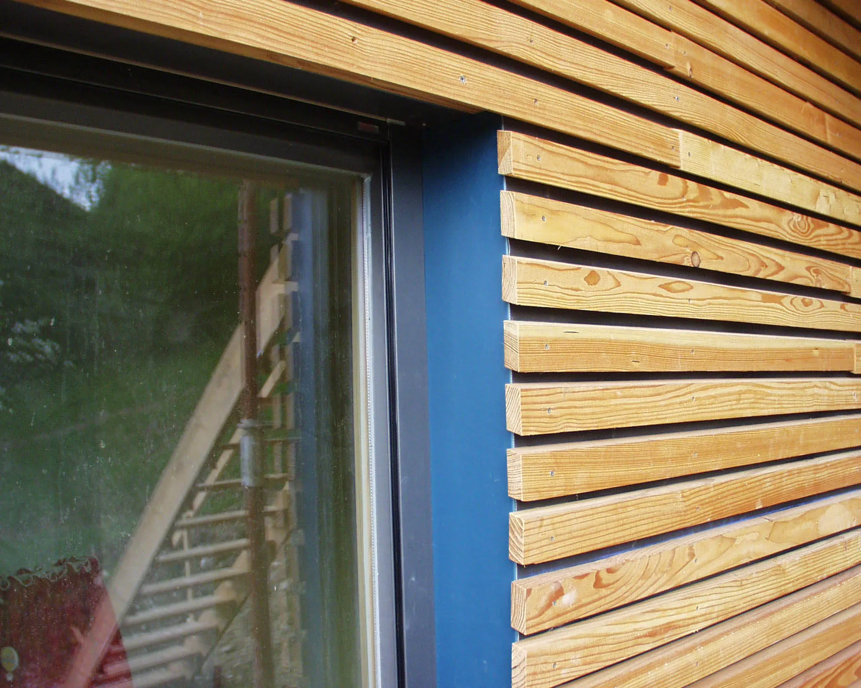 Wohnen im DG mit großem Glasgiebel für schöne Aussicht in die Berge, Balkonkonstruktion aus Stahl aufgehängt an Dachstuhl, Einliegerwohnung im KGHaus, Pelletsheizung, Abschirmgewebe unter Fassade und Dach für hochfrequente Abschirmung