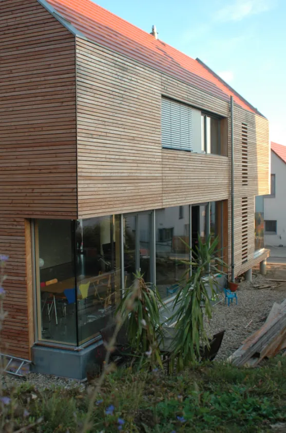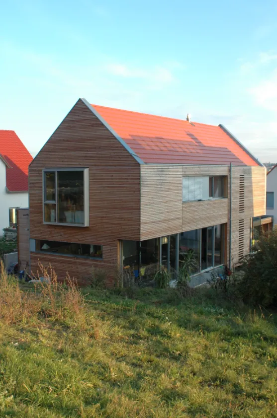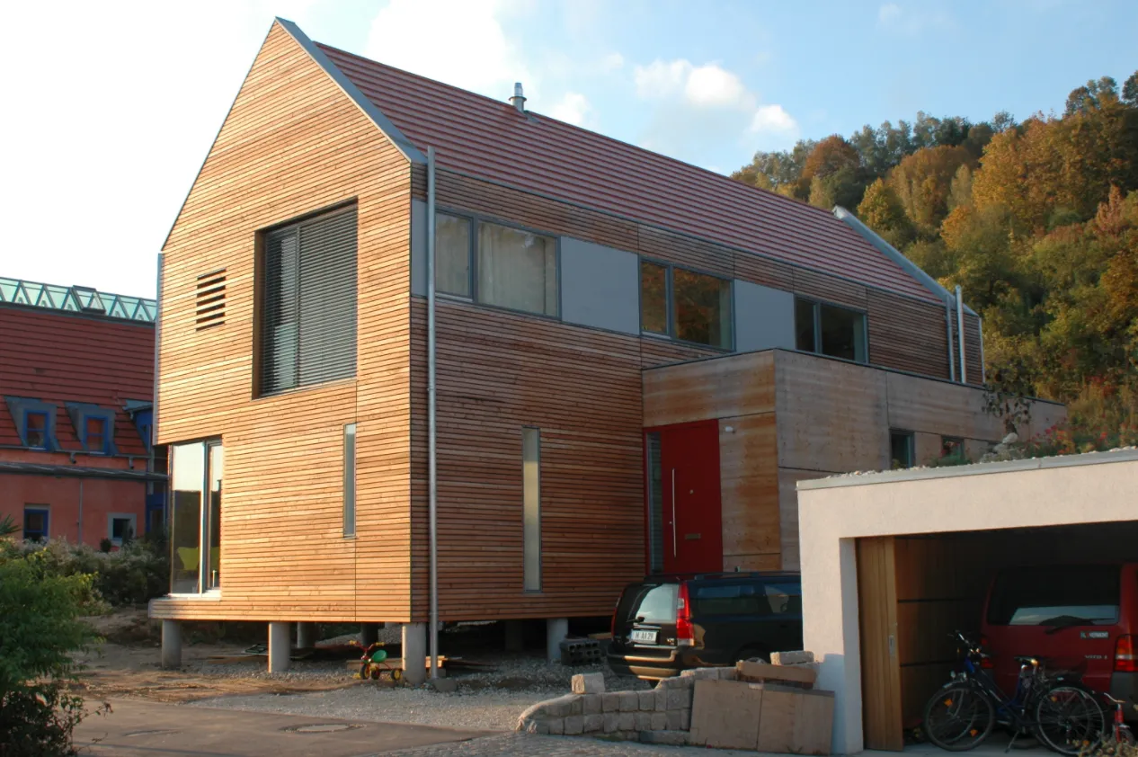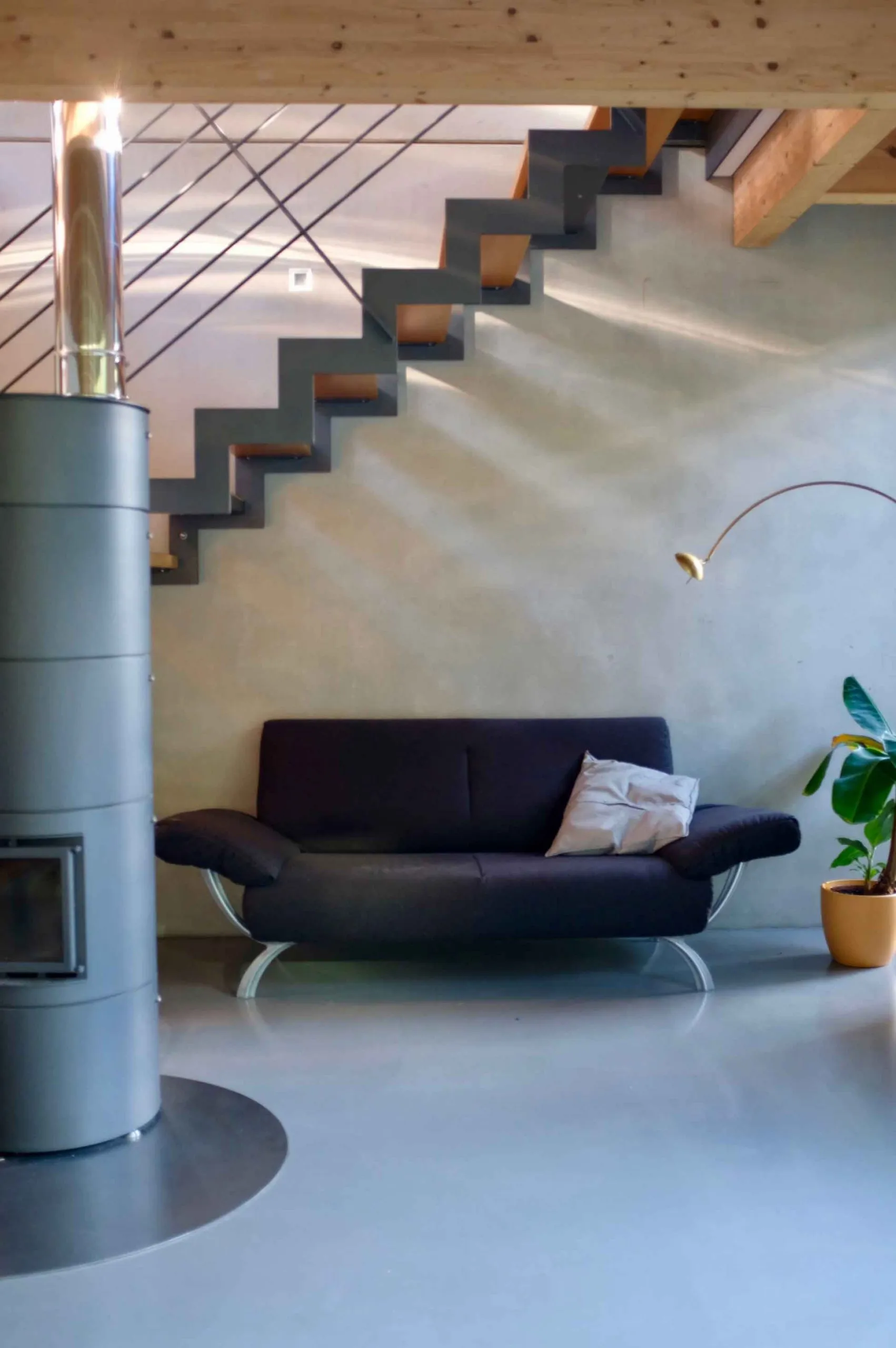 Keller ca. dreiviertel des Hauses, Rest steht auf Betonpfählen, Boden im EG mit Spachteltechnik