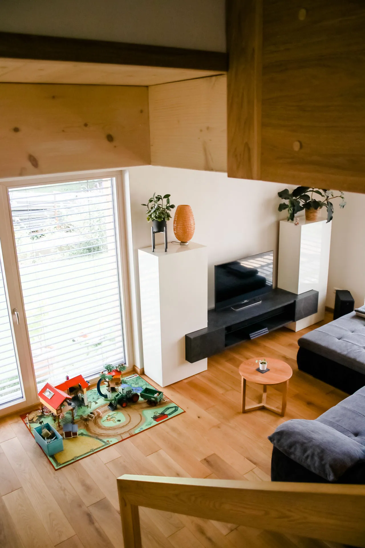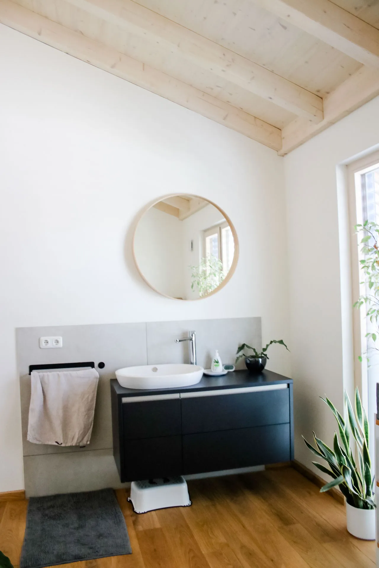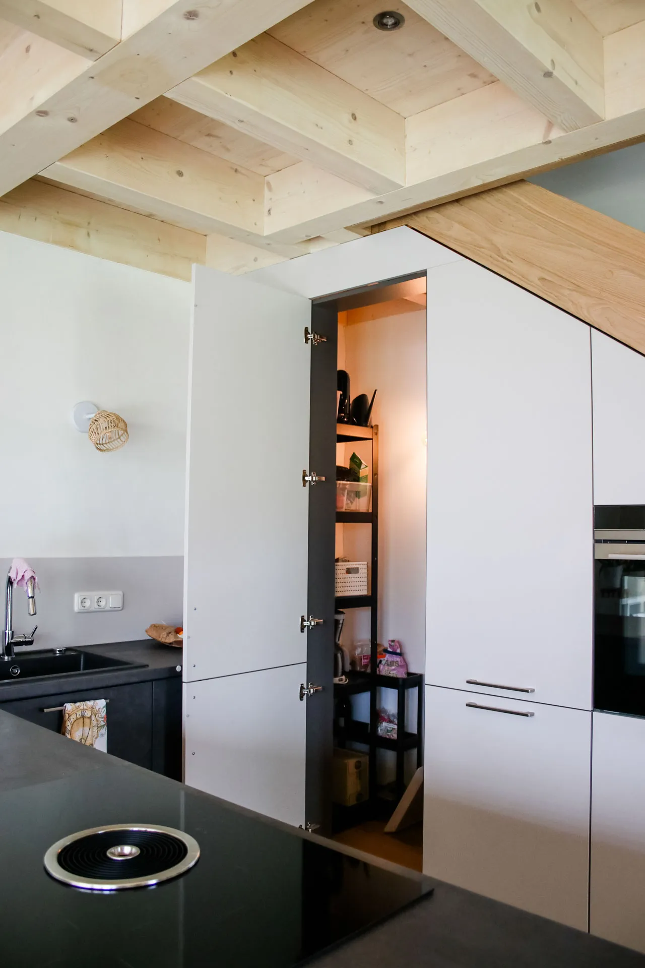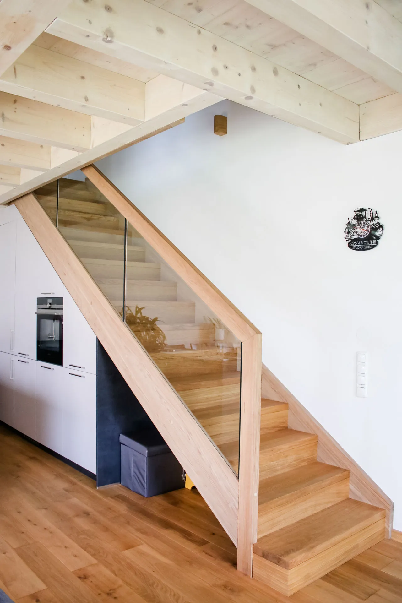 Doppelhaushälfte, Dielenboden im Bad, versteckte Speis unter der Treppe, Fassadenrinne für optimalen Schwellenschutz