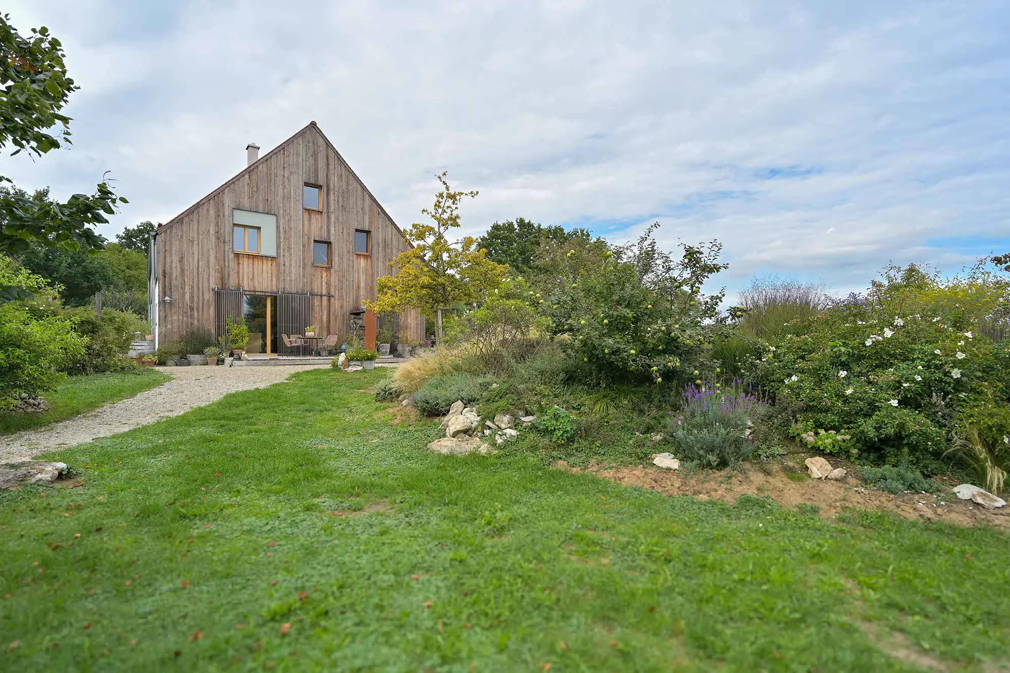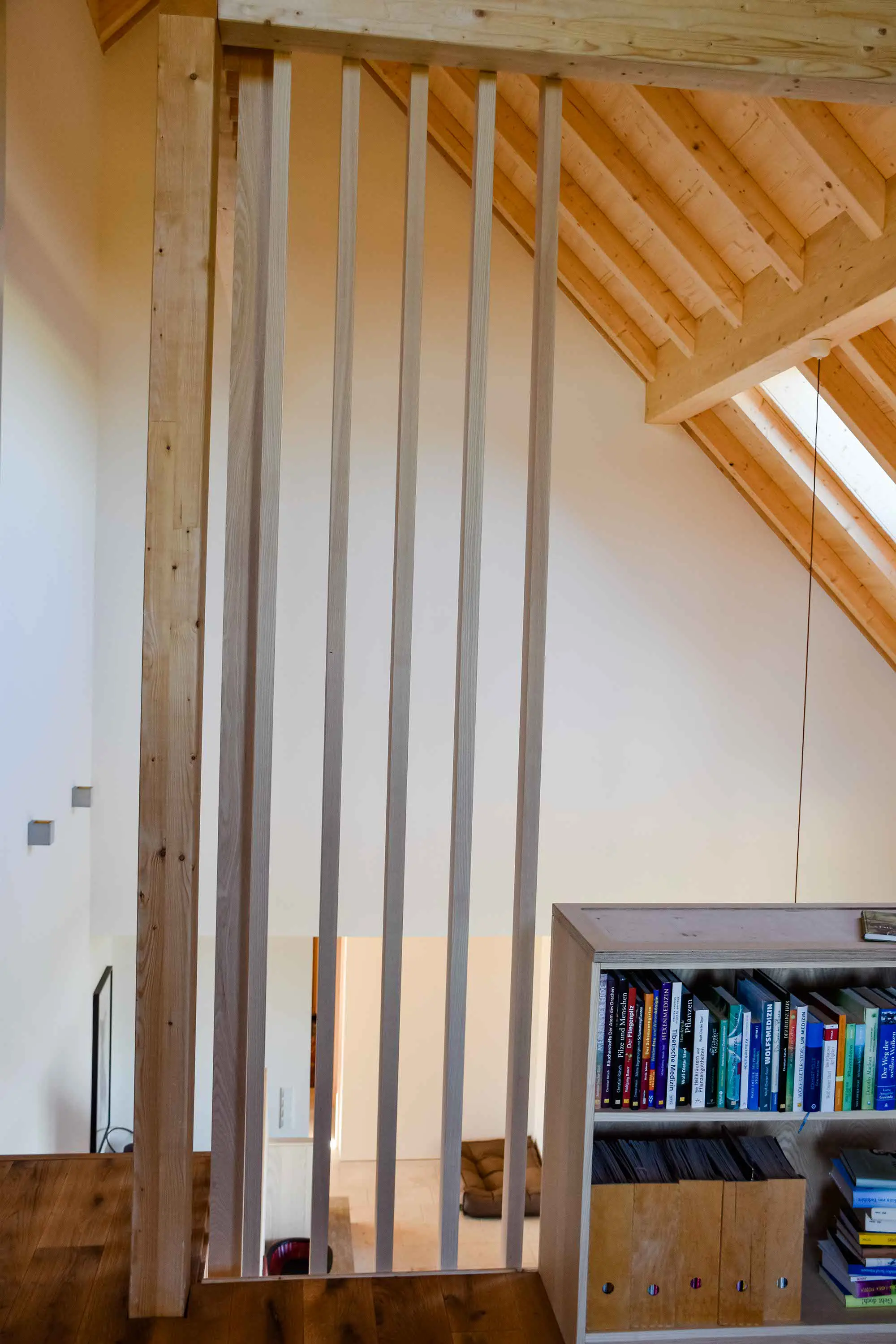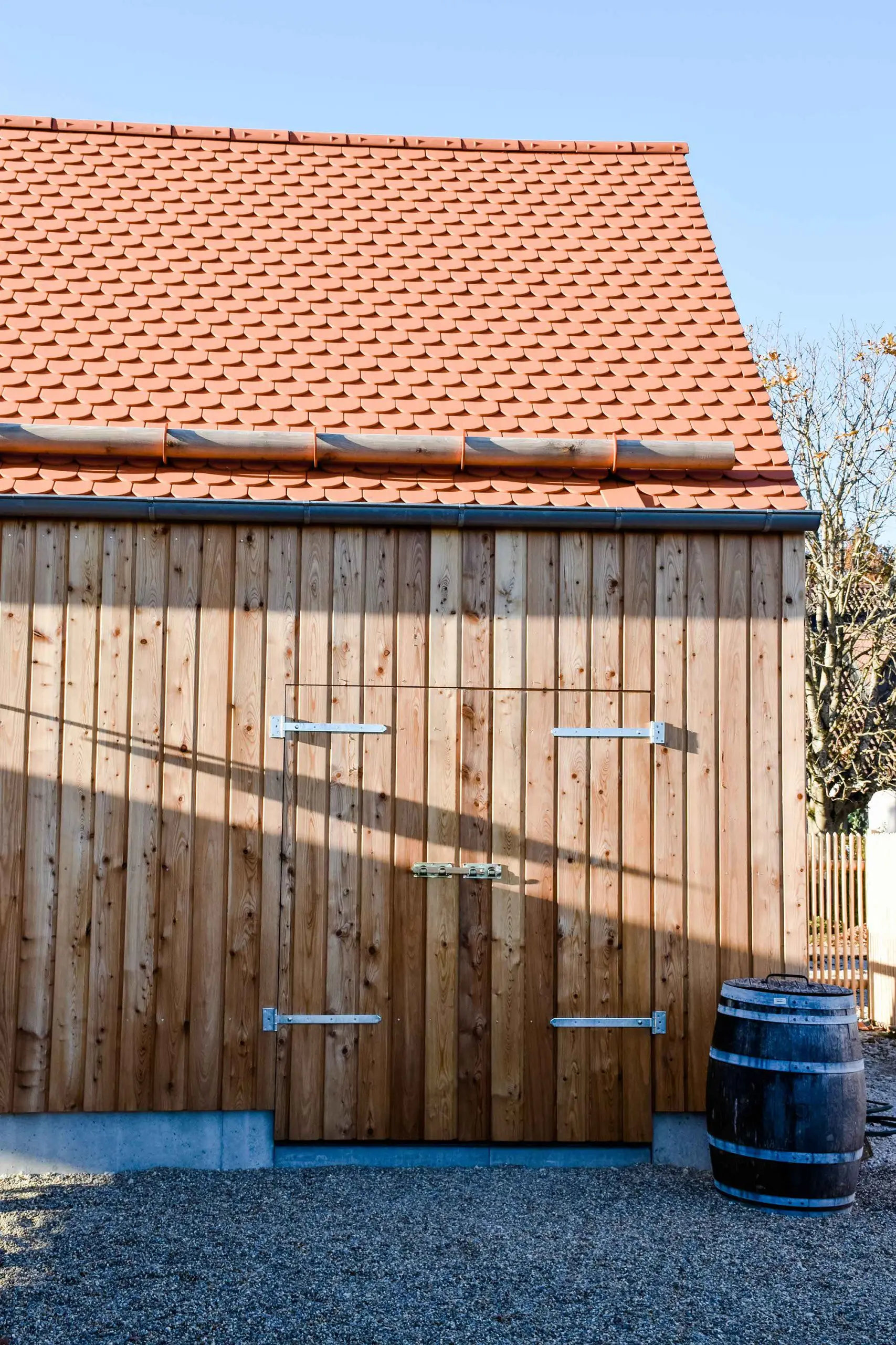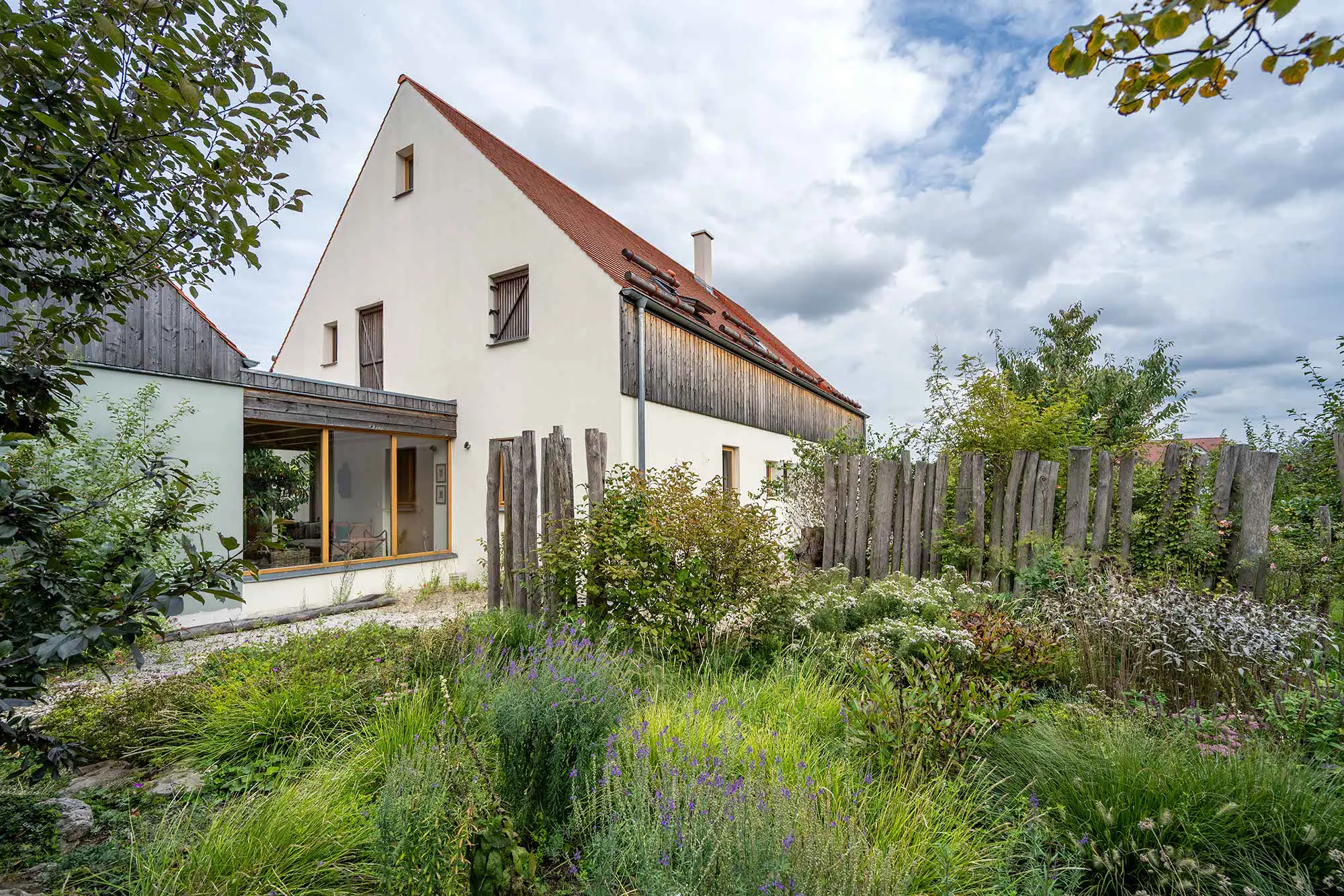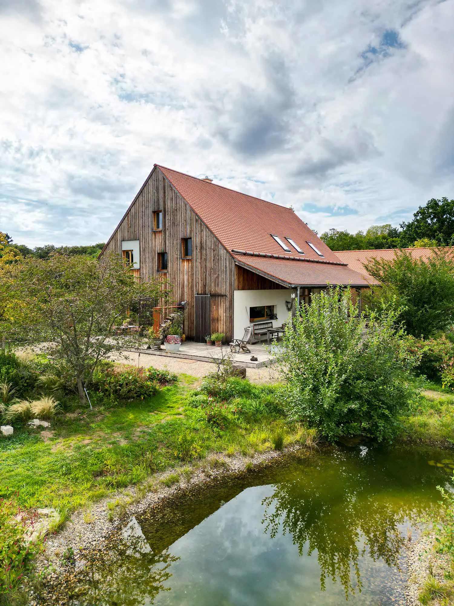 Biberziegel-Dach, traditioneller Rundholz-Schneefang, Holzfassade, großzügige Wohnräume mit viel Holz, natürlicher Garten, große Fensterflächen für viel Tageslicht, Galerie mit offenem Luftraum, überdachte Terrasse mit Weitblick