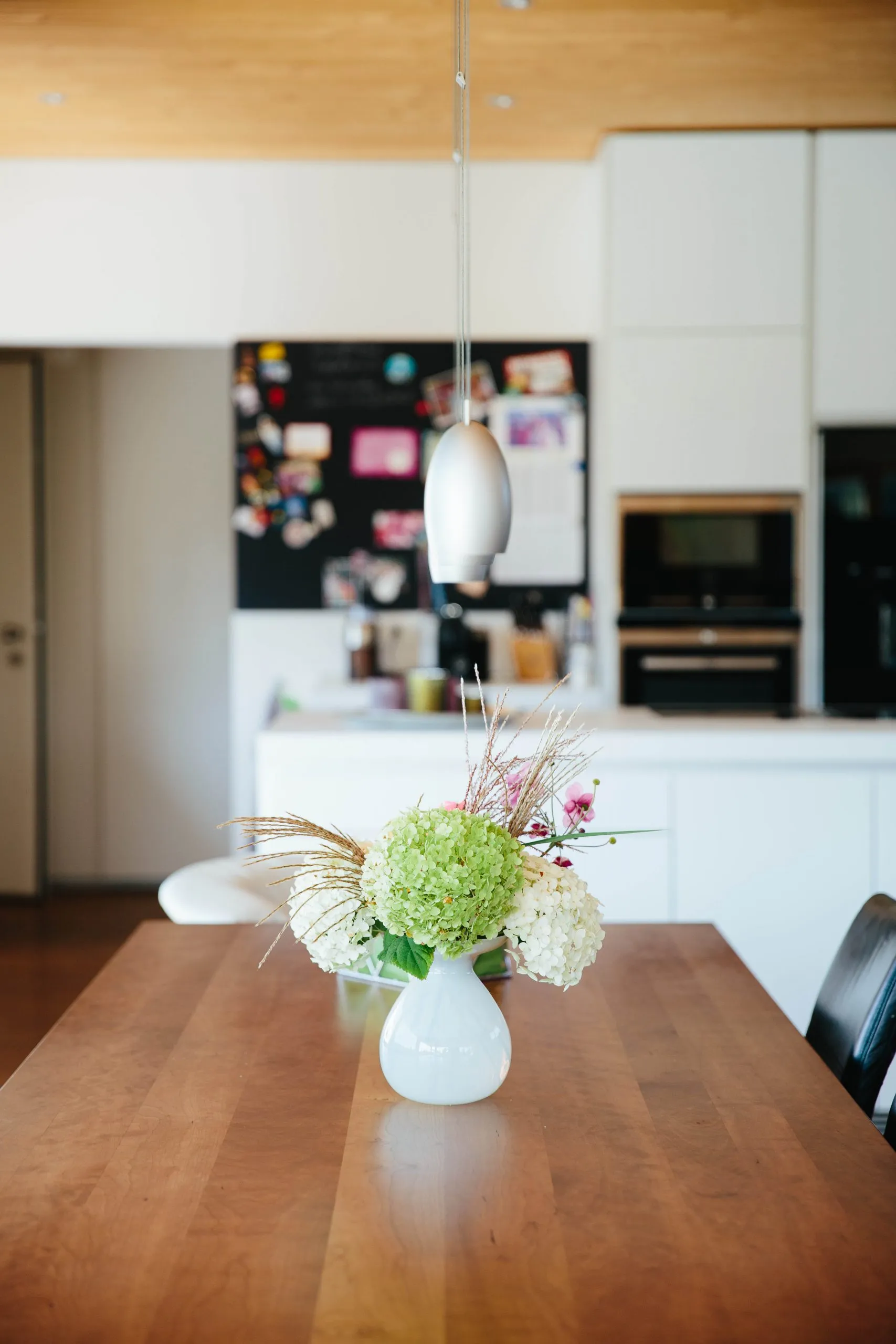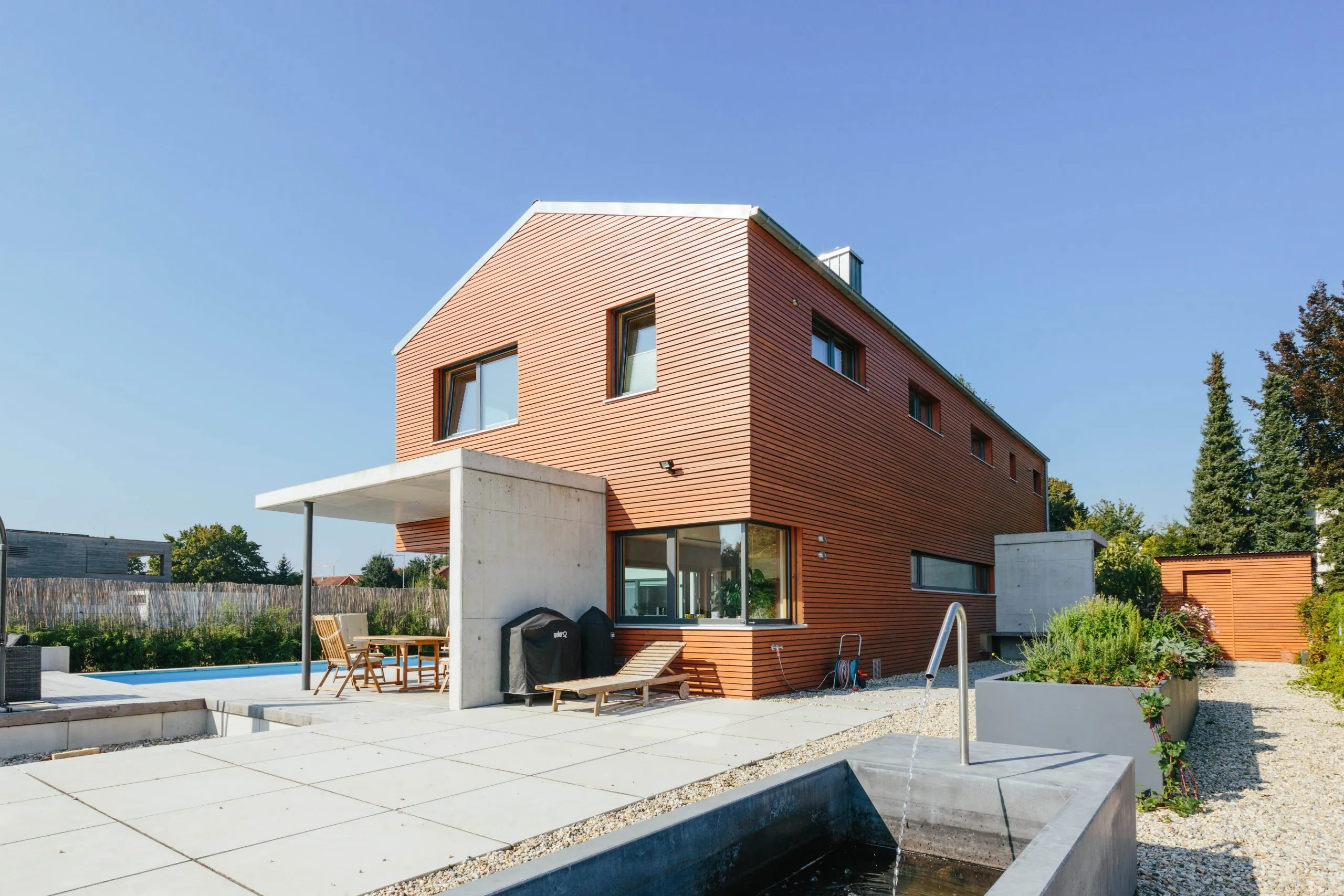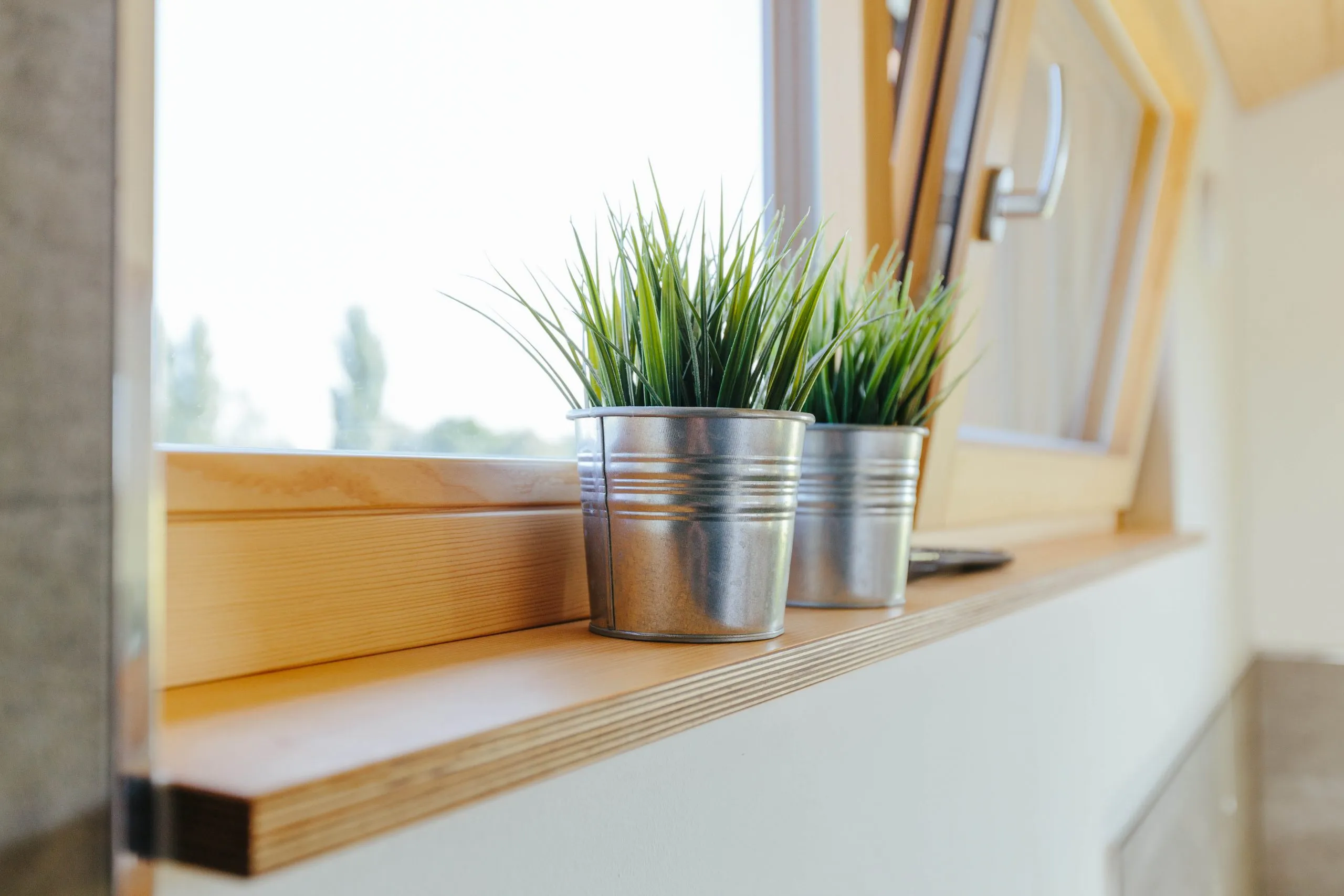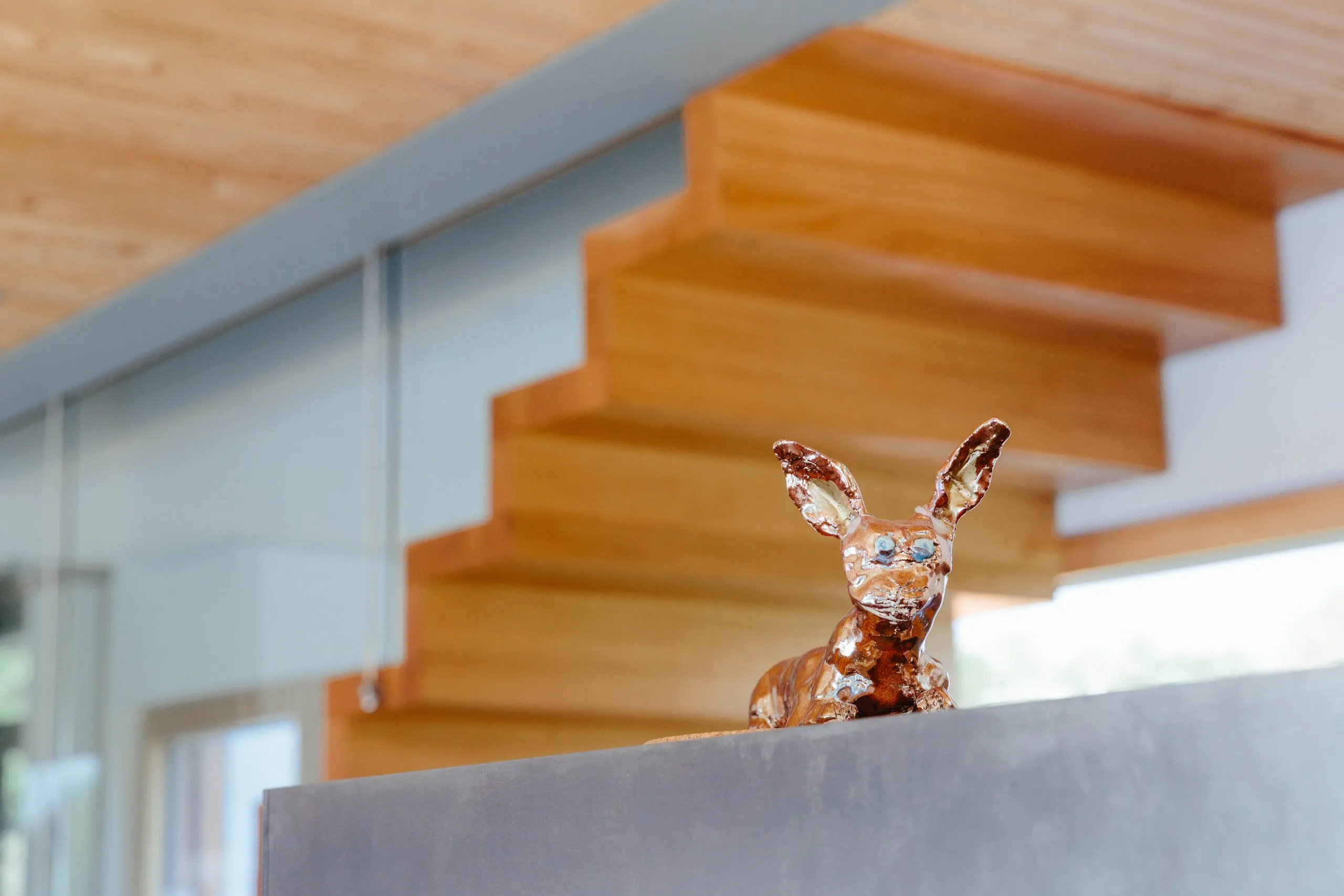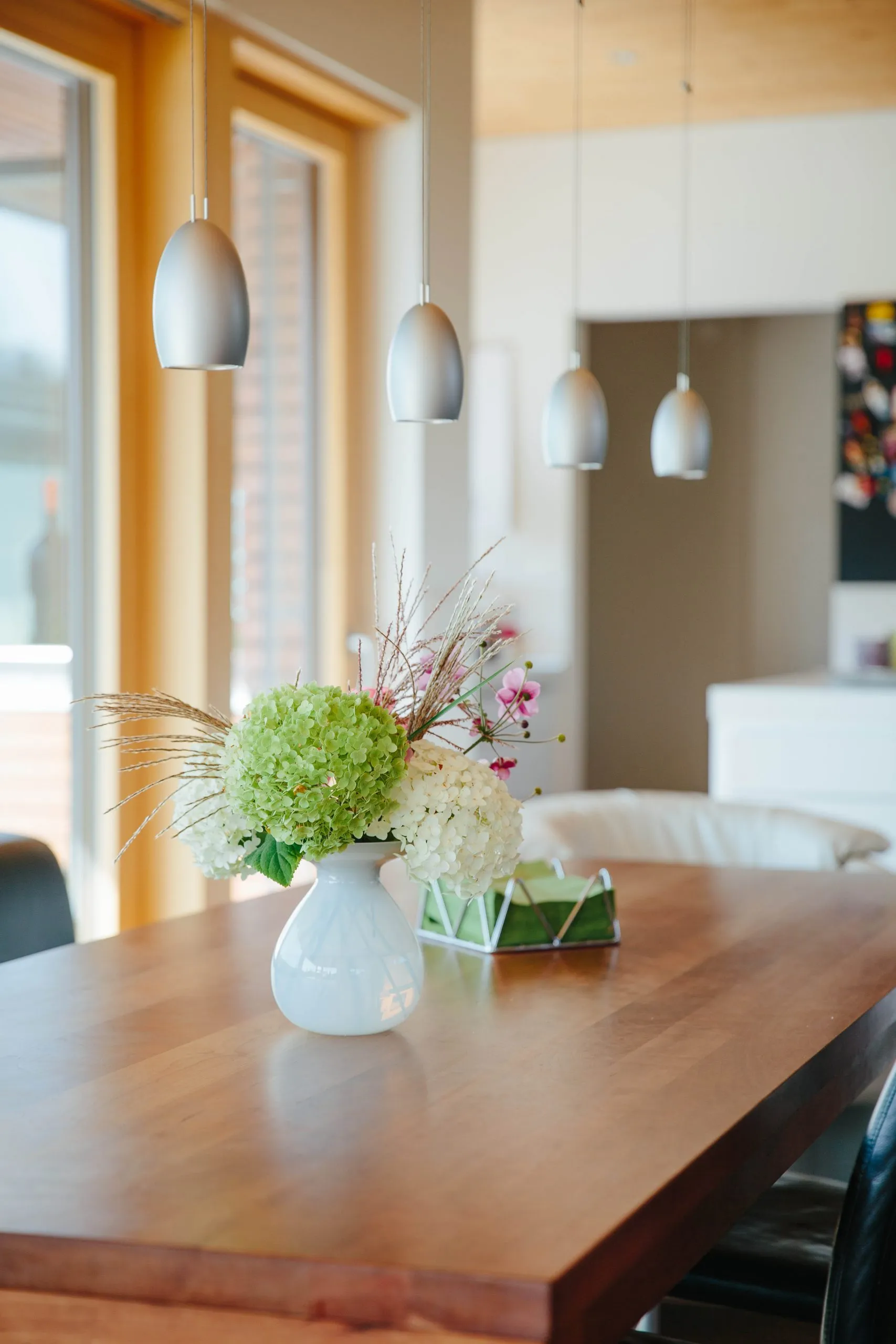 Brettstapeldecke im EG, Dachstuhl innen mit Dreischichtplatten aus Fichte verkleidet