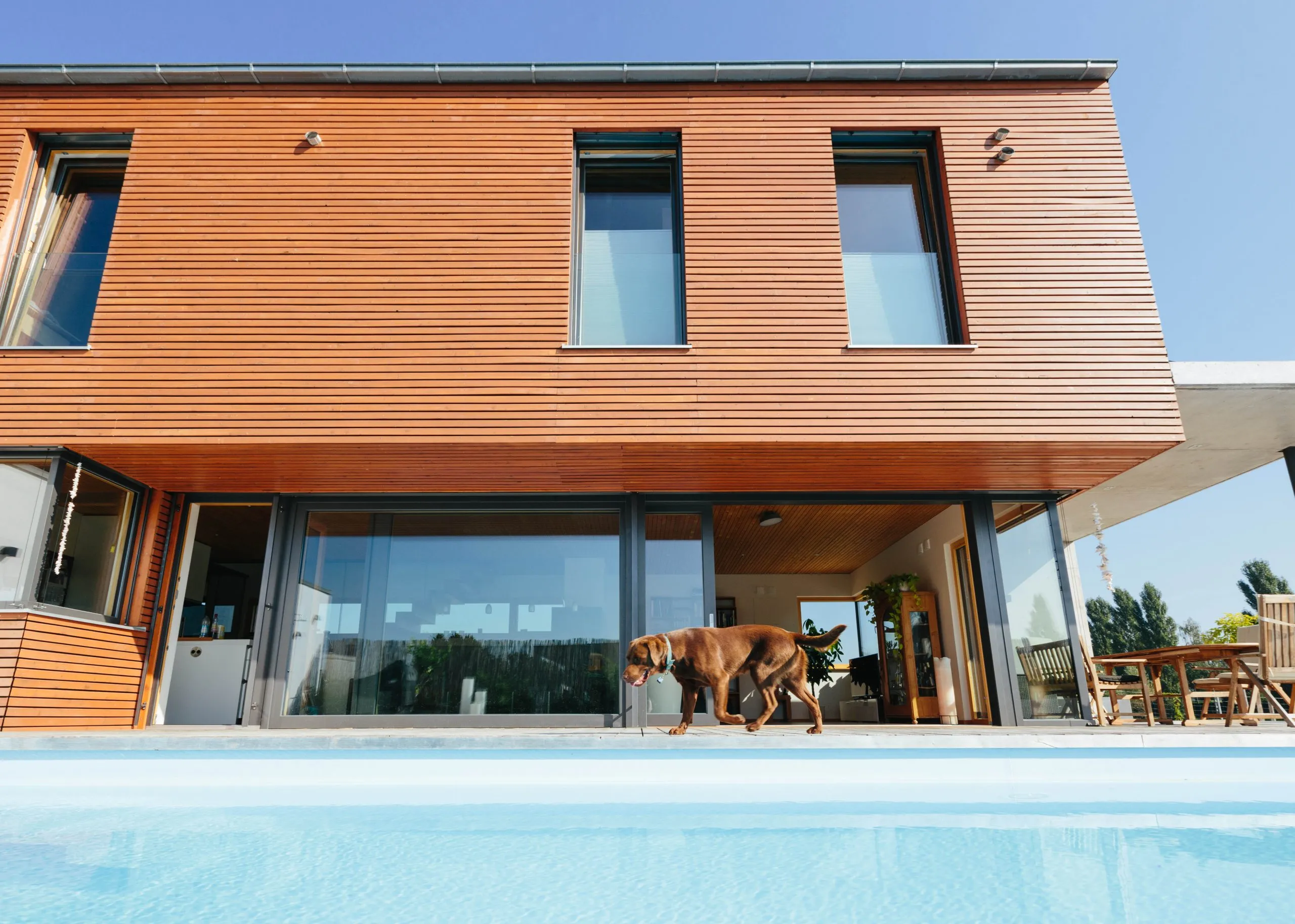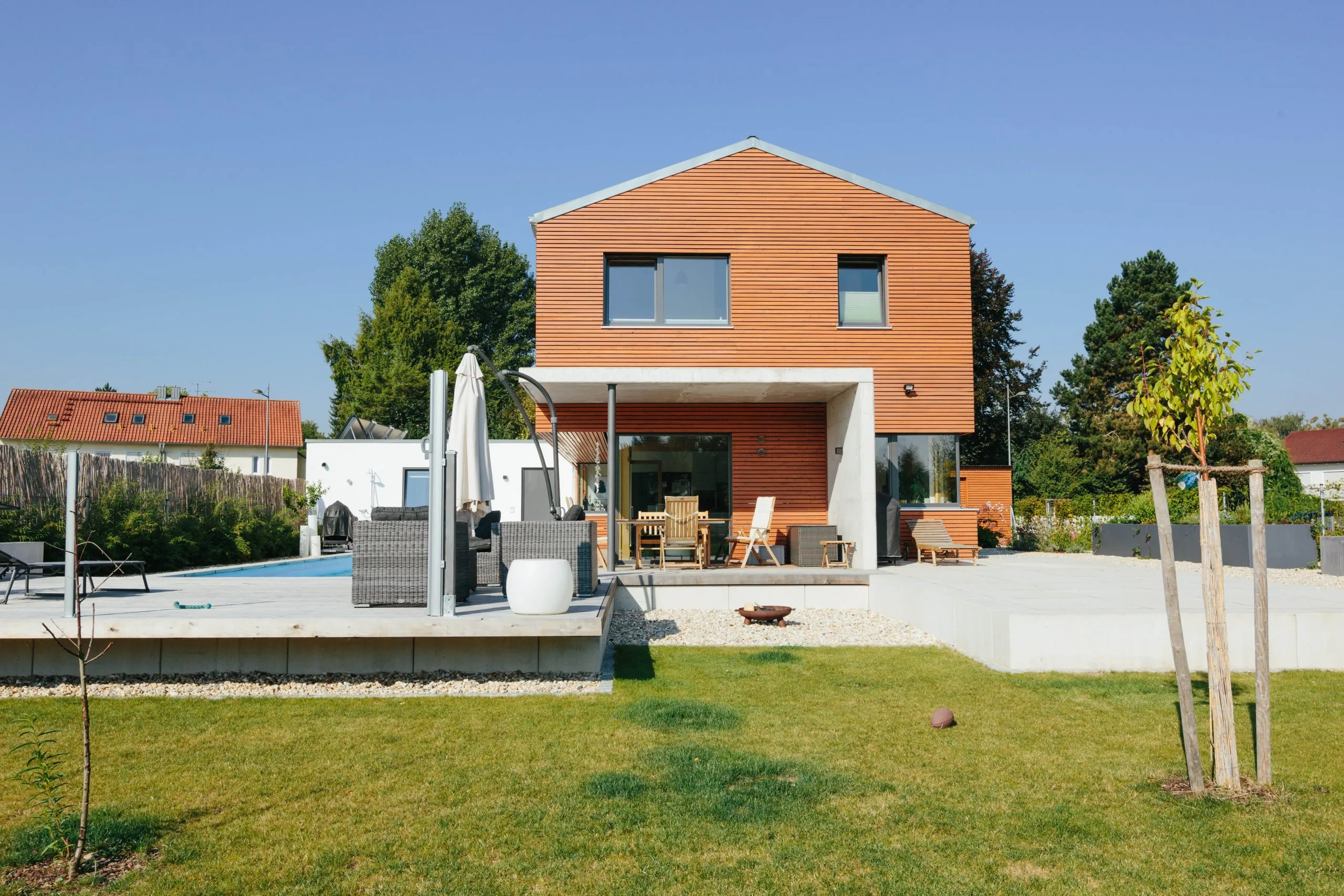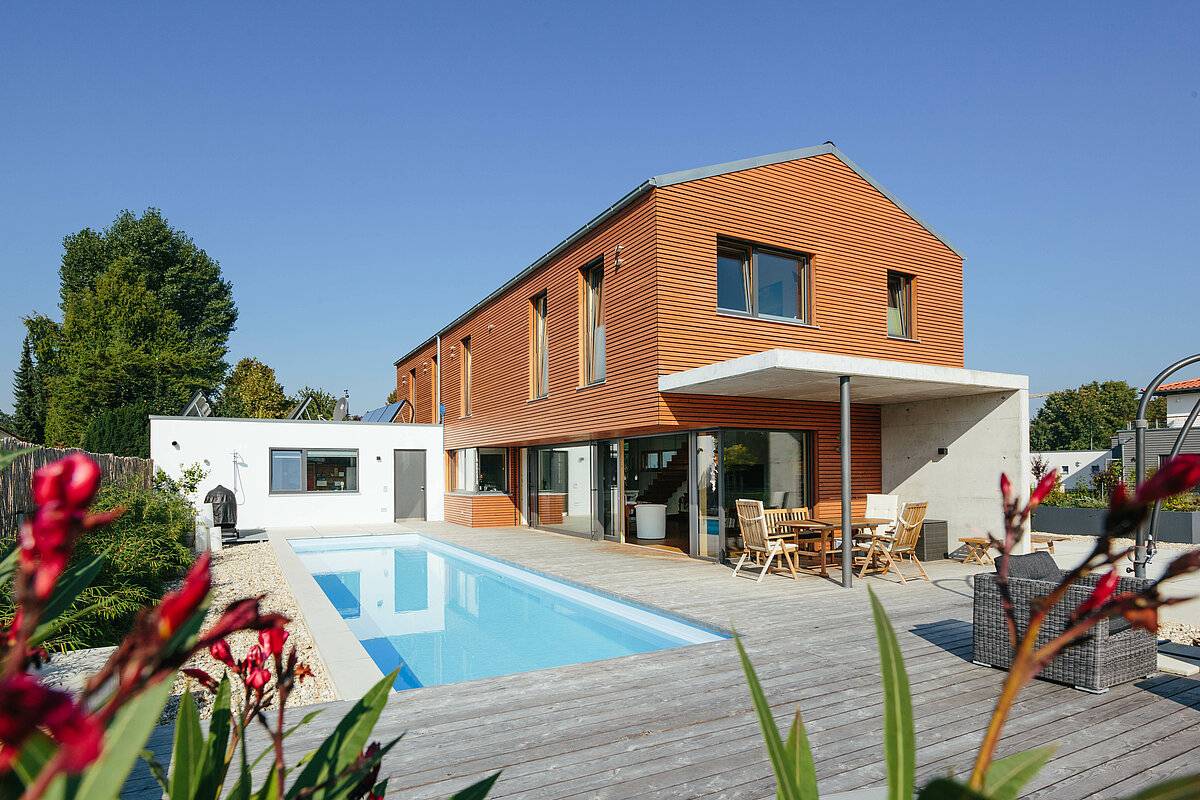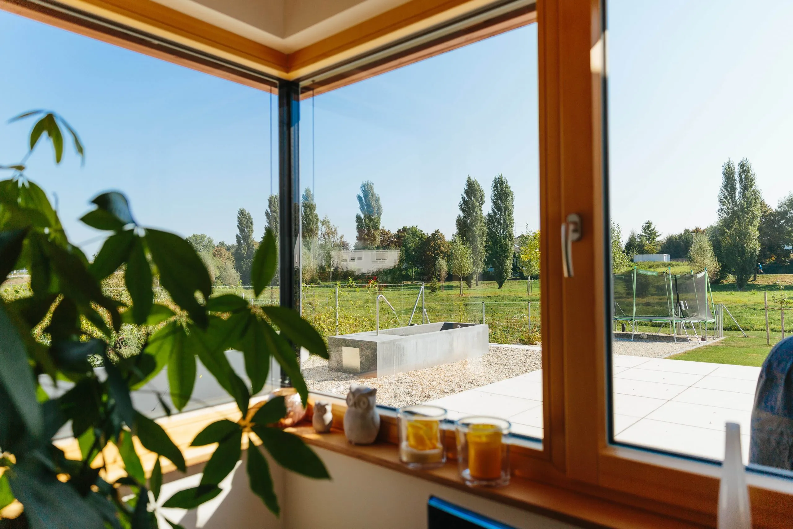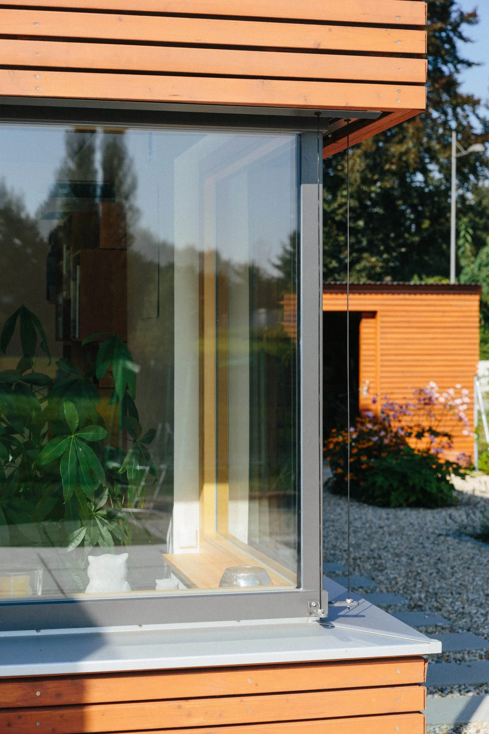 Brettstapeldecke im EG, Dachstuhl innen mit Dreischichtplatten aus Fichte verkleidet