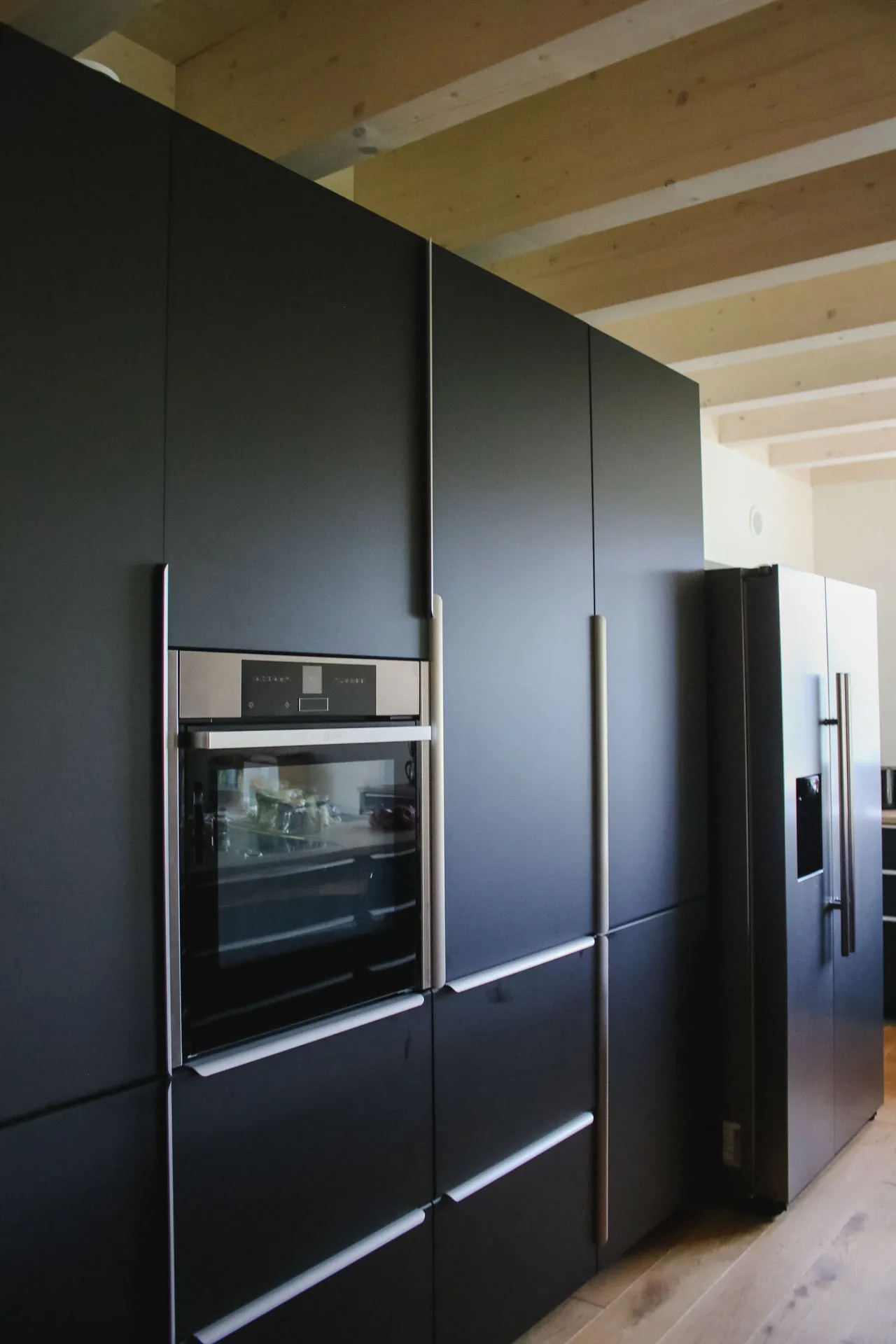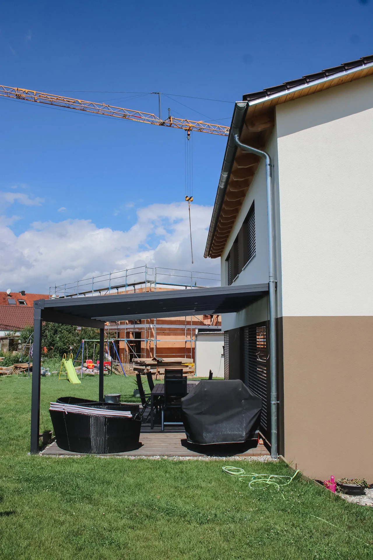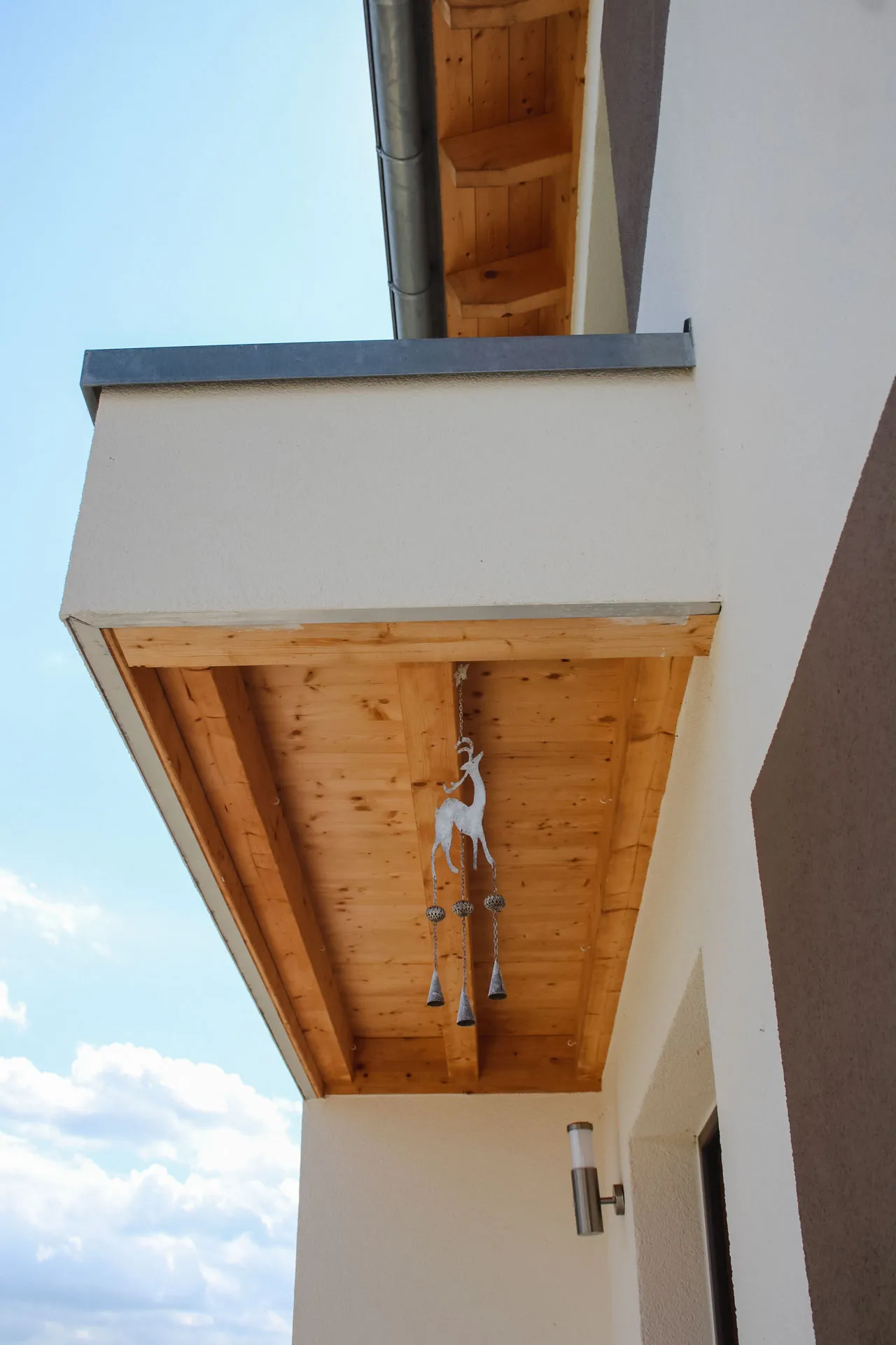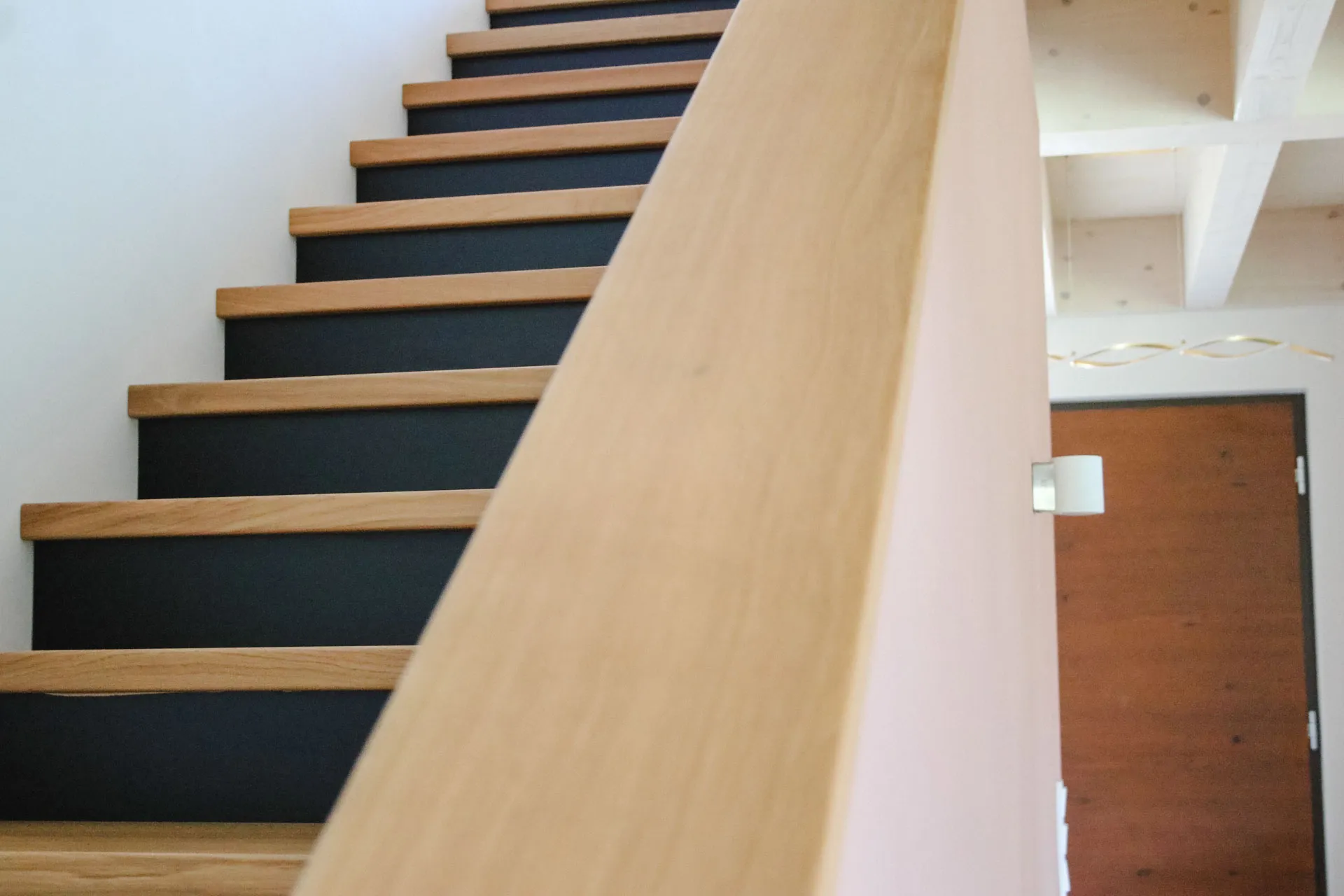 Farbspiel durch zwei Fassadenfarben, Luft-Wärmepumpe im Keller, Eichentreppe mit schwarzen Setzstufen, 6,5-Meter Deckenspannweite im Erdgeschoss ohne Stützen
