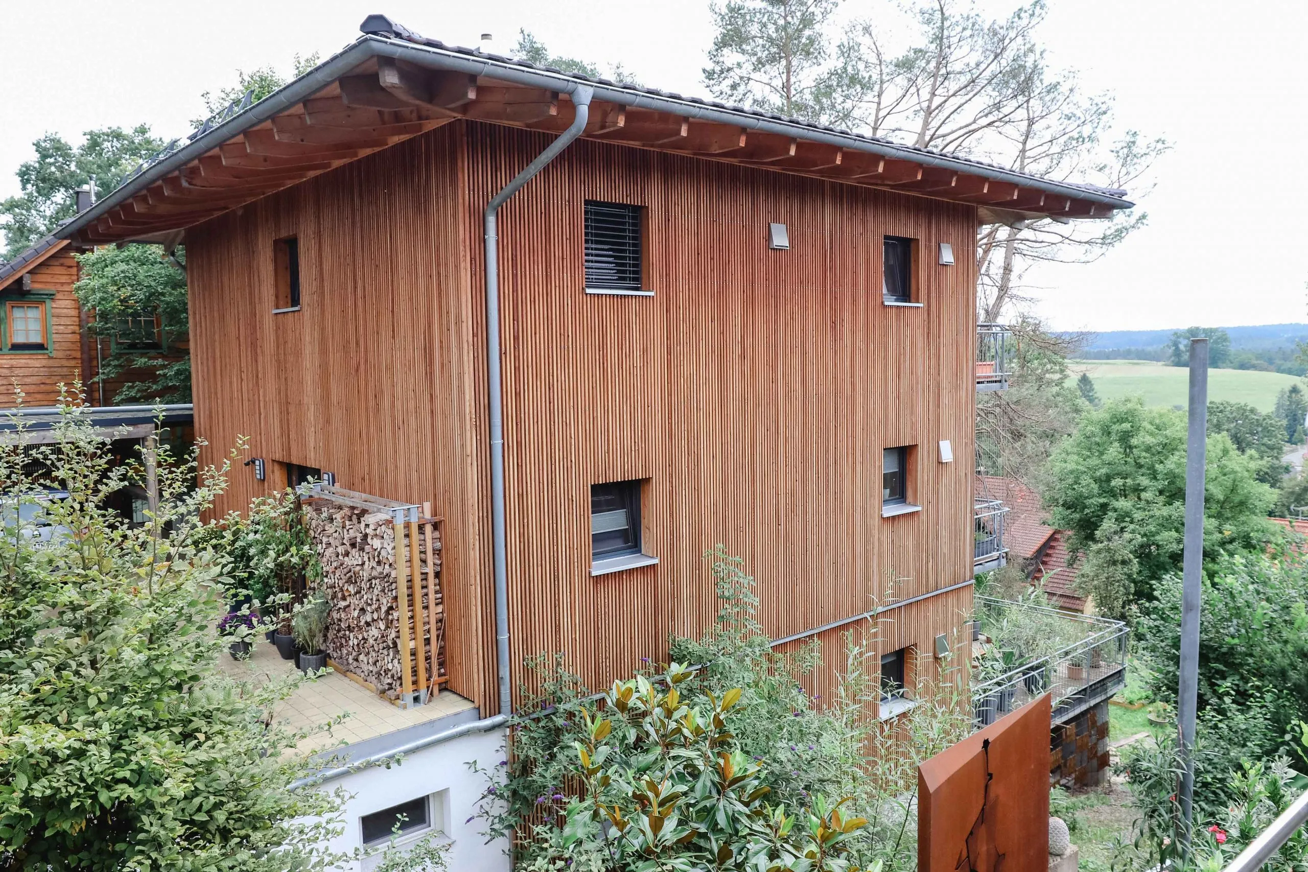 Komplette Leistenschalung senkrecht, sehr steiles Gelände, 1,5 Stockwerke Keller