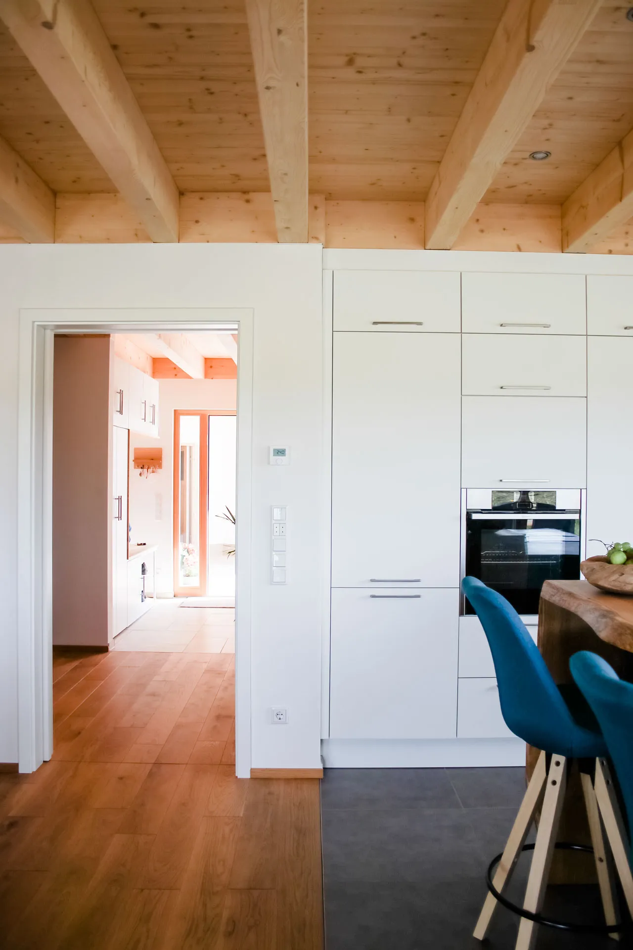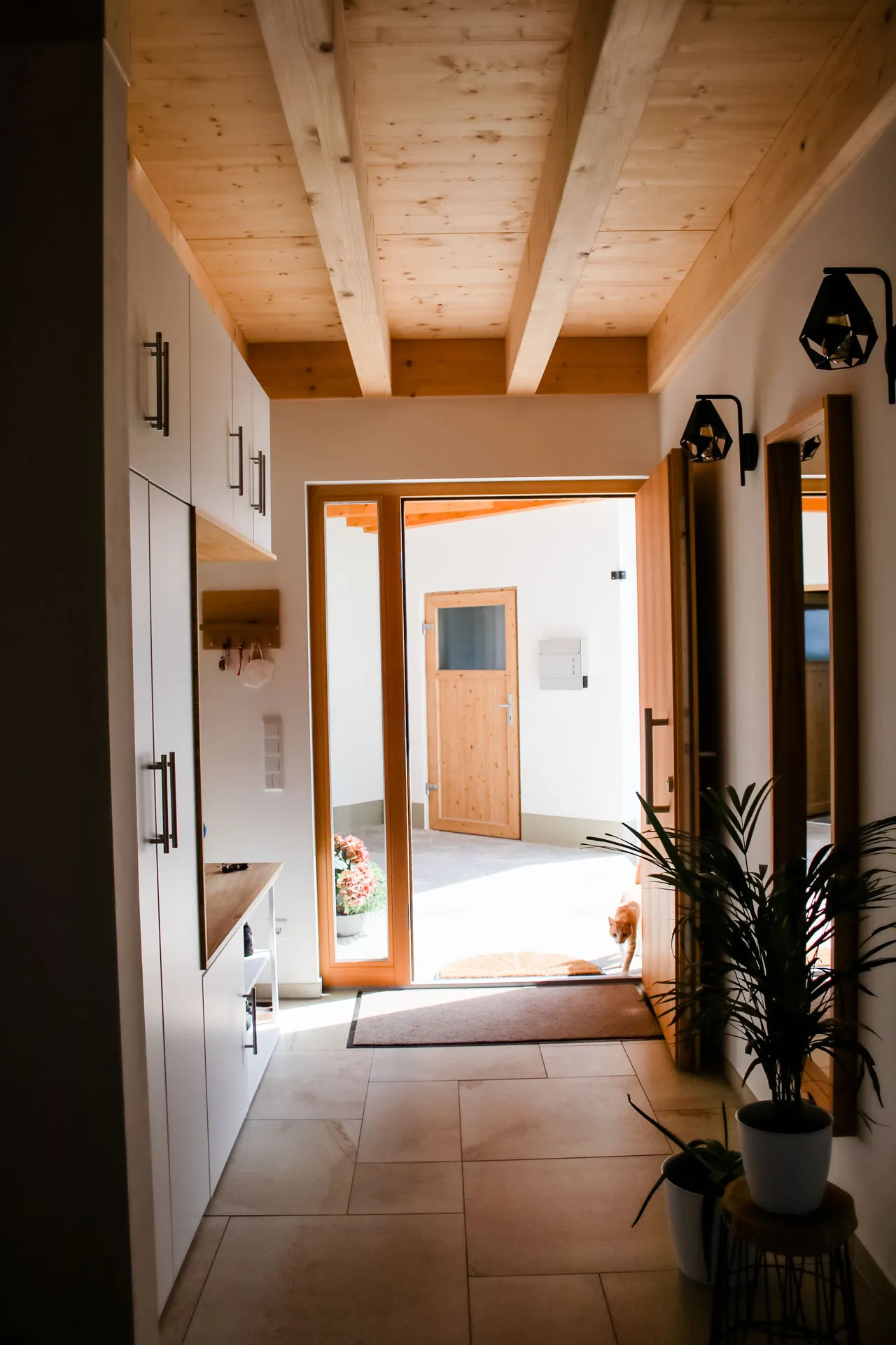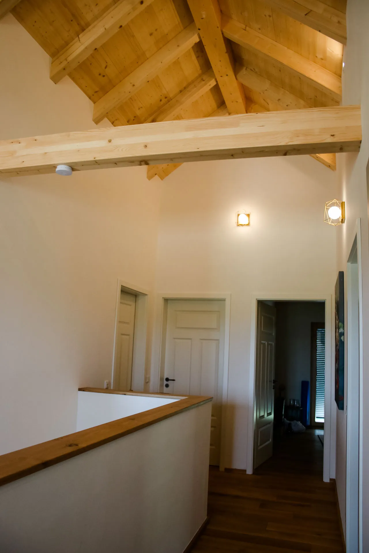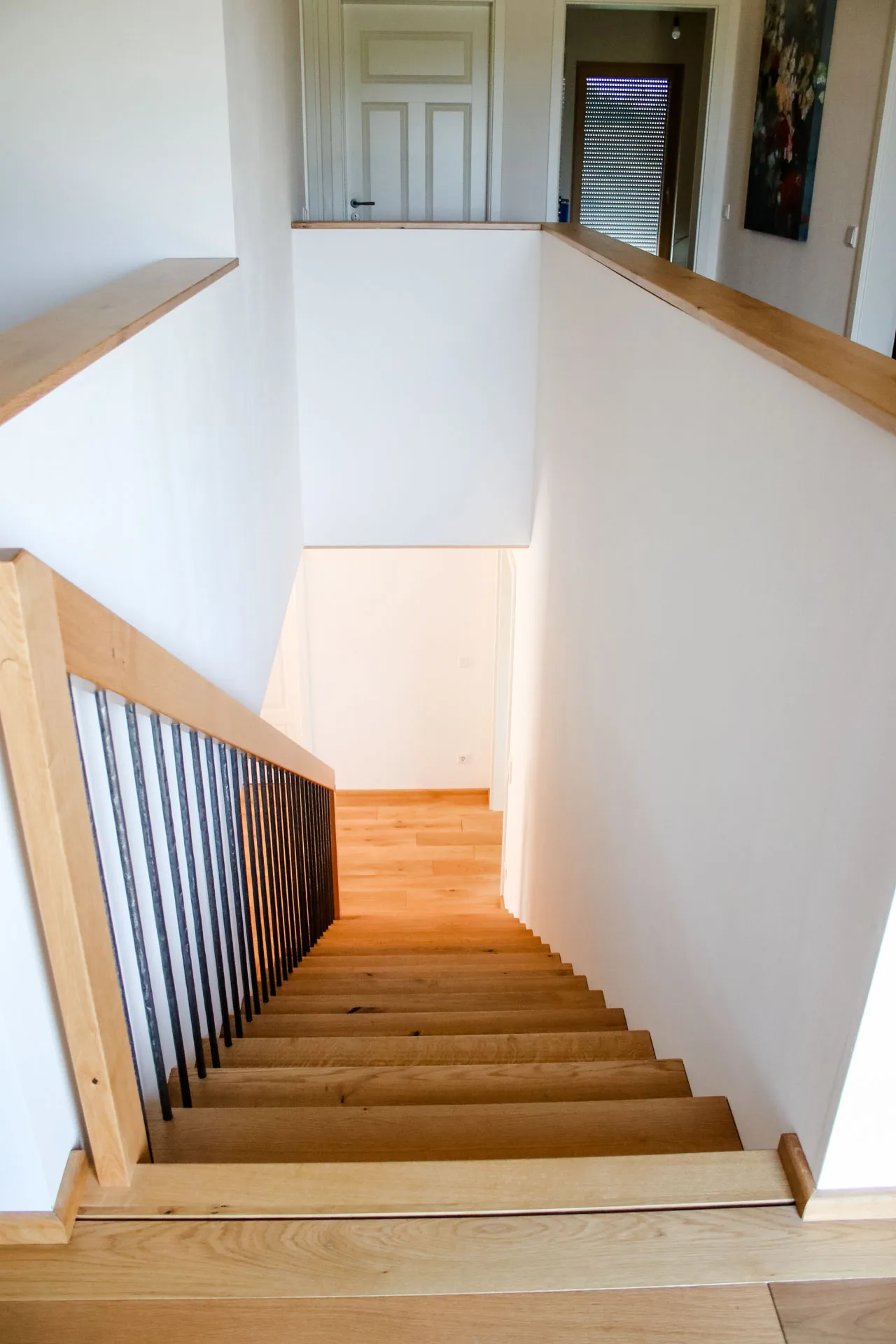 Verbindungsbau zwischen Haus und Garage als Lagerraum, aufgesattelte Faltwerktreppe, Innenausbau komplett in Eigenleistung