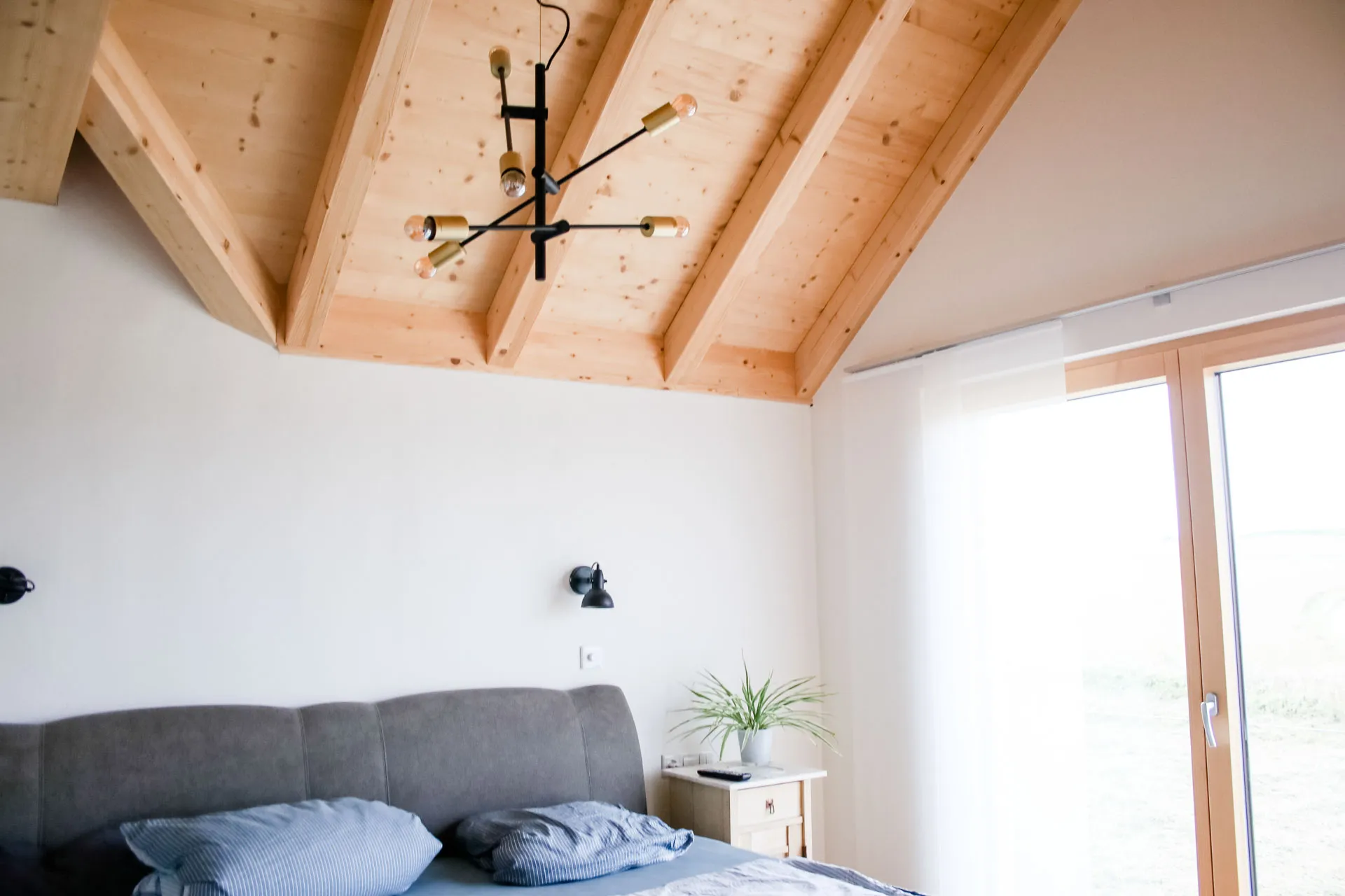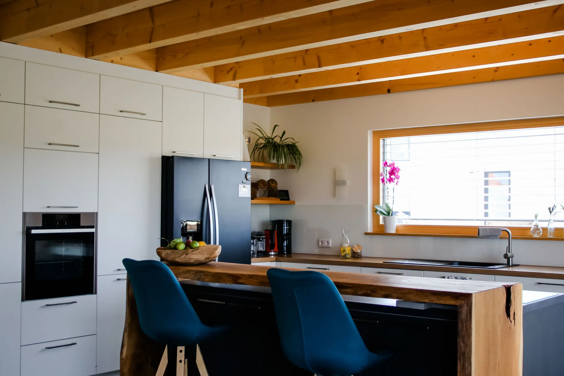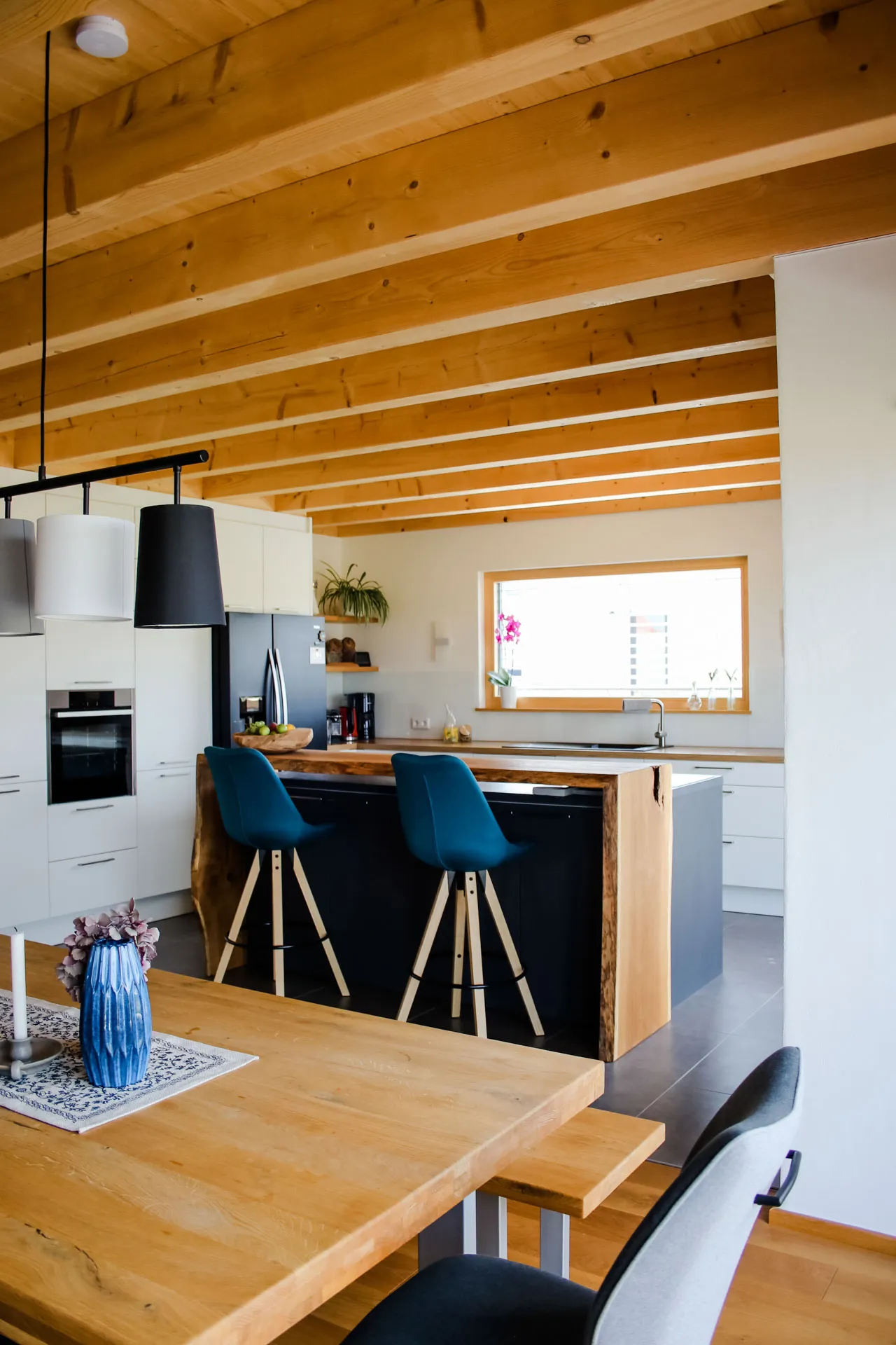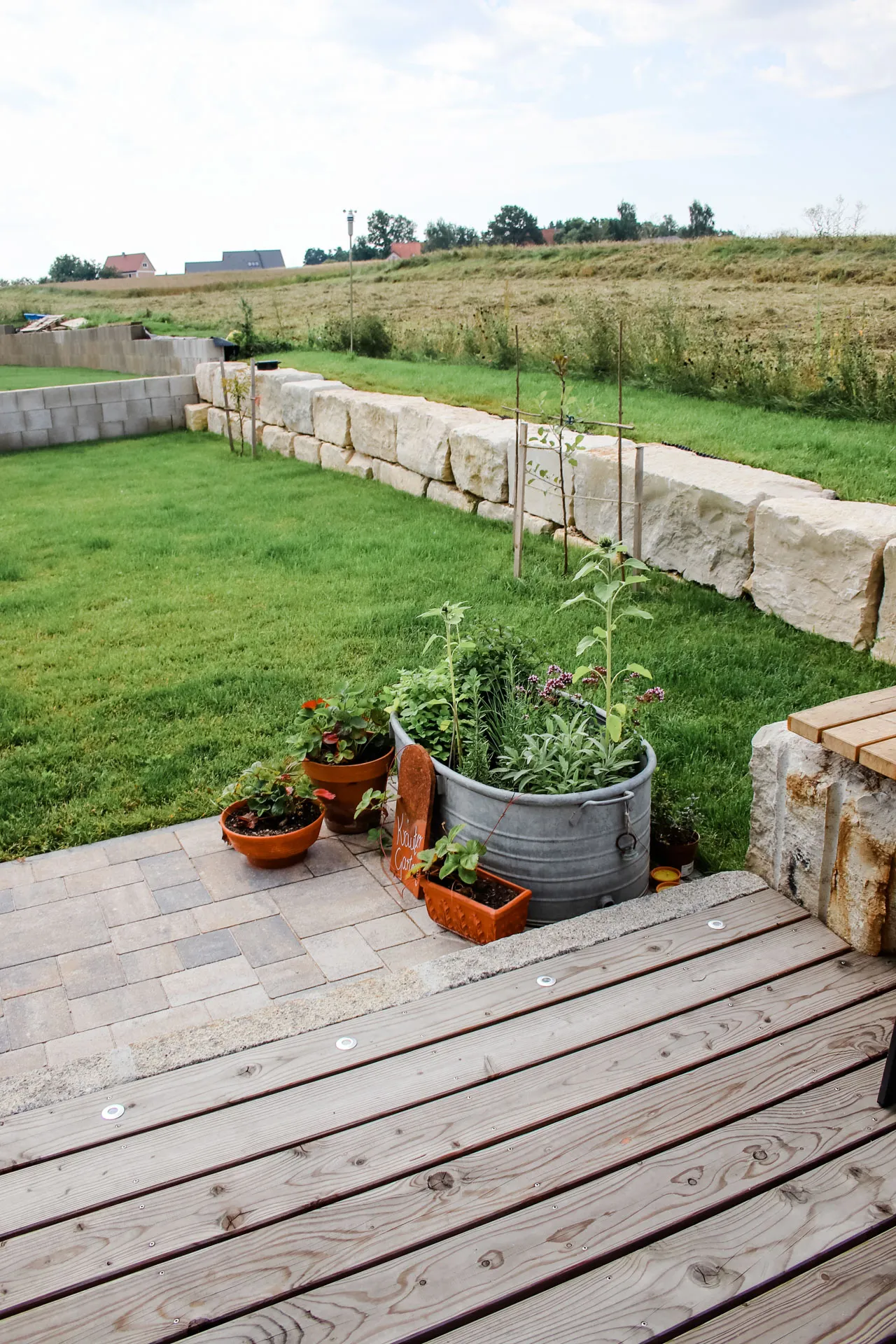 Verbindungsbau zwischen Haus und Garage als Lagerraum, aufgesattelte Faltwerktreppe, Innenausbau komplett in Eigenleistung