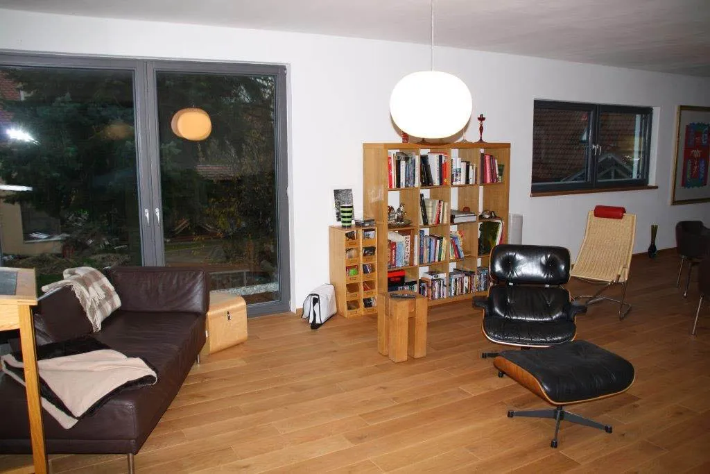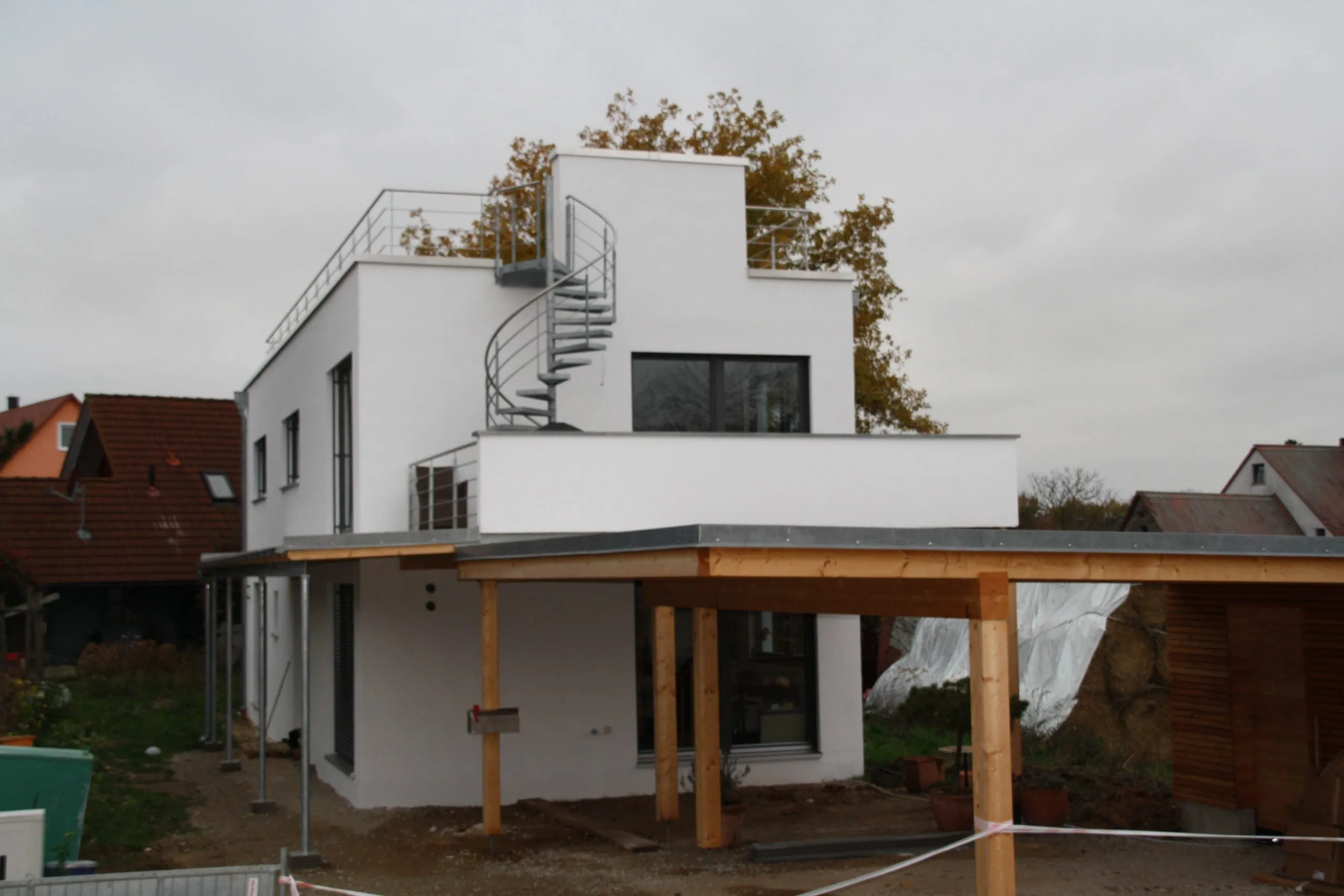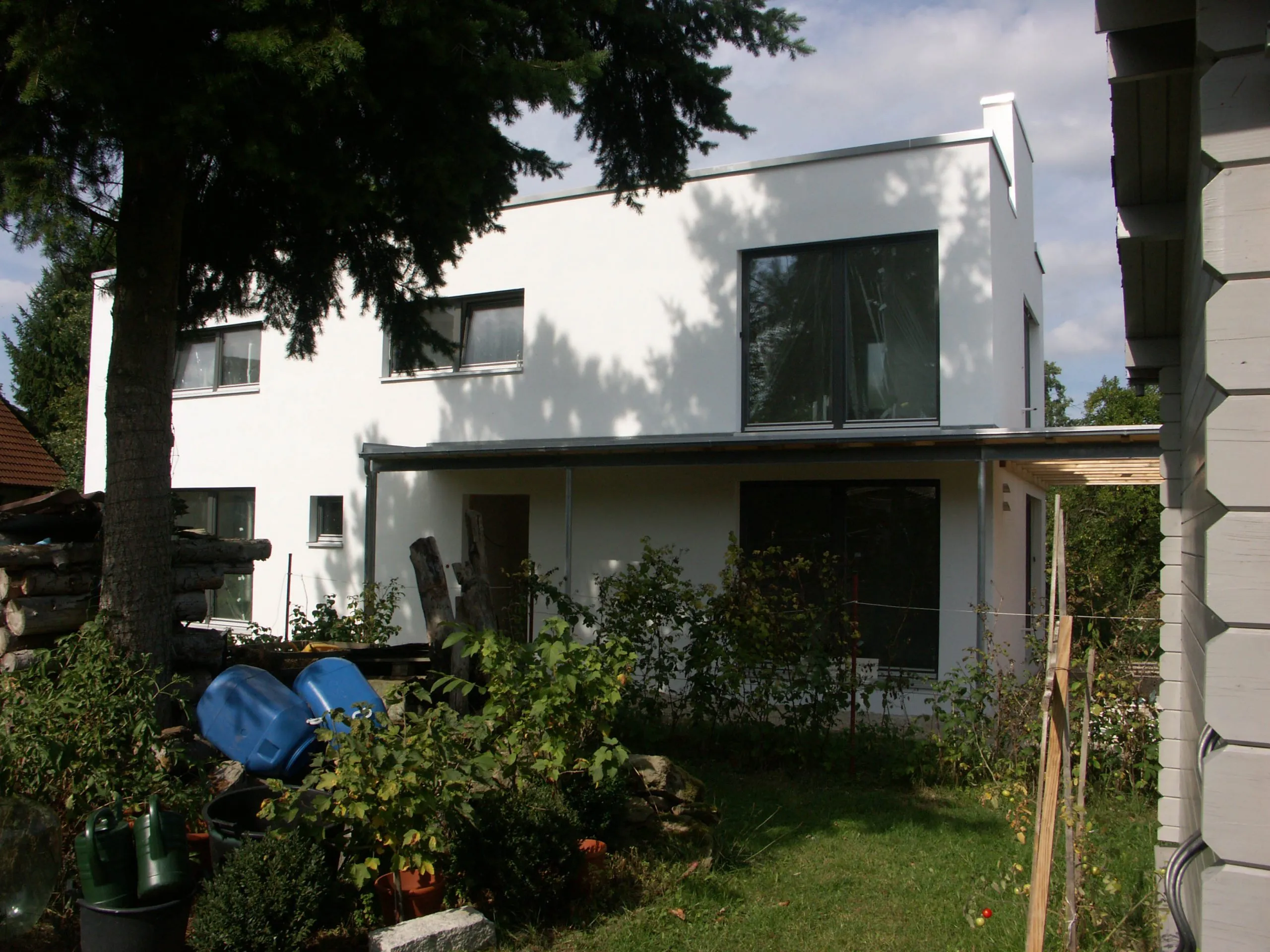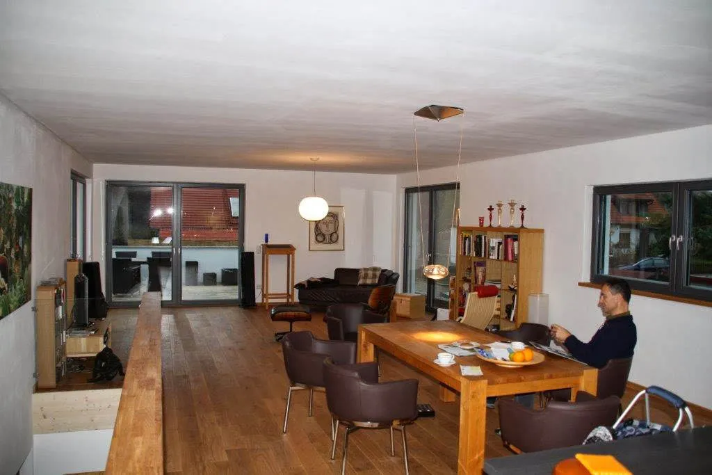 Offene Gestaltung des DG mit Küche, Essen, Wohnen, EG Schlafbereich, große Terrasse mit Garten auf Fachdach
