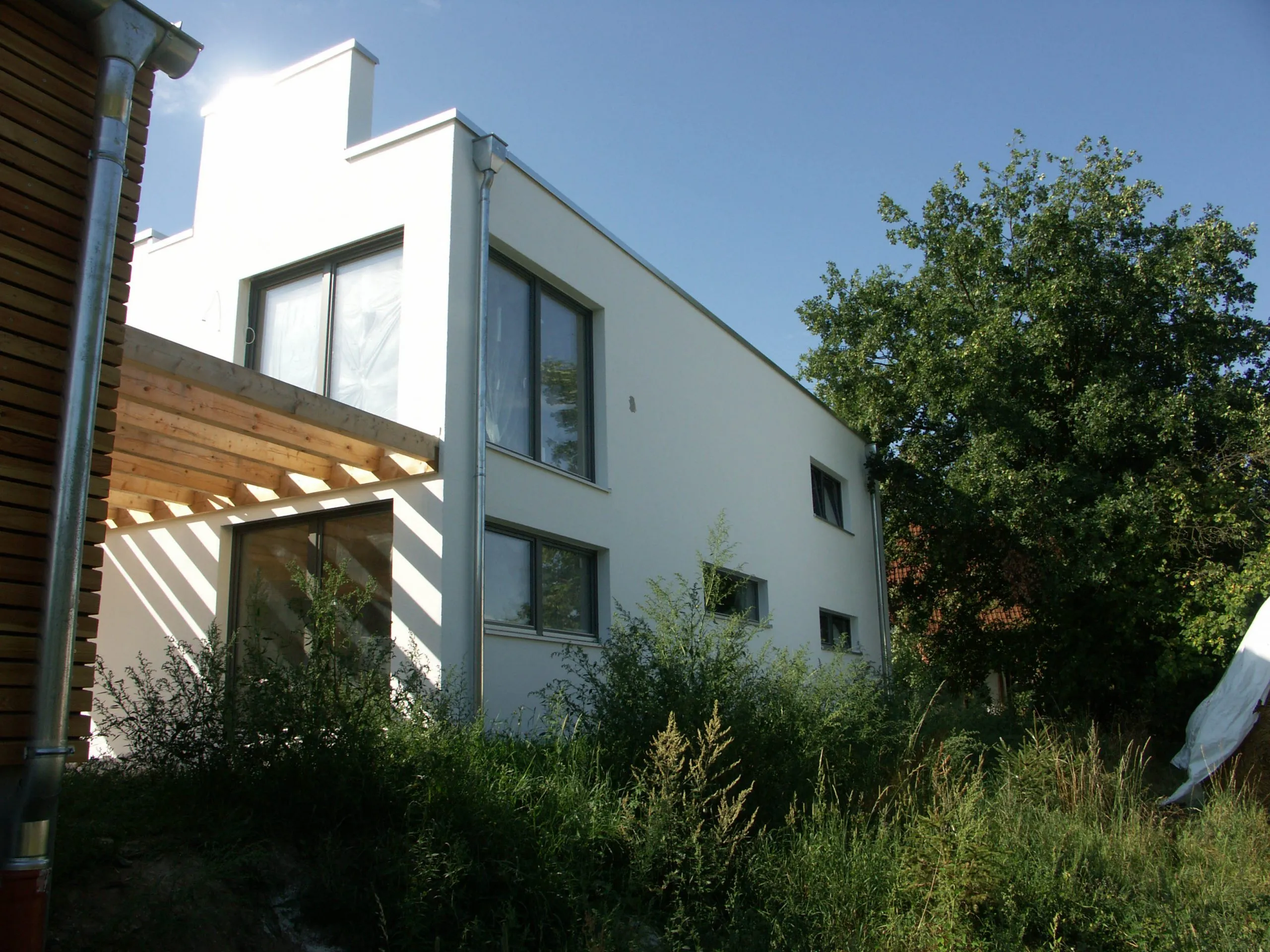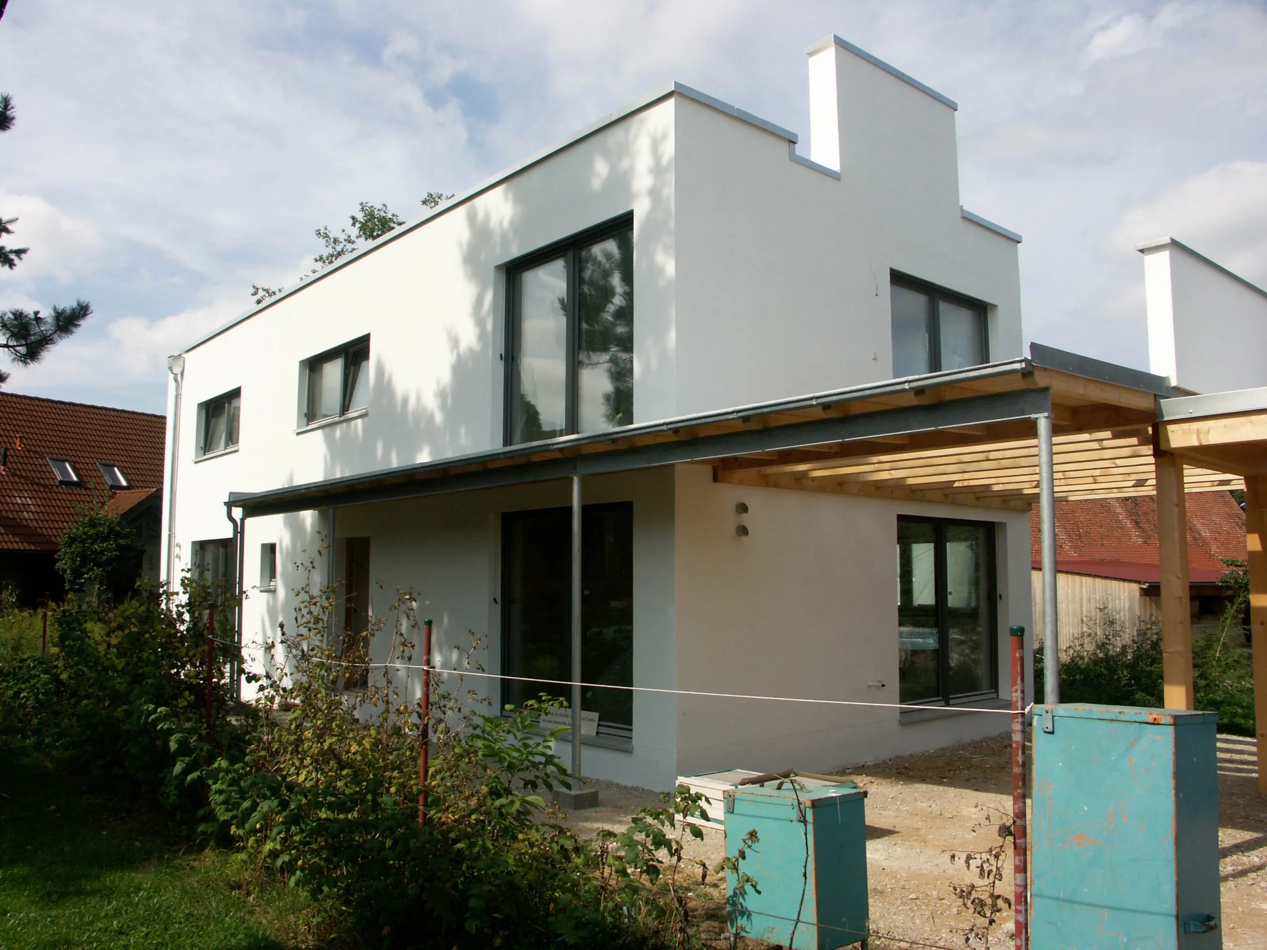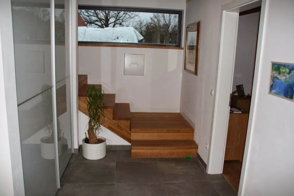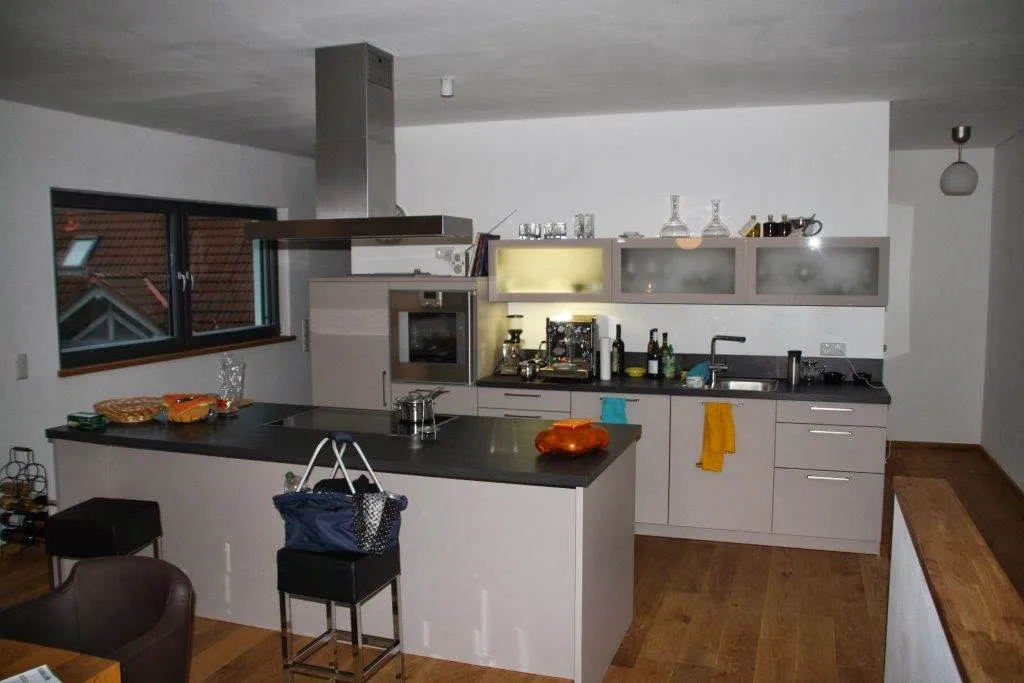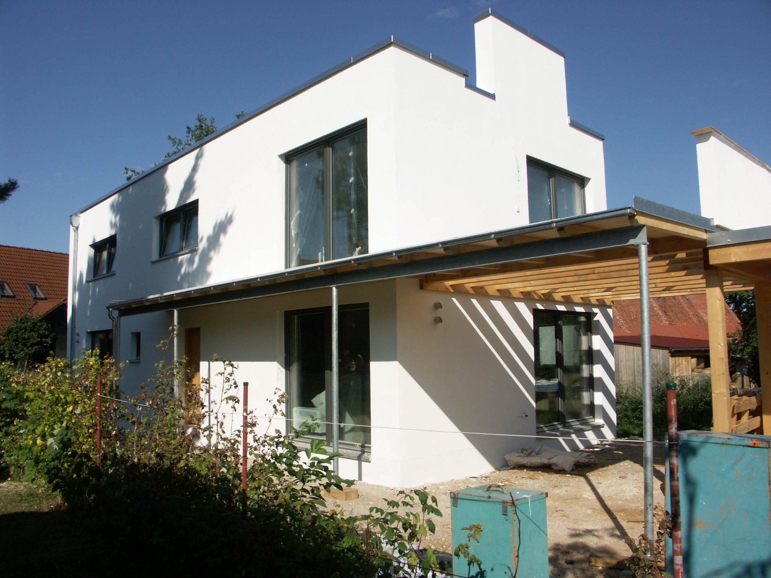 Offene Gestaltung des DG mit Küche, Essen, Wohnen, EG Schlafbereich, große Terrasse mit Garten auf Fachdach