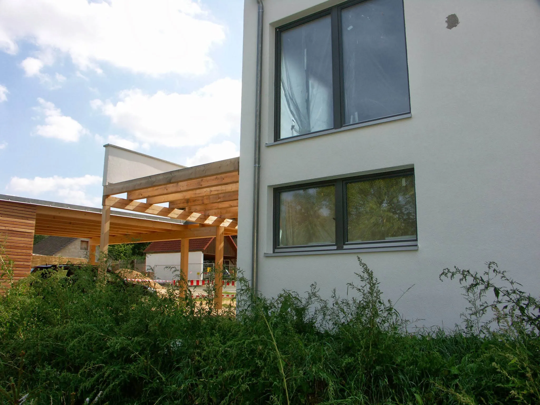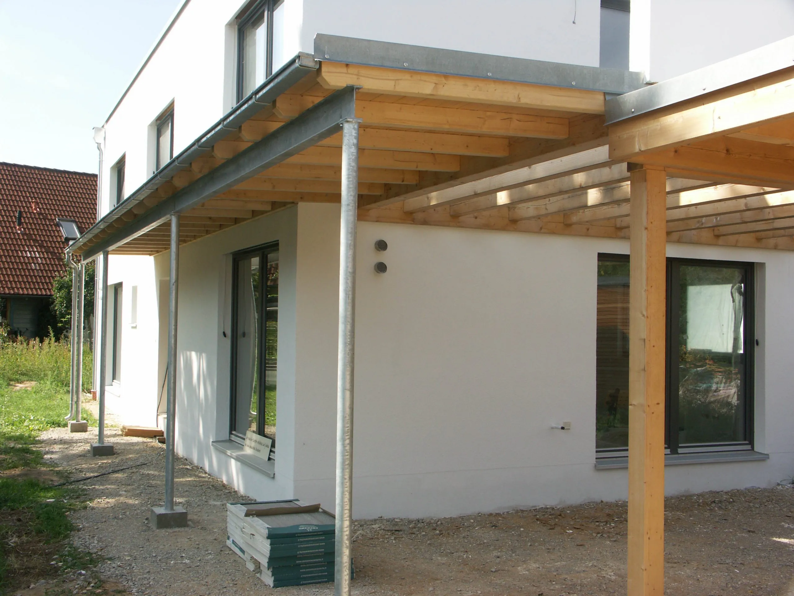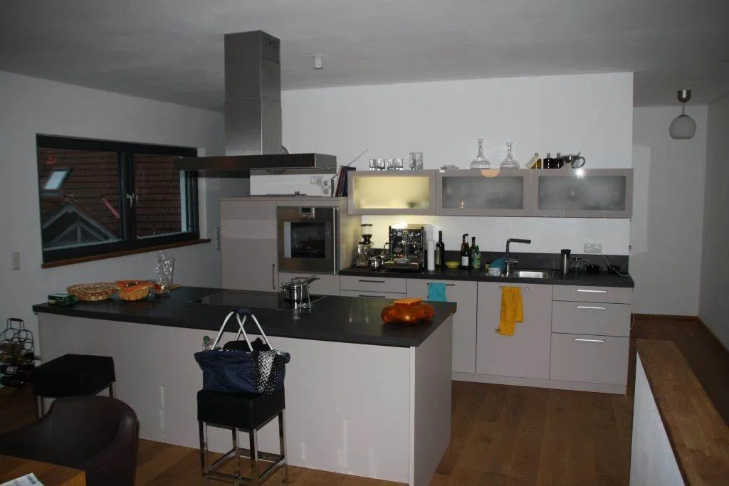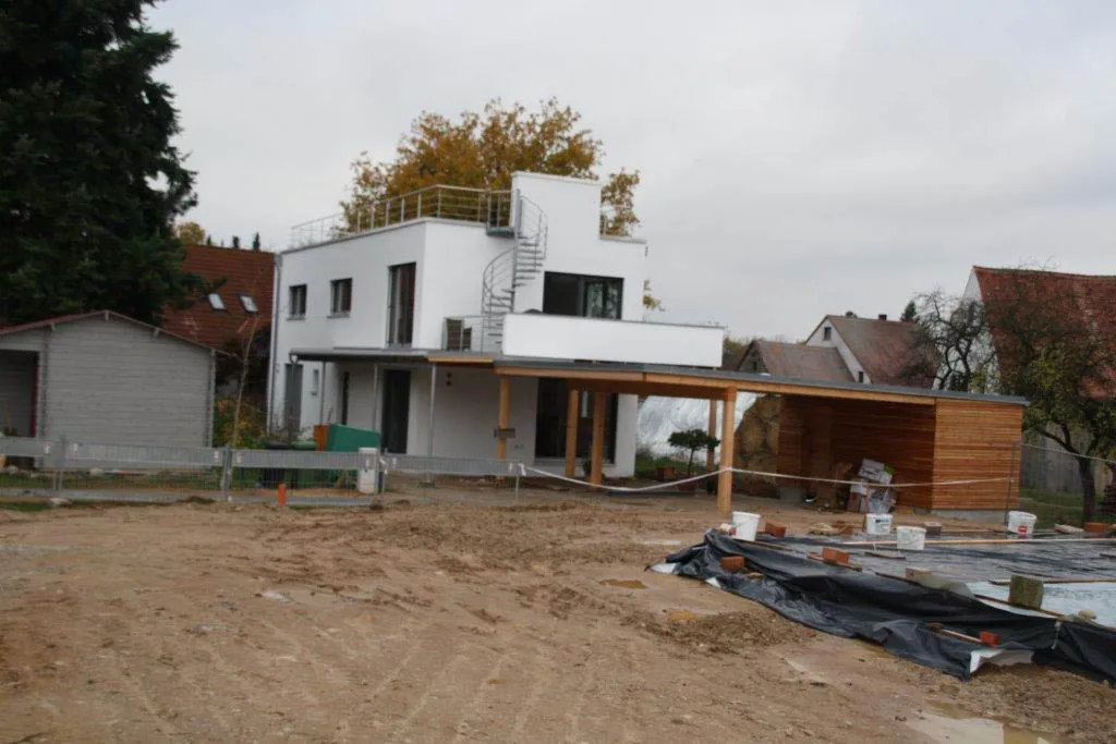 Offene Gestaltung des DG mit Küche, Essen, Wohnen, EG Schlafbereich, große Terrasse mit Garten auf Fachdach
