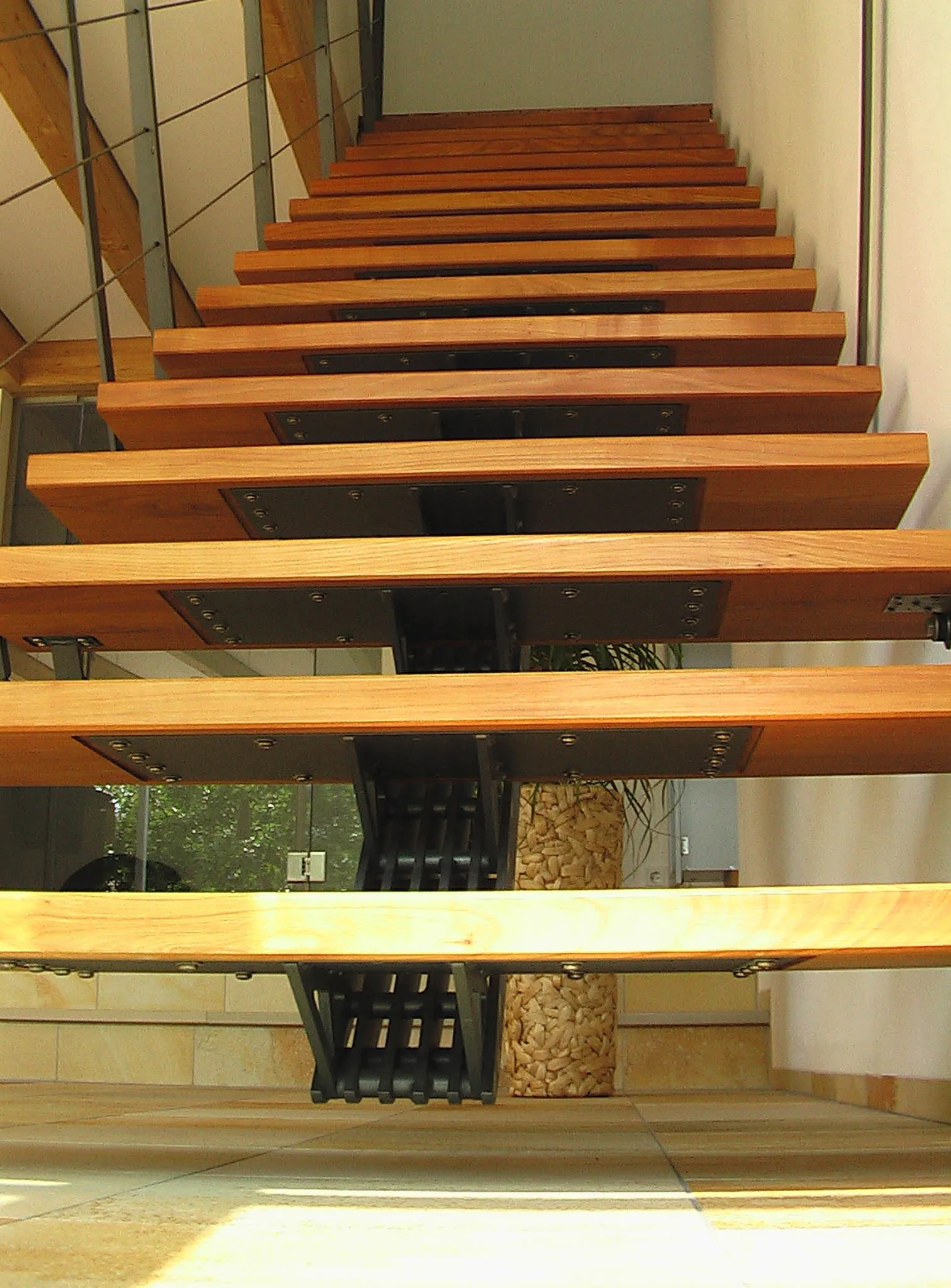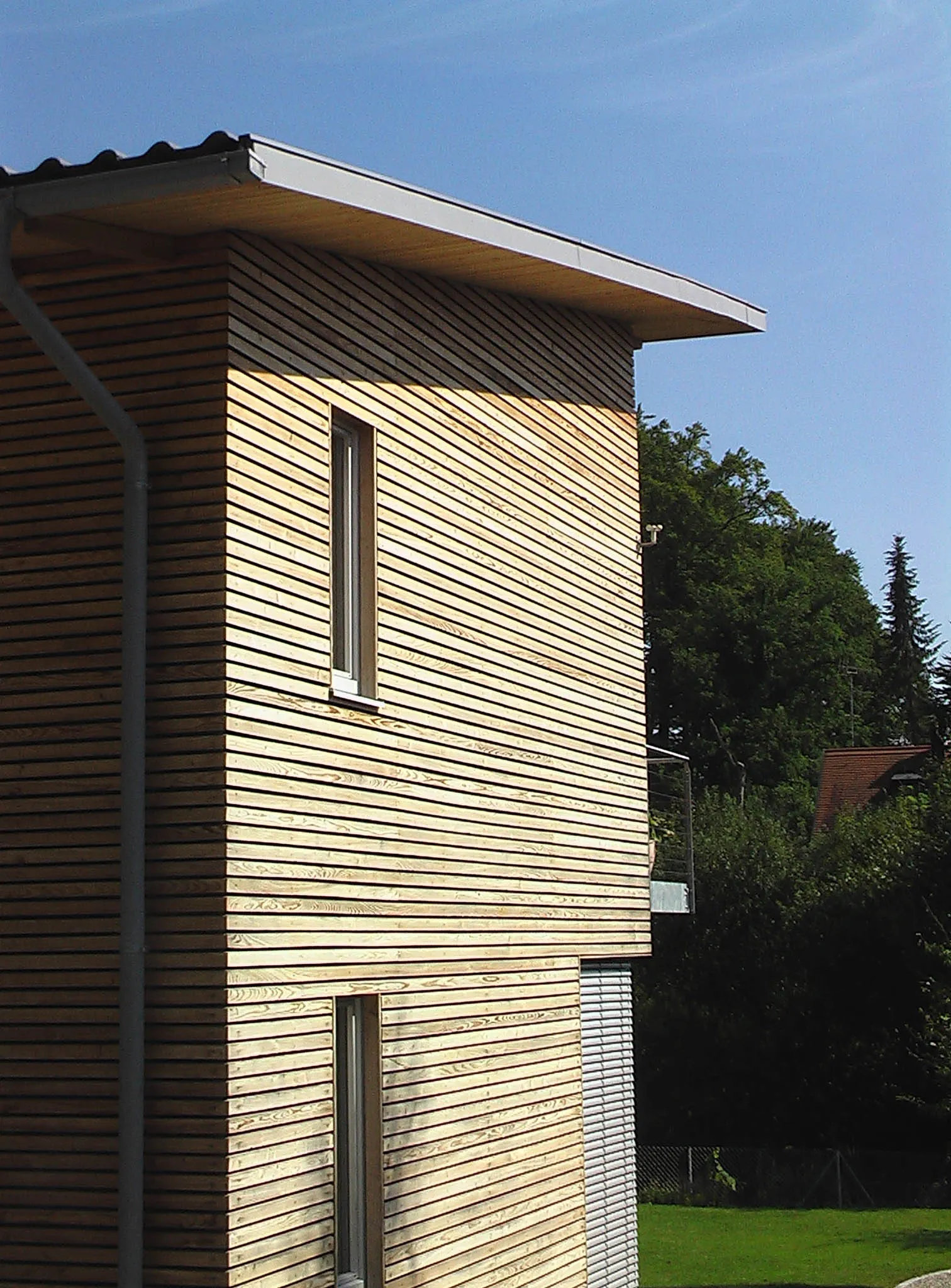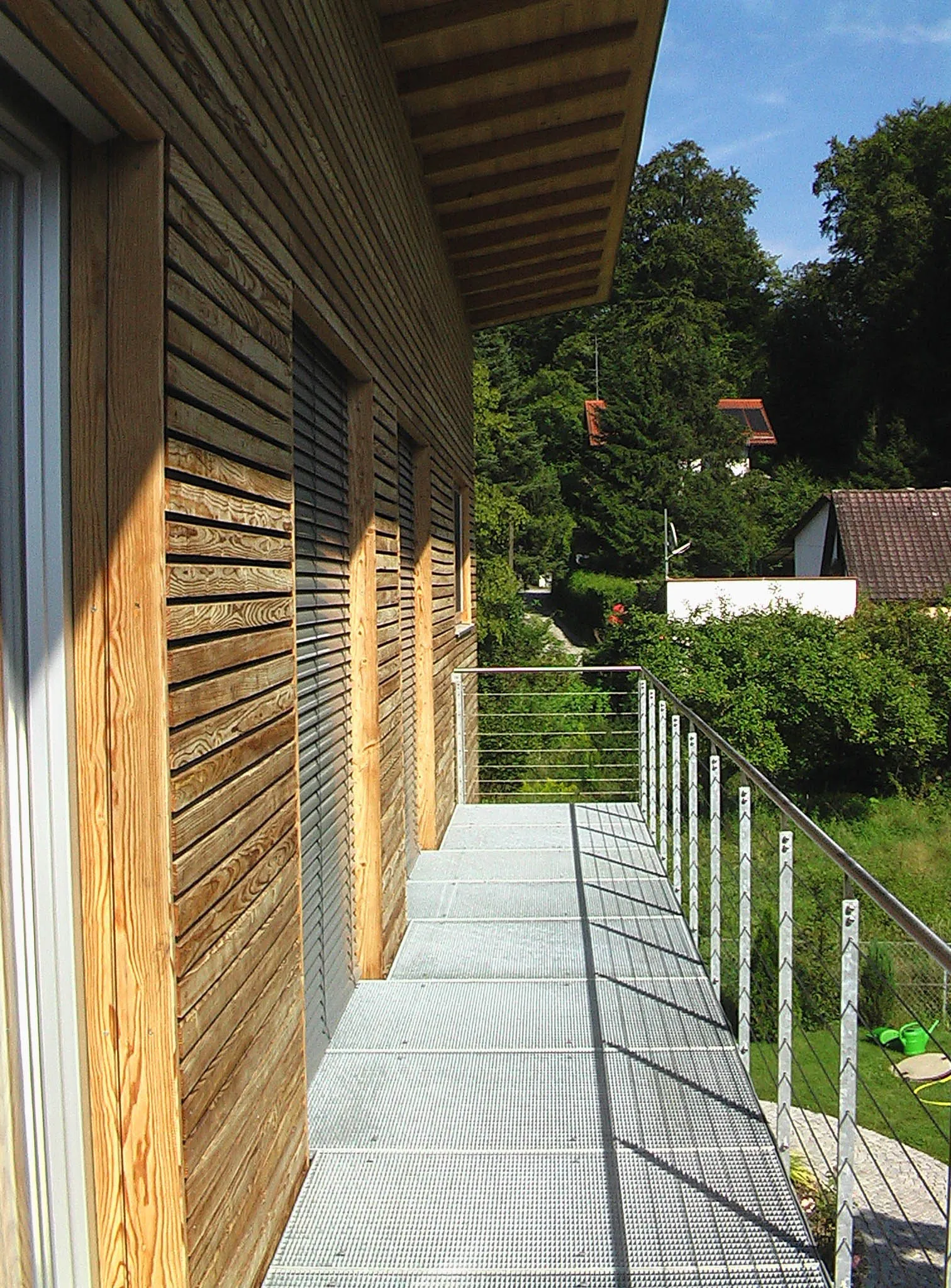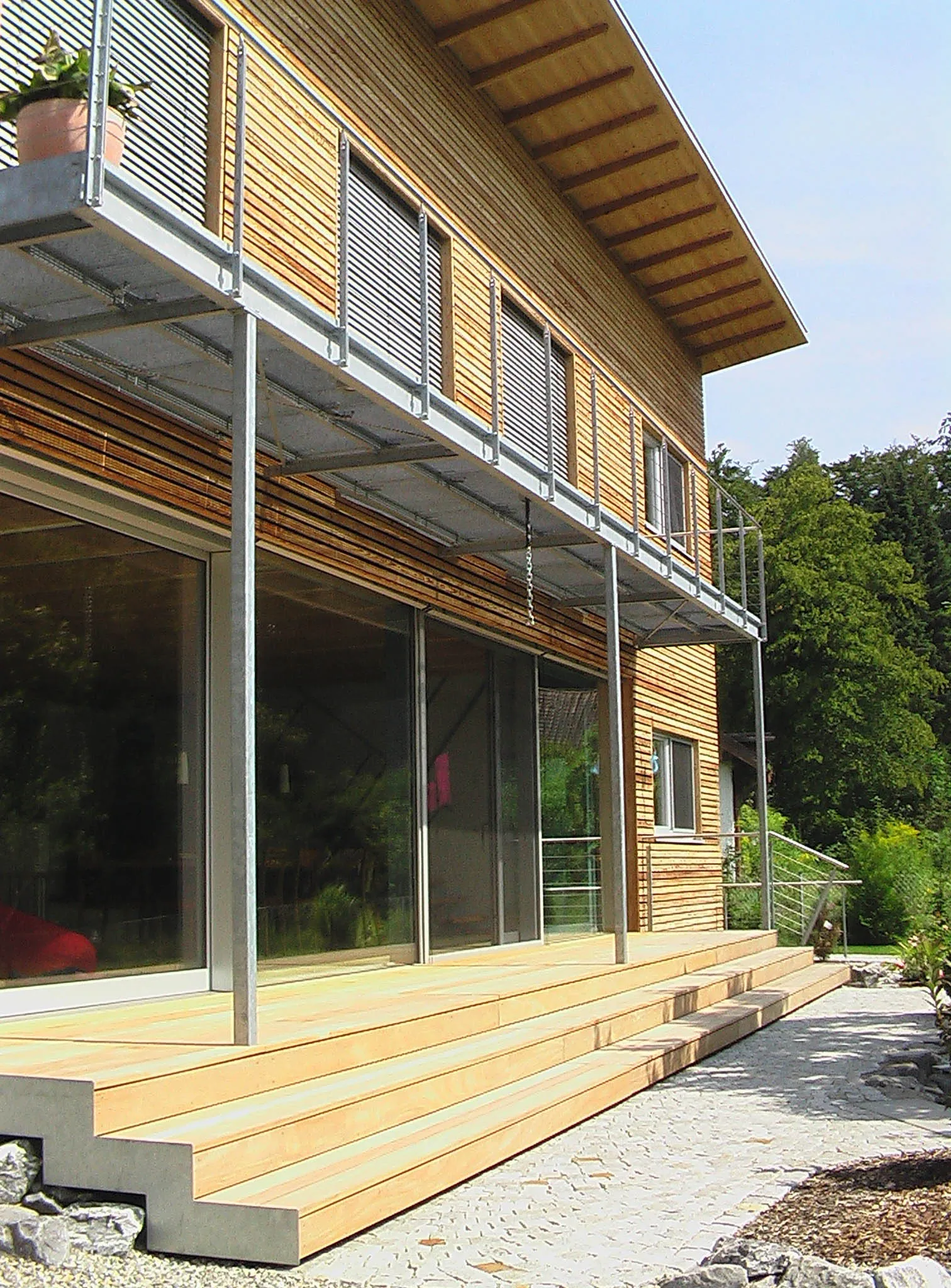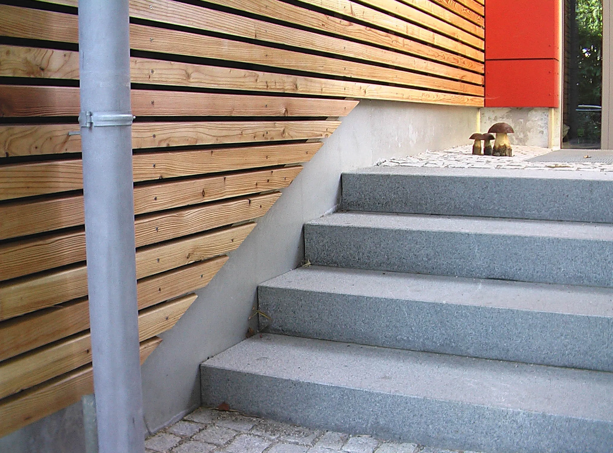 Treppe in Eigenbau, Fassade mit farbloser Lasur