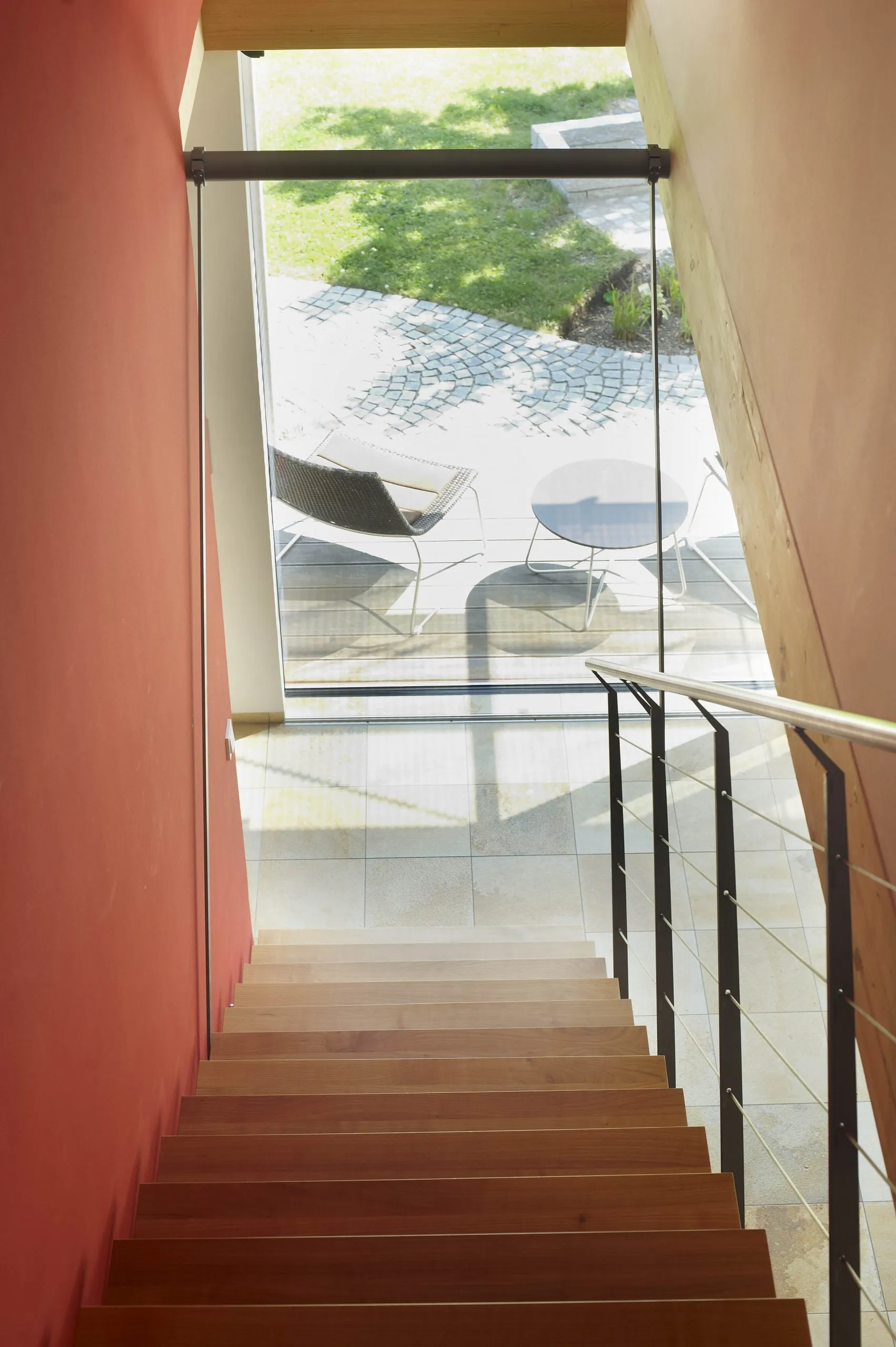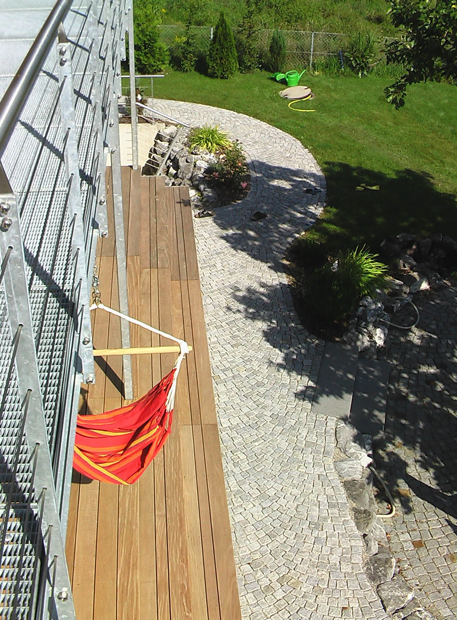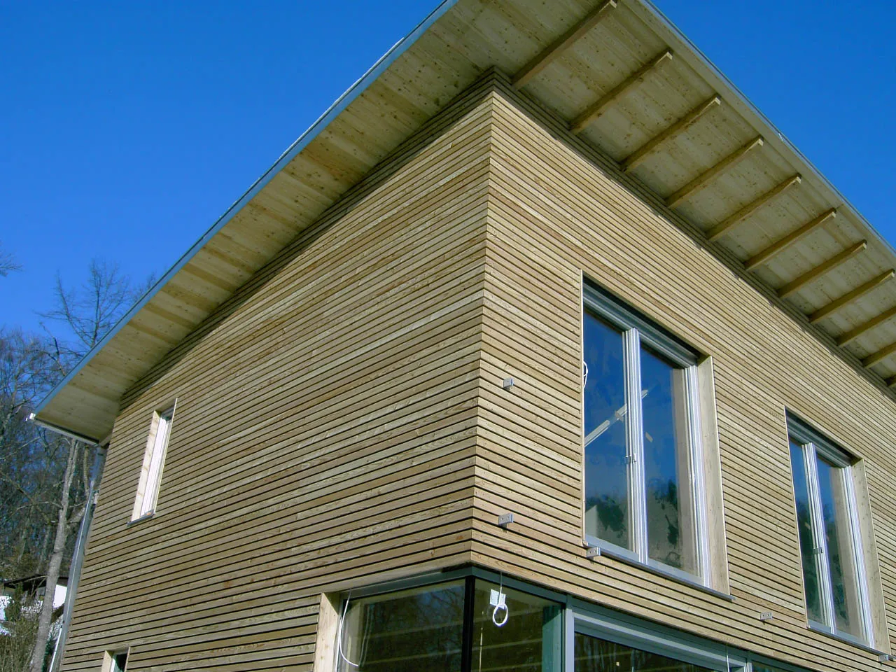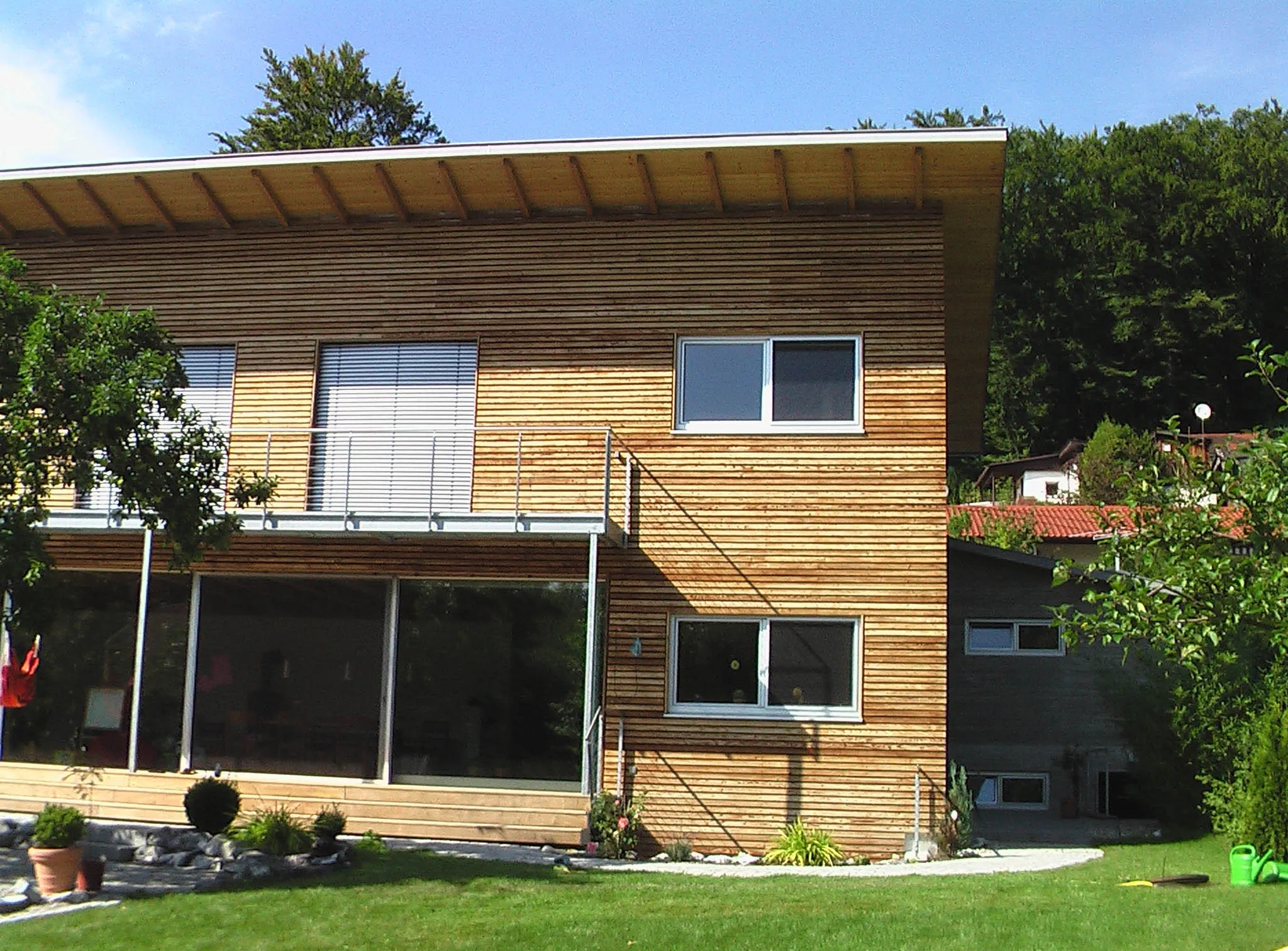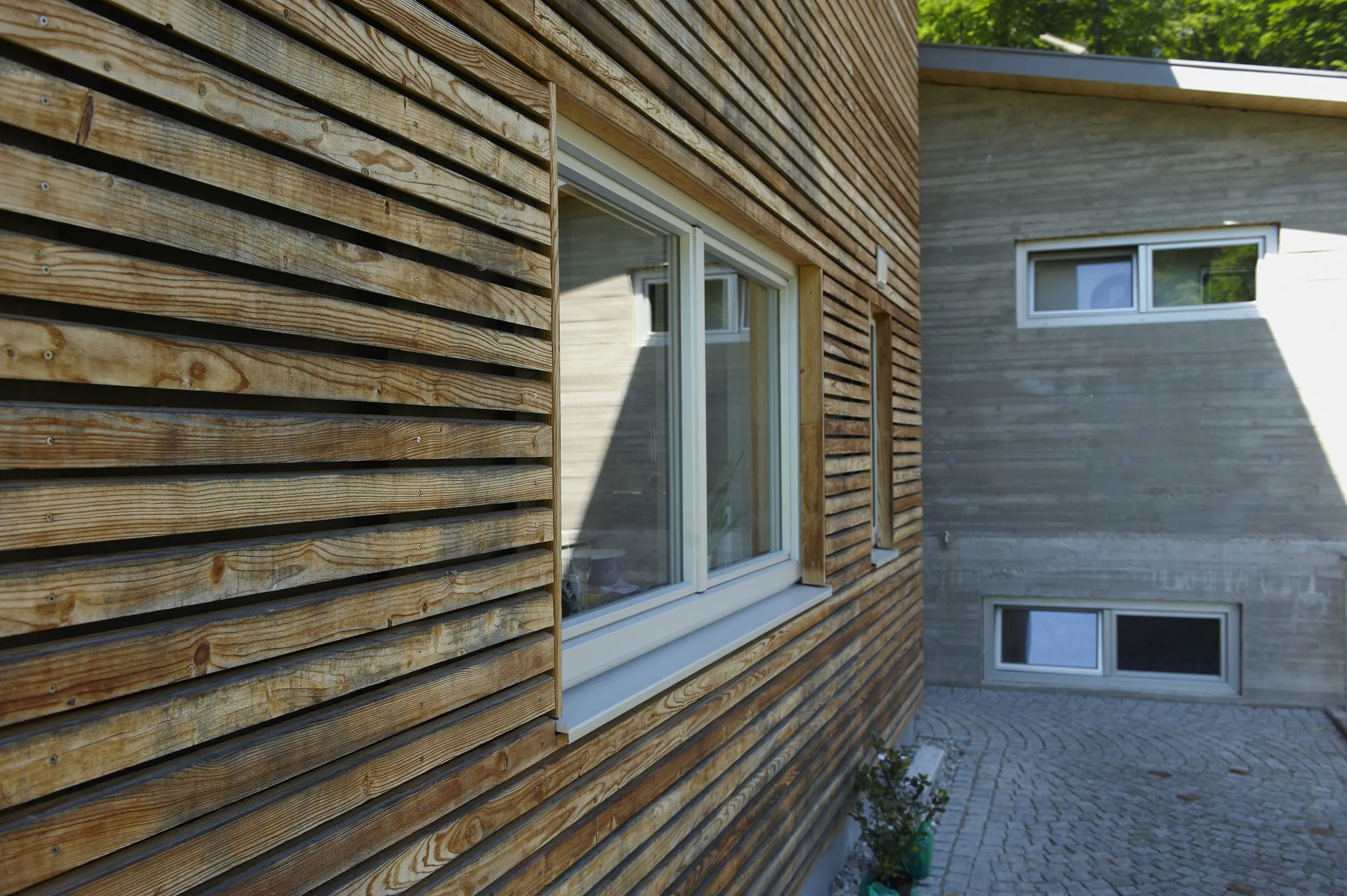 Treppe in Eigenbau, Fassade mit farbloser Lasur