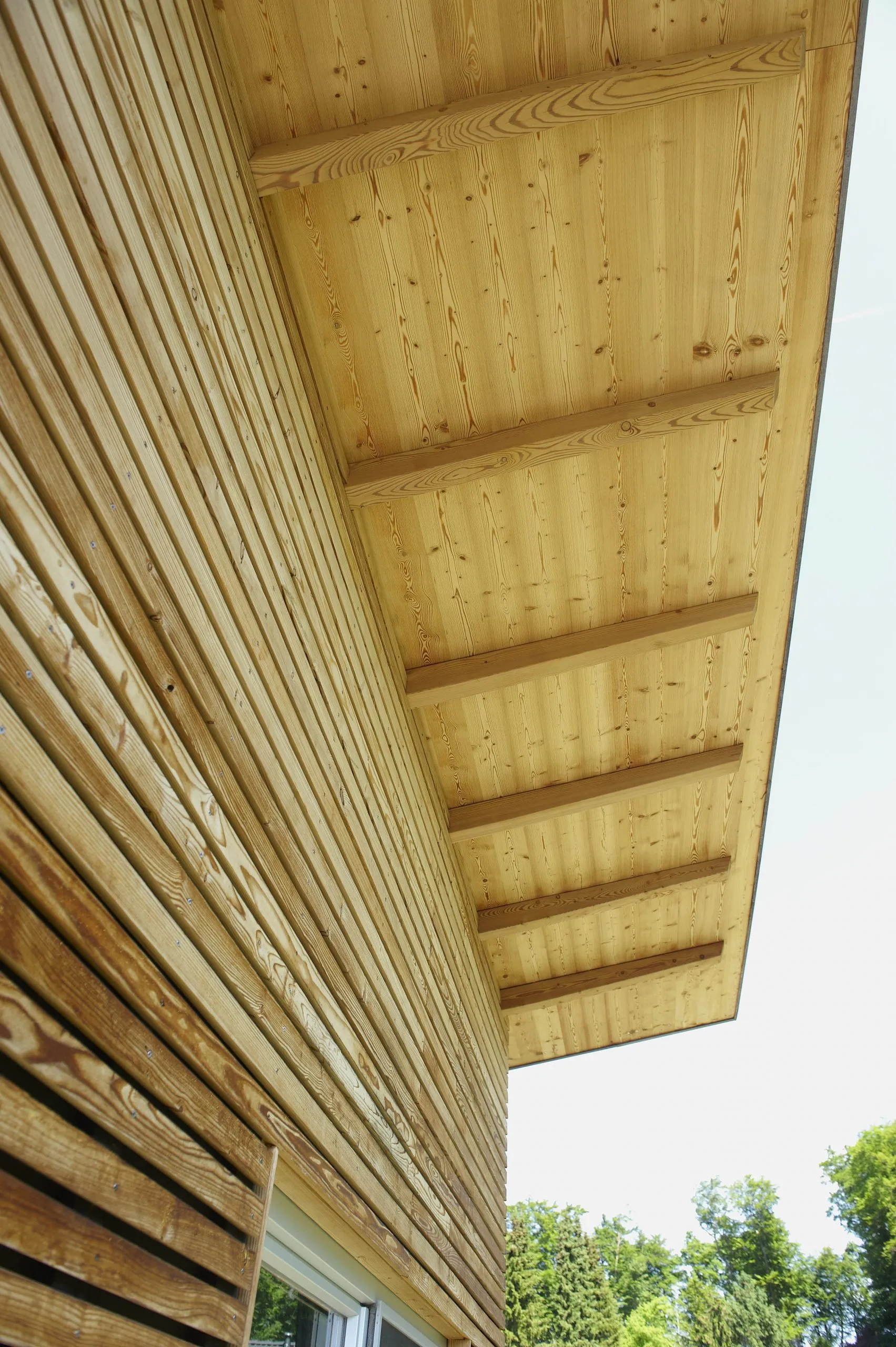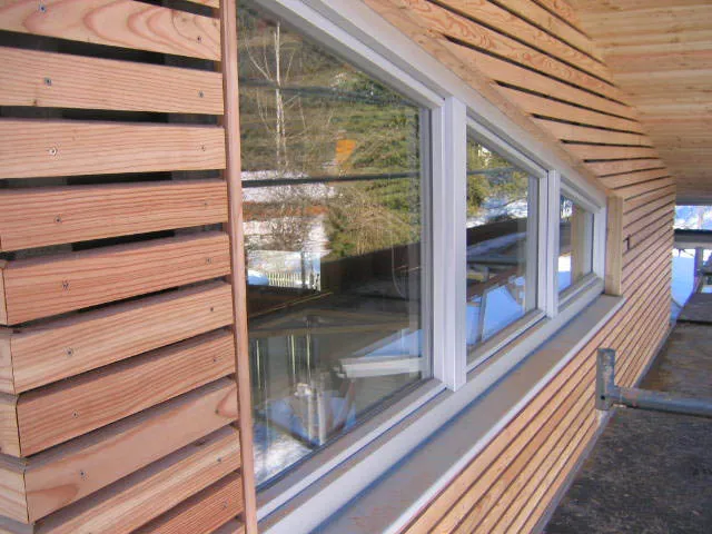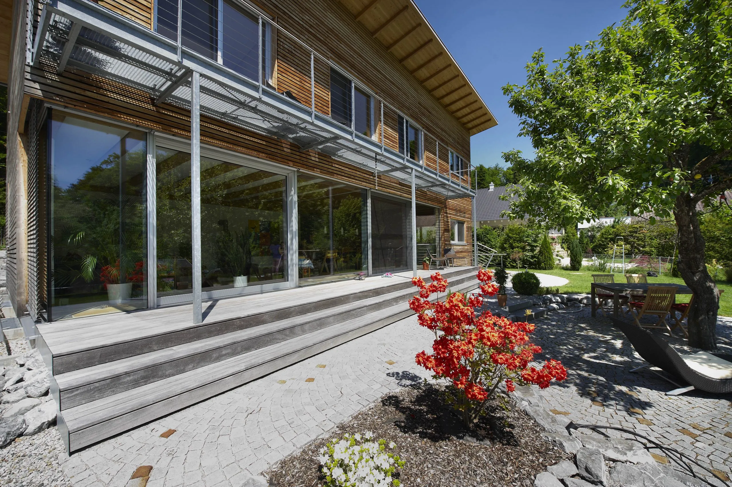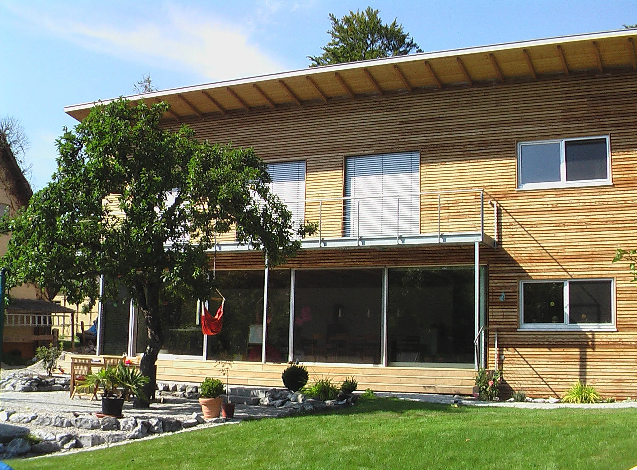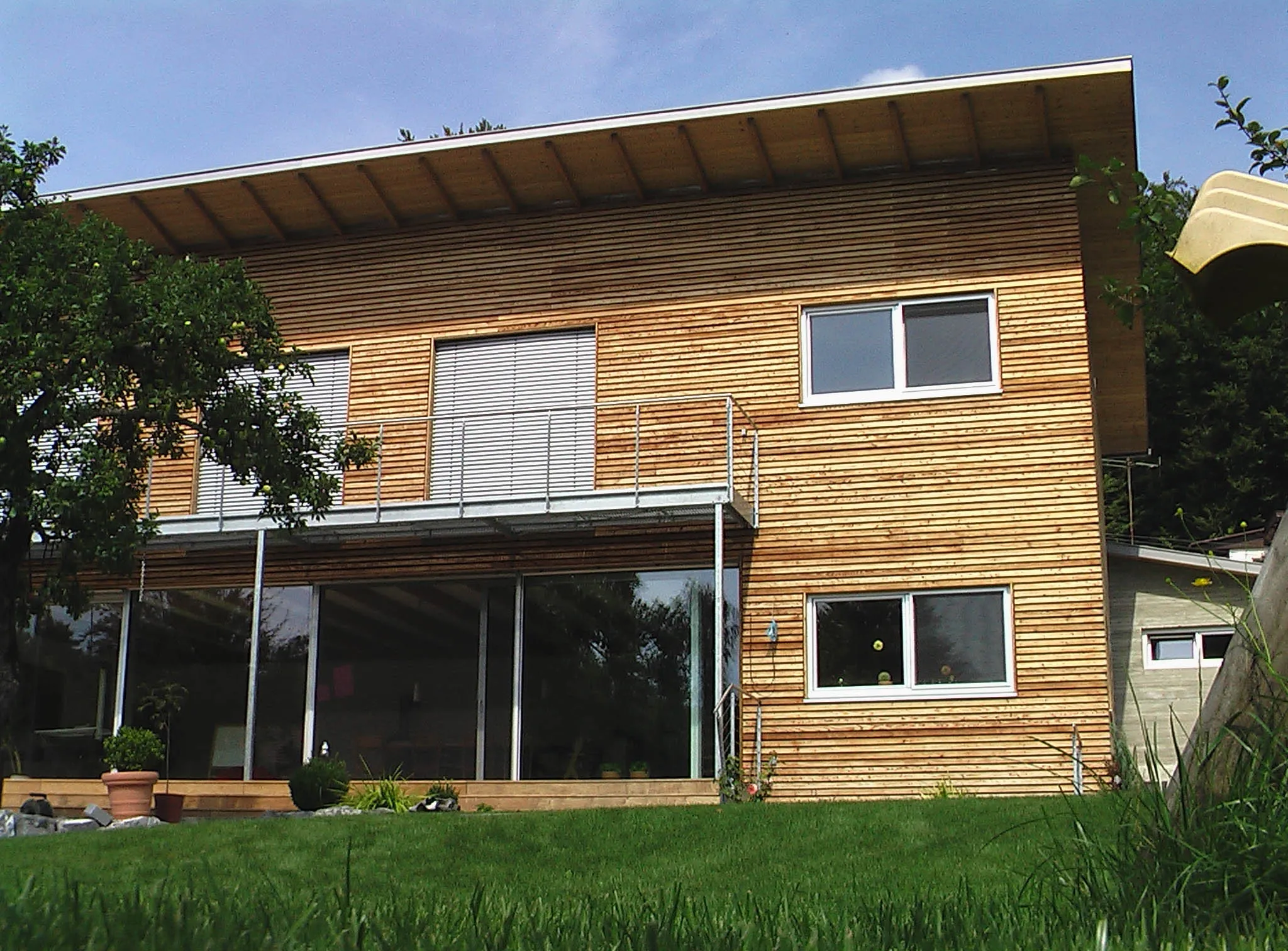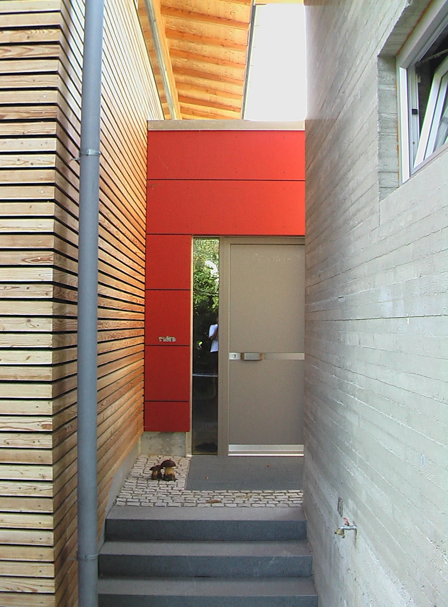 Treppe in Eigenbau, Fassade mit farbloser Lasur