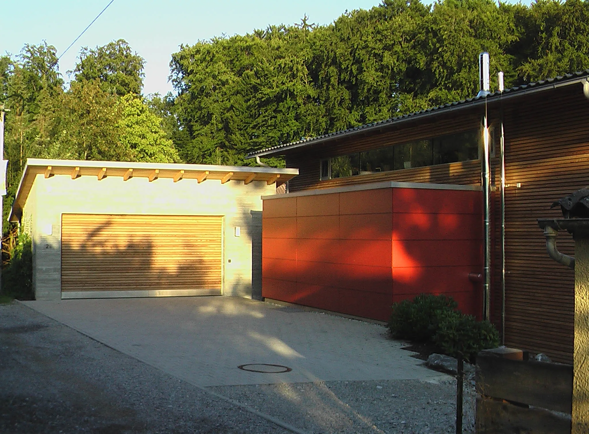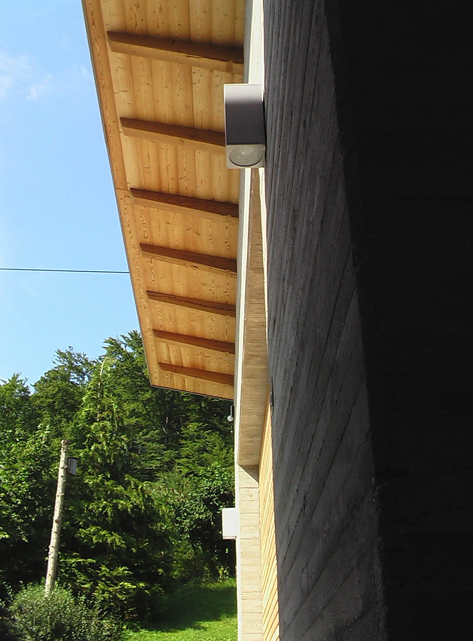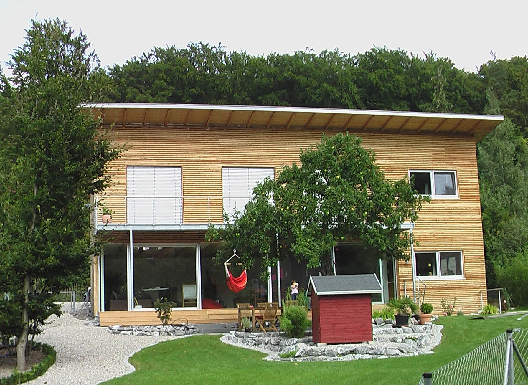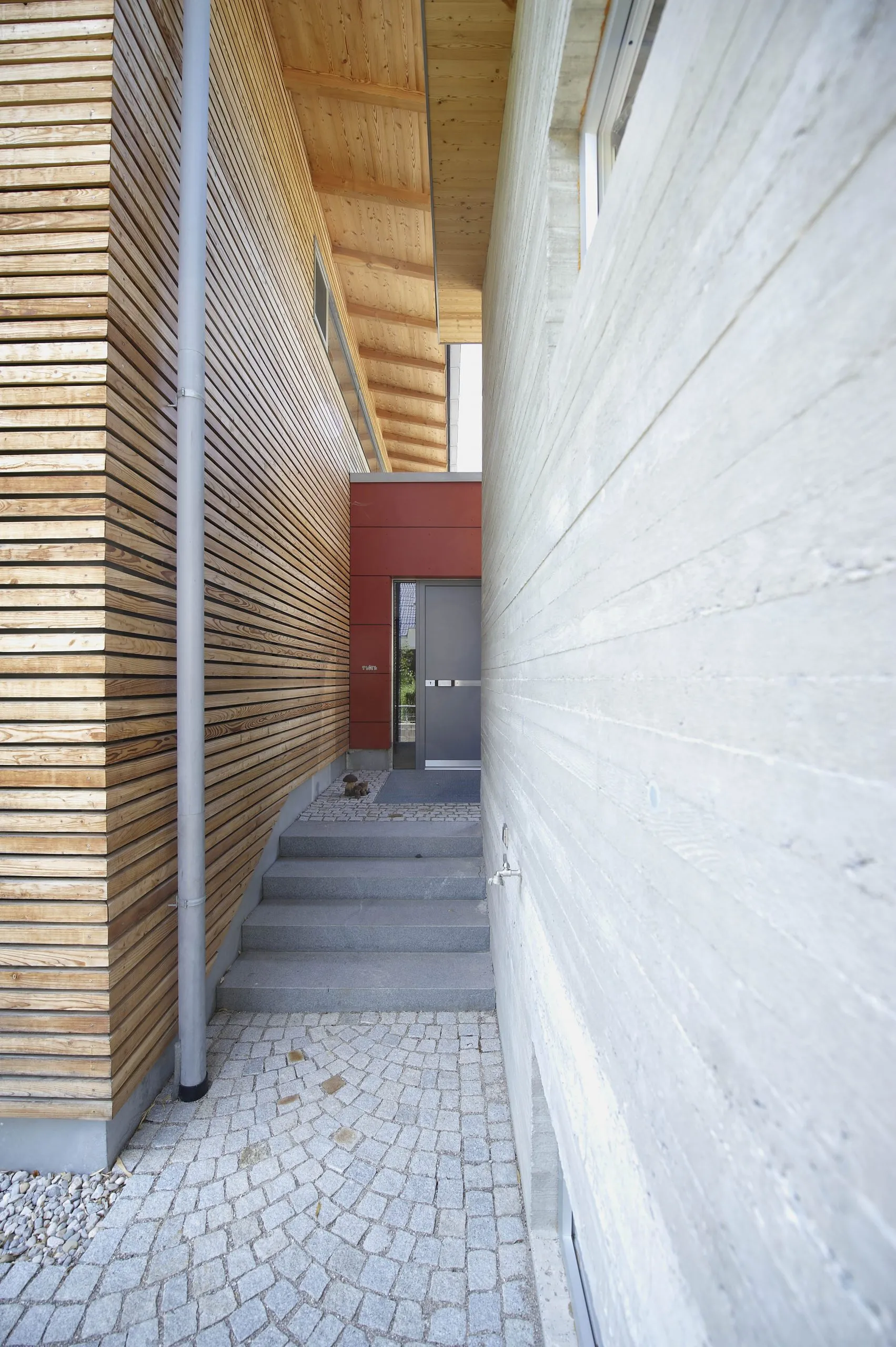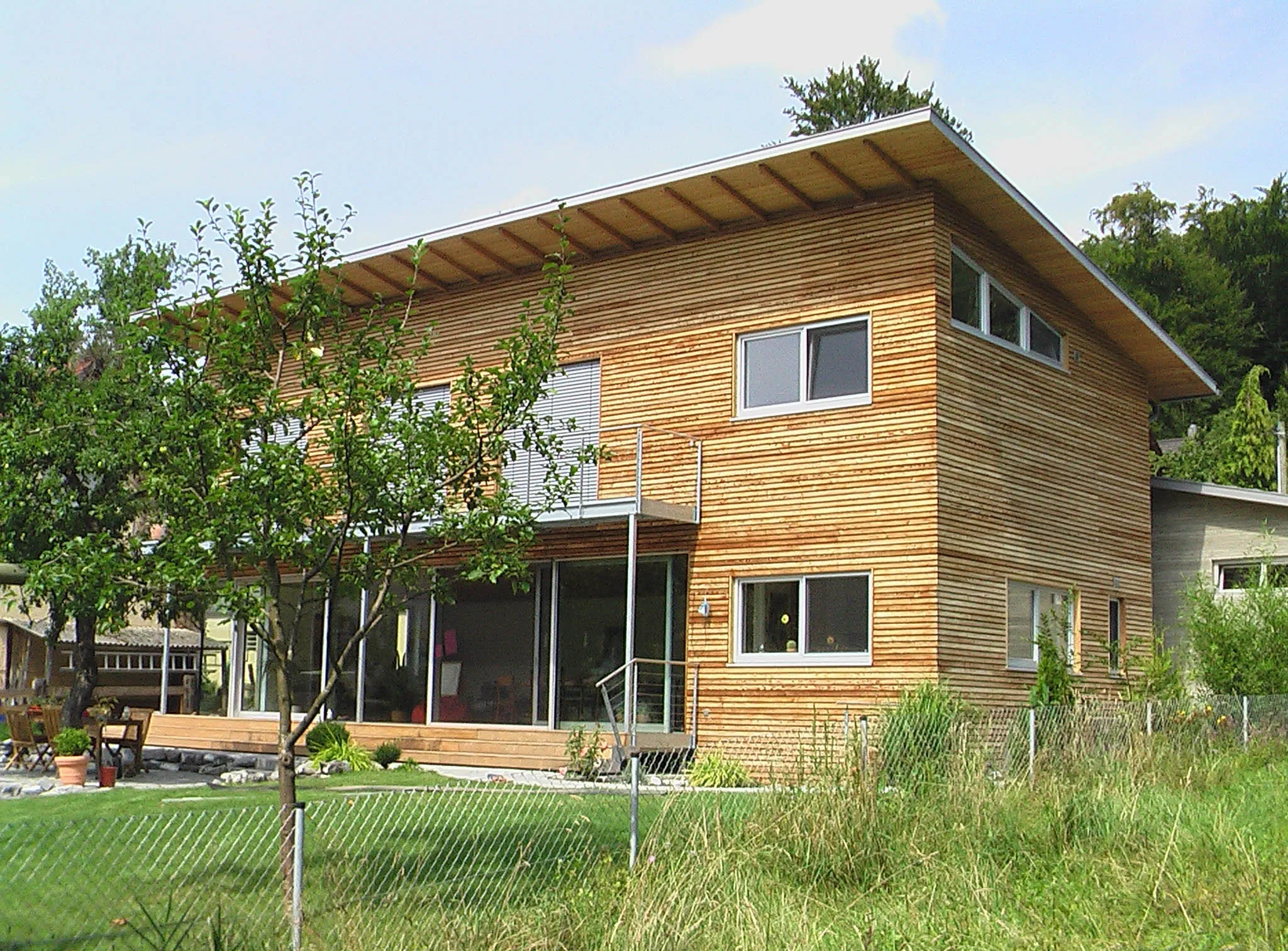 Treppe in Eigenbau, Fassade mit farbloser Lasur