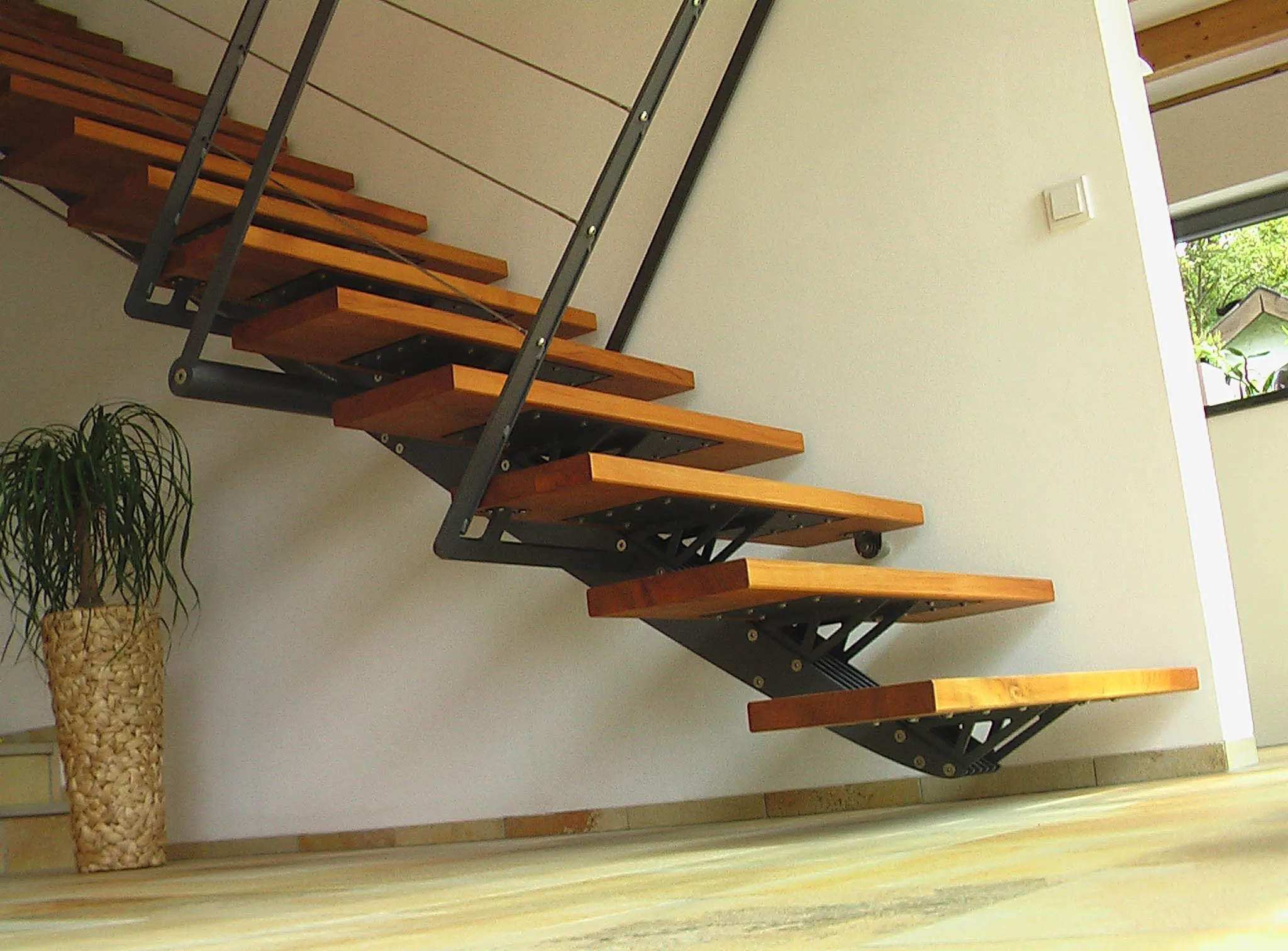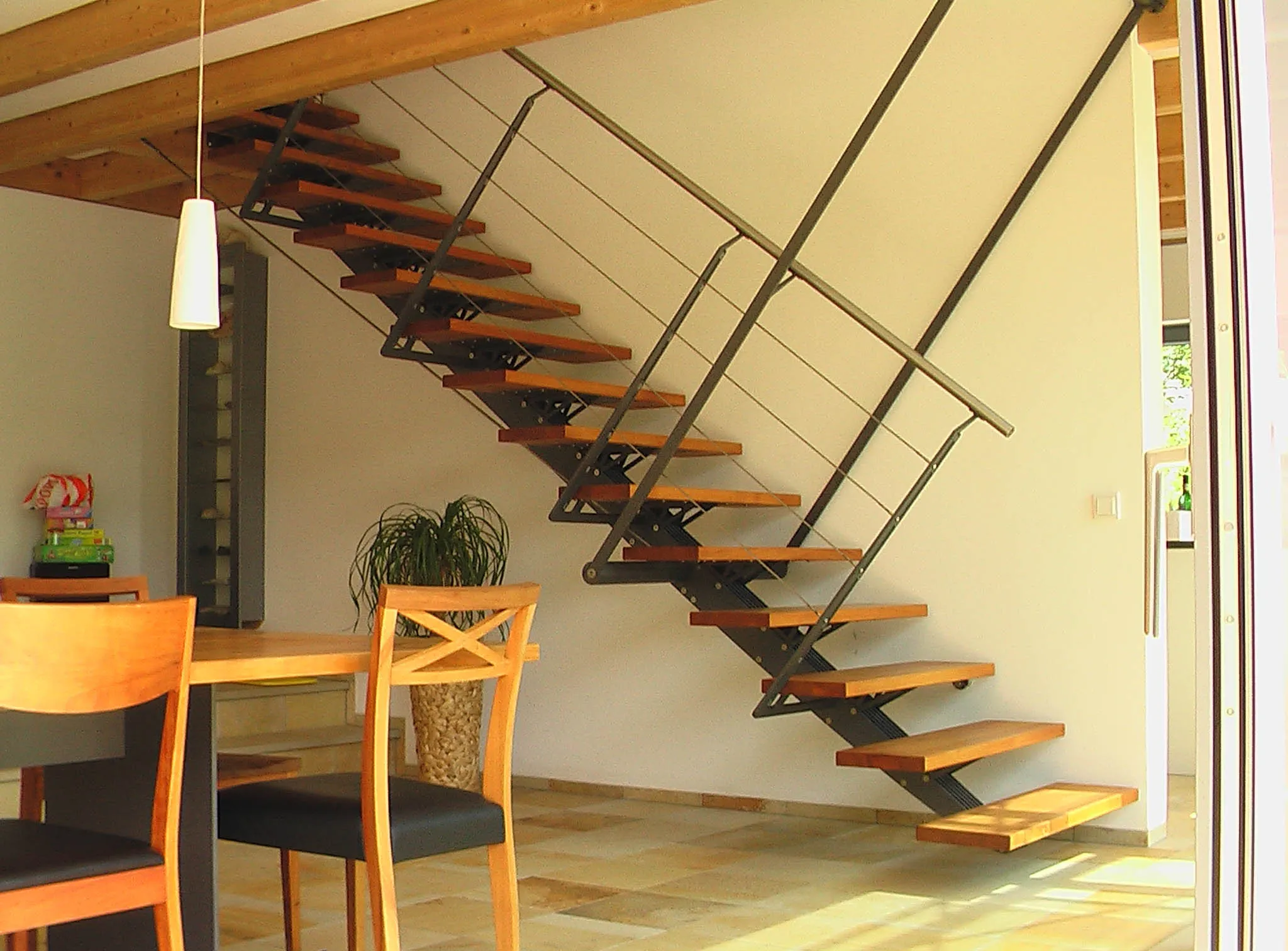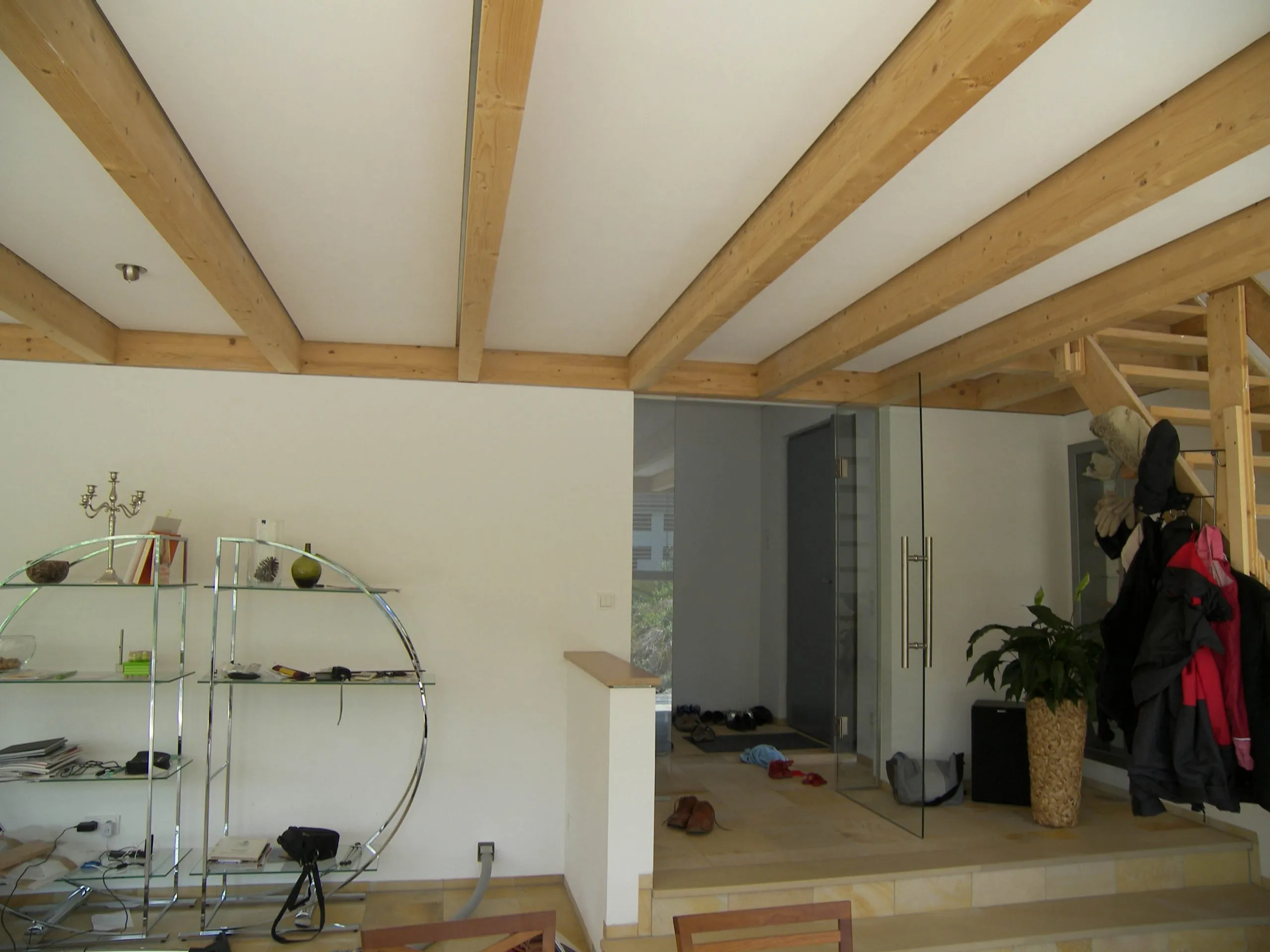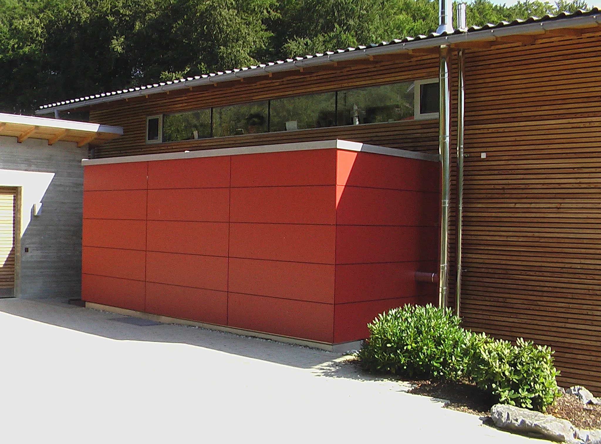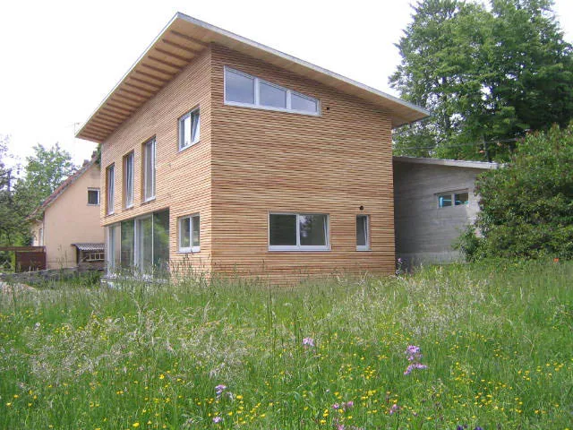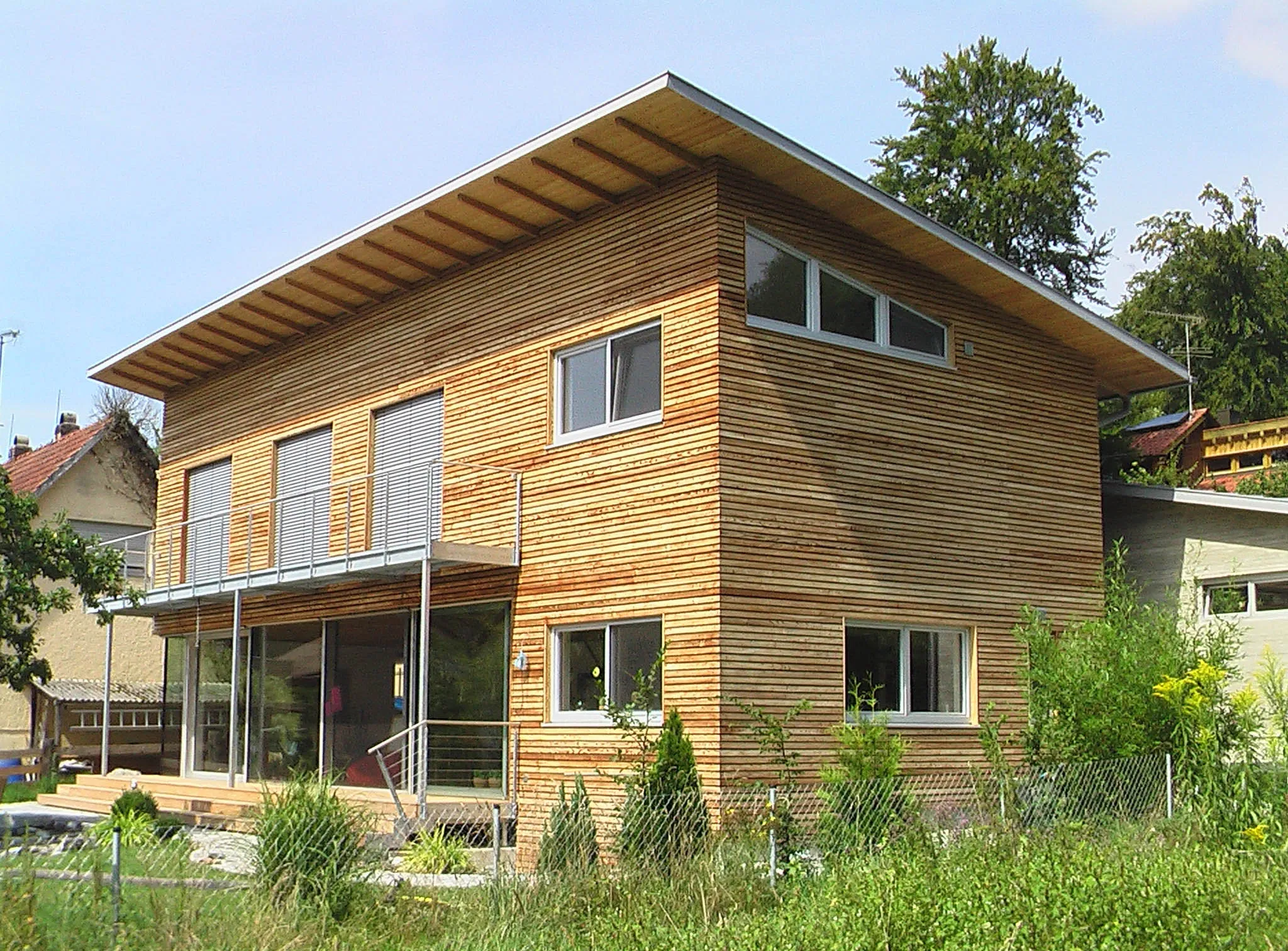 Treppe in Eigenbau, Fassade mit farbloser Lasur