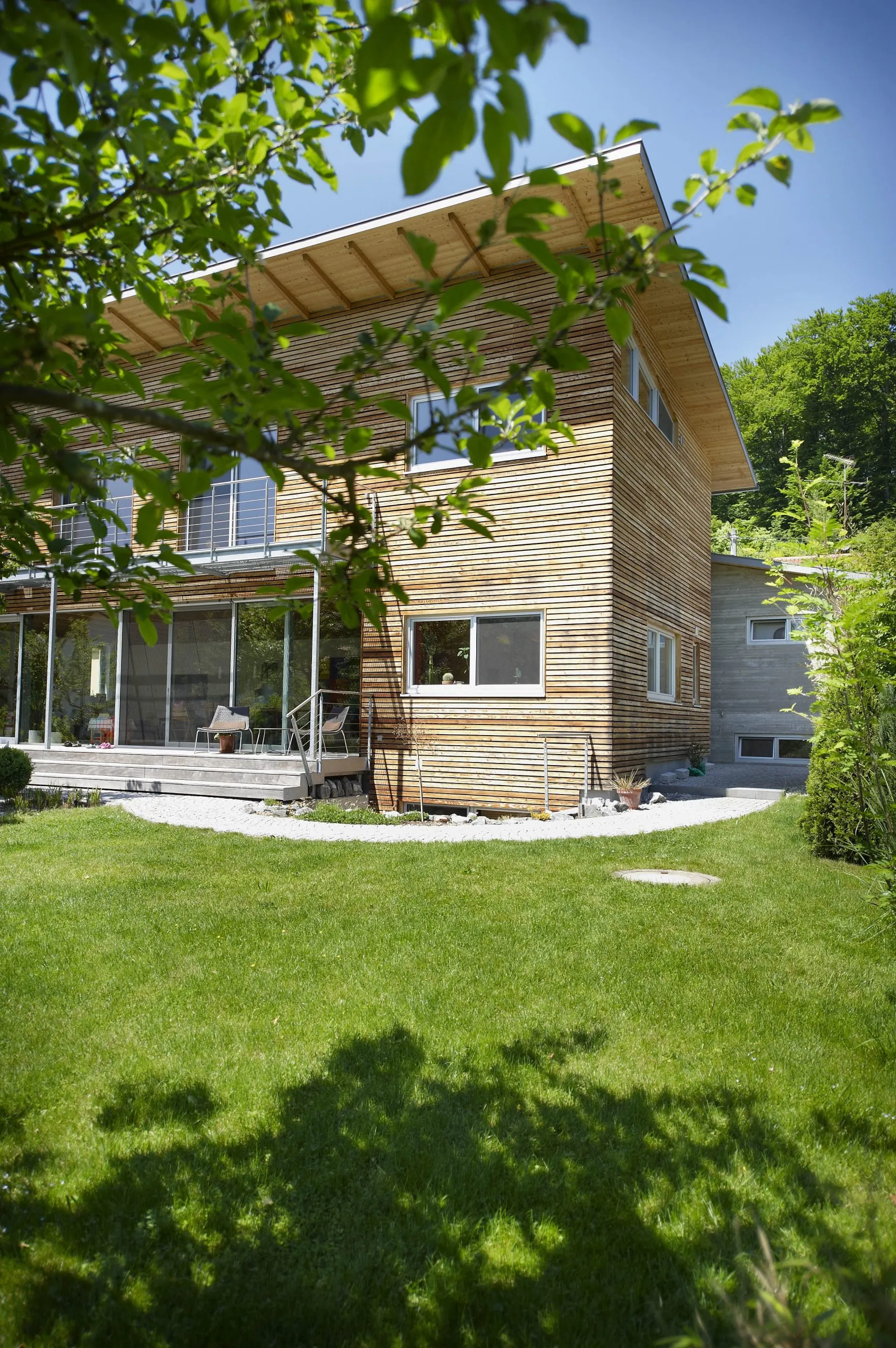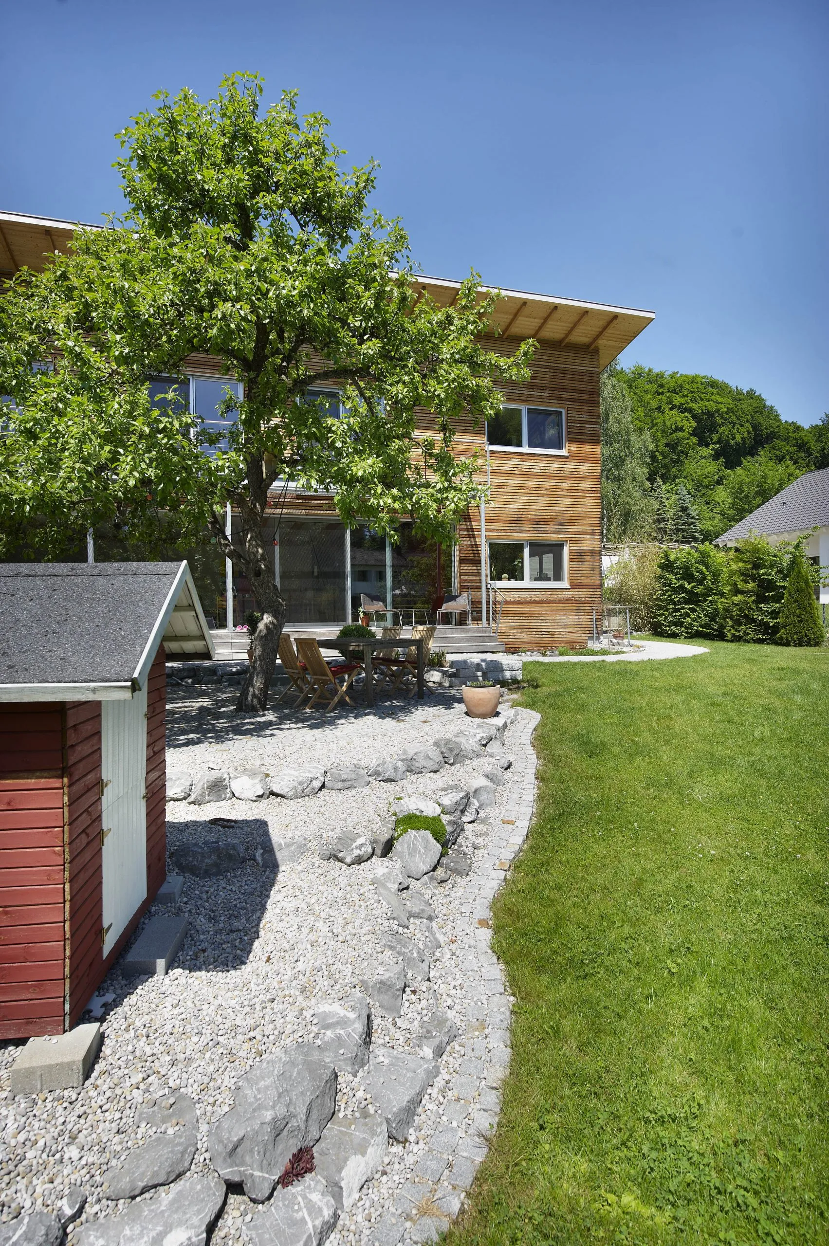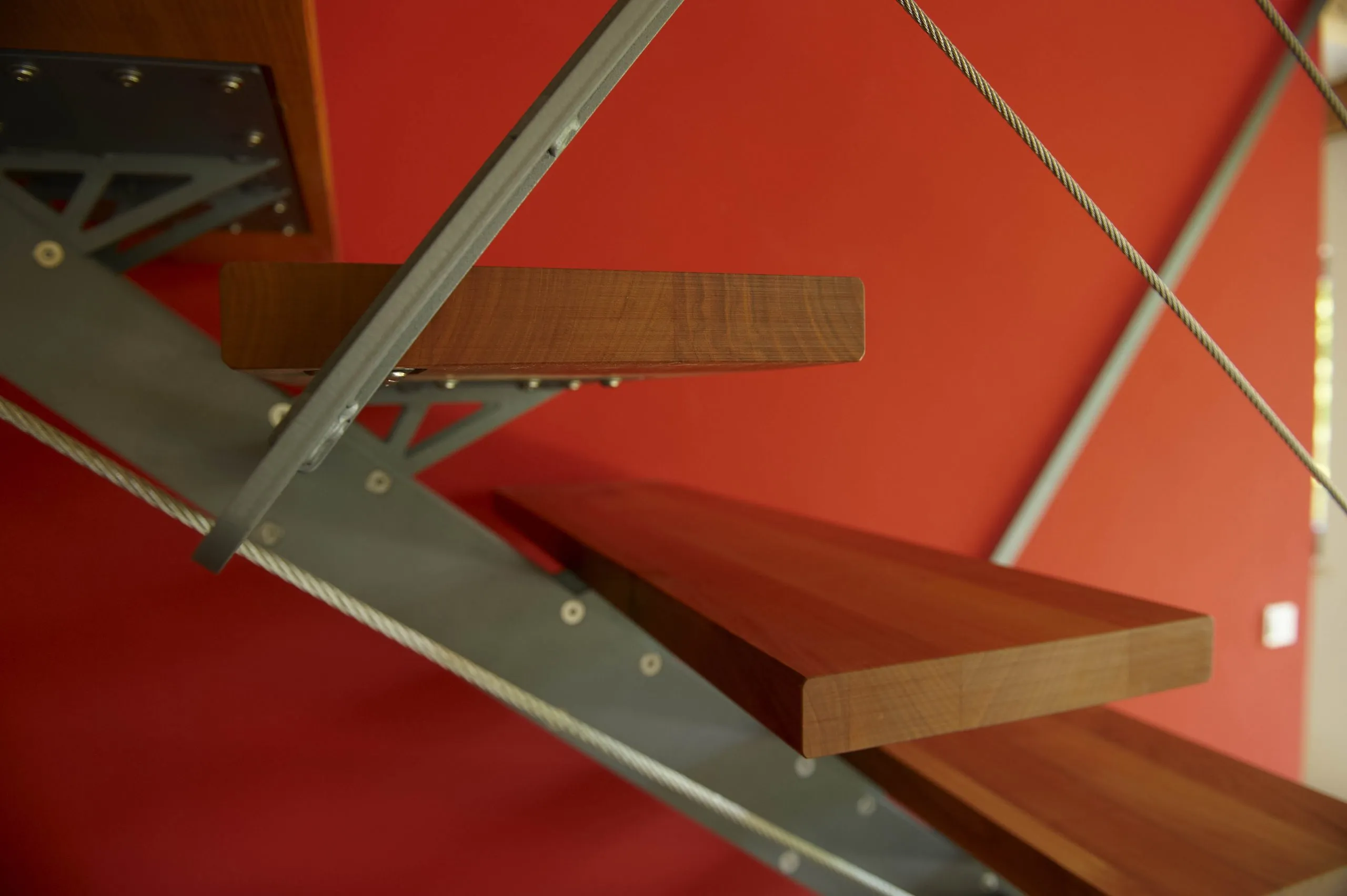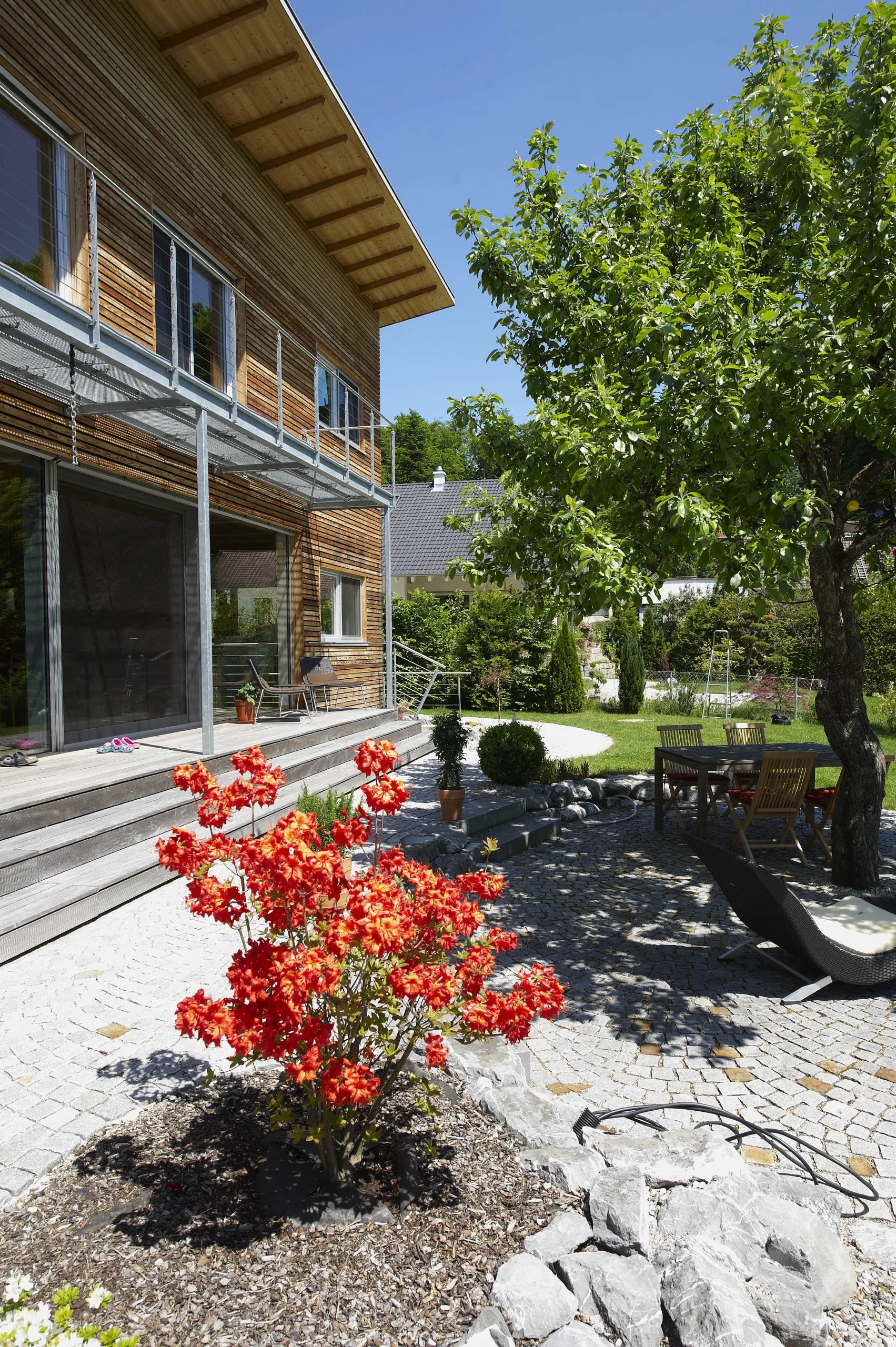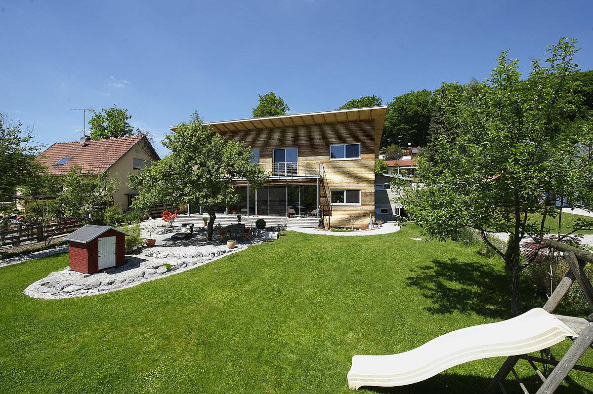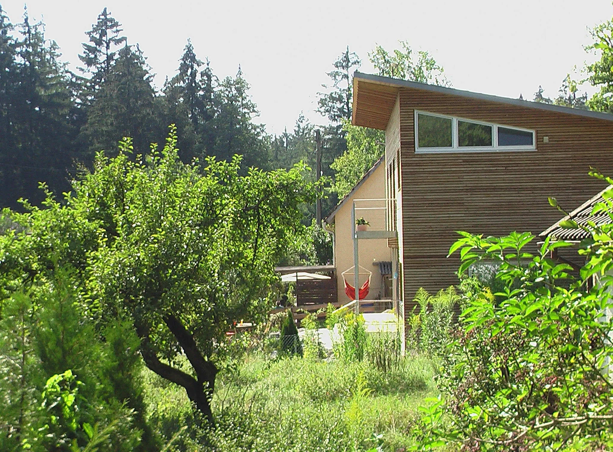 Treppe in Eigenbau, Fassade mit farbloser Lasur