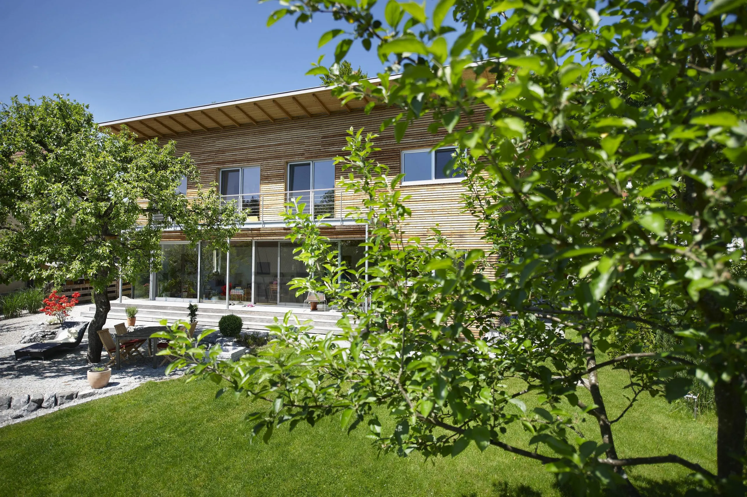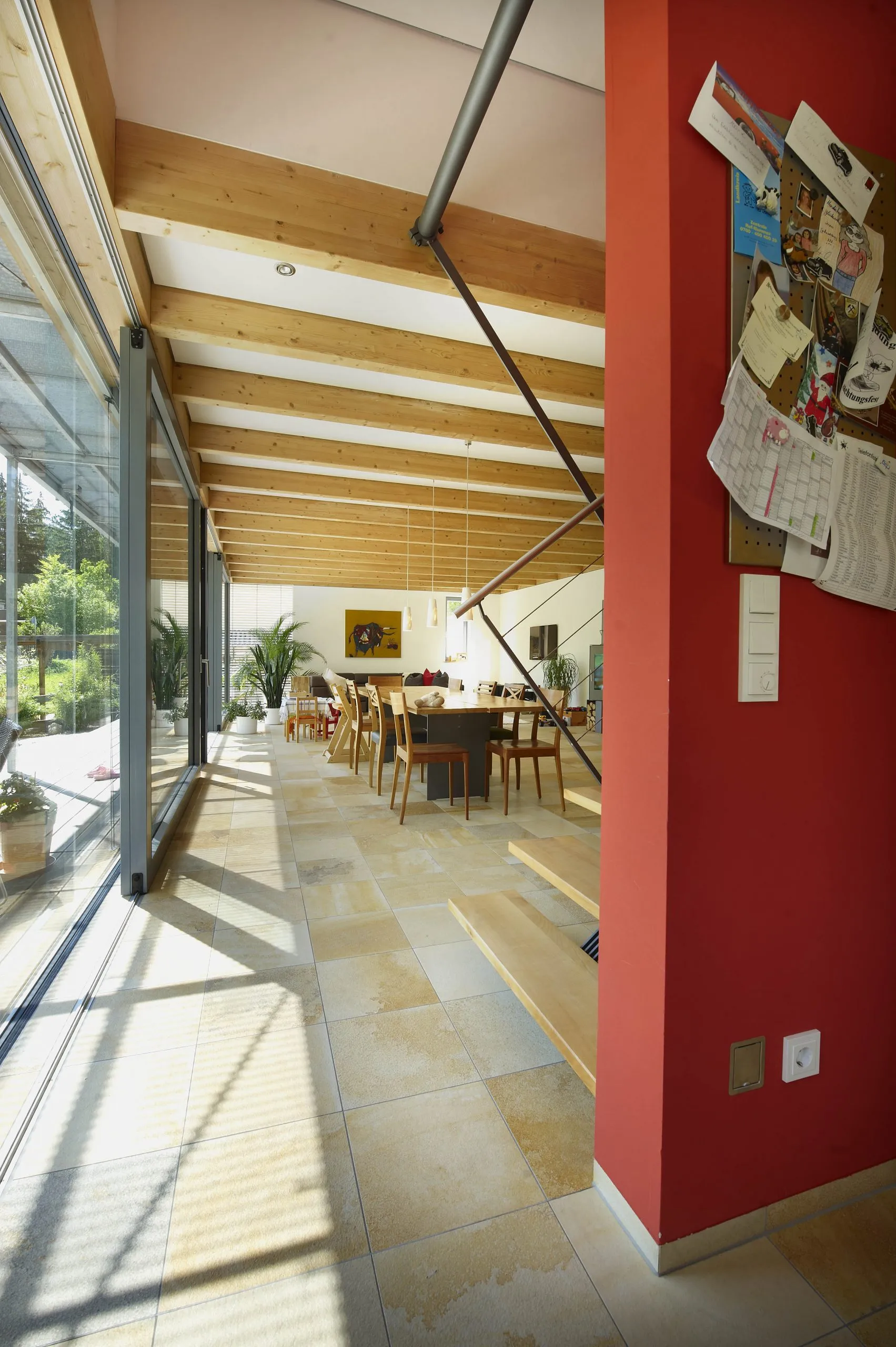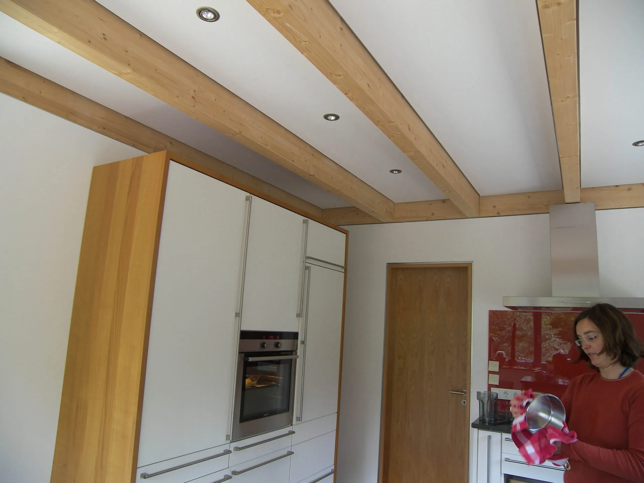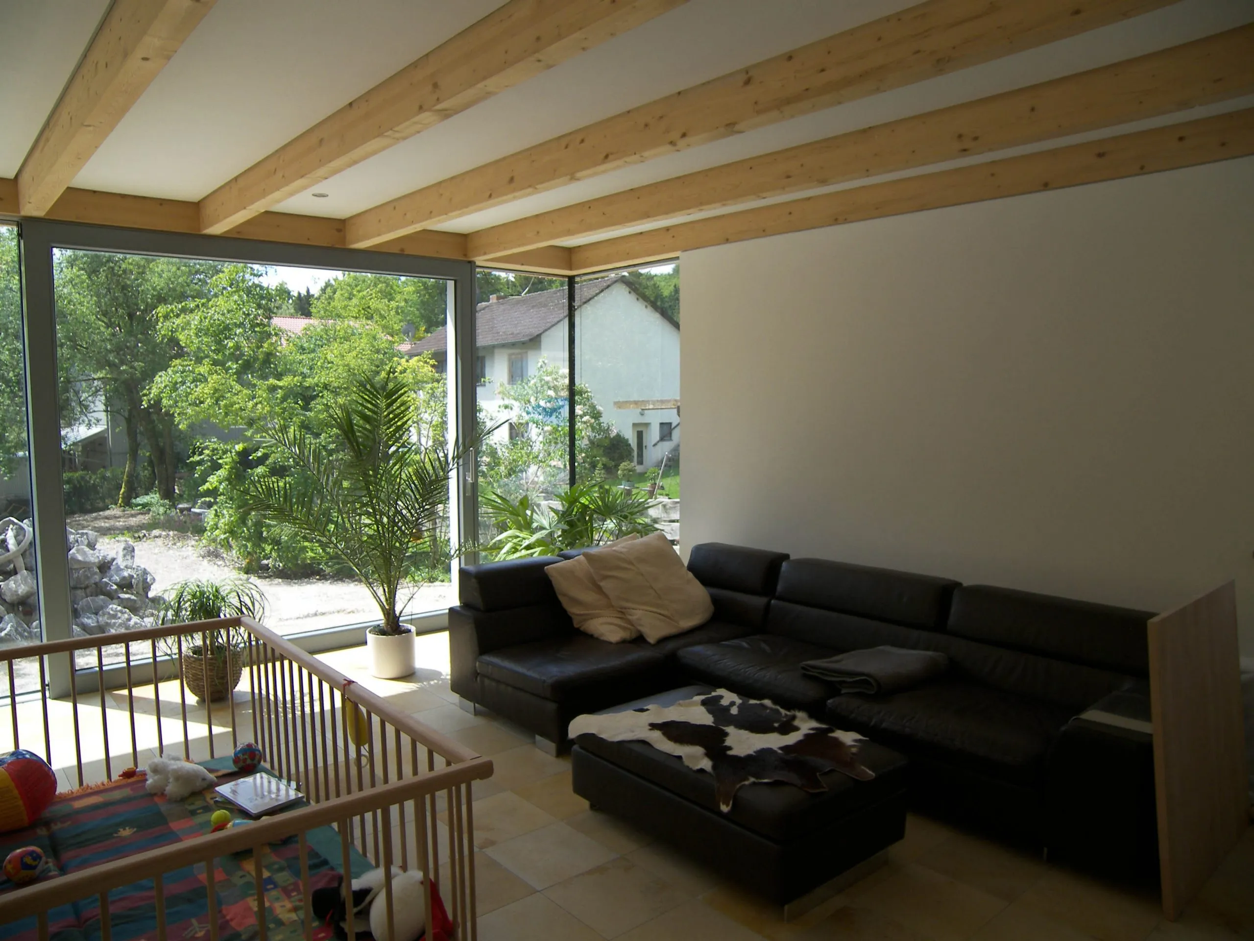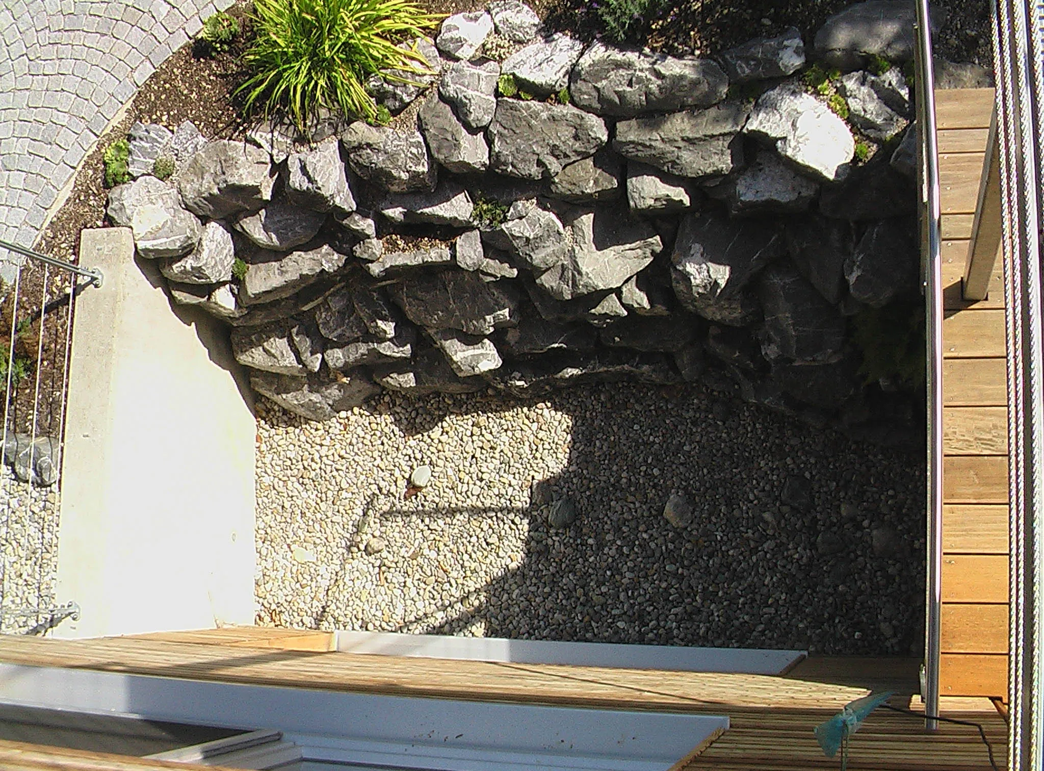 Treppe in Eigenbau, Fassade mit farbloser Lasur