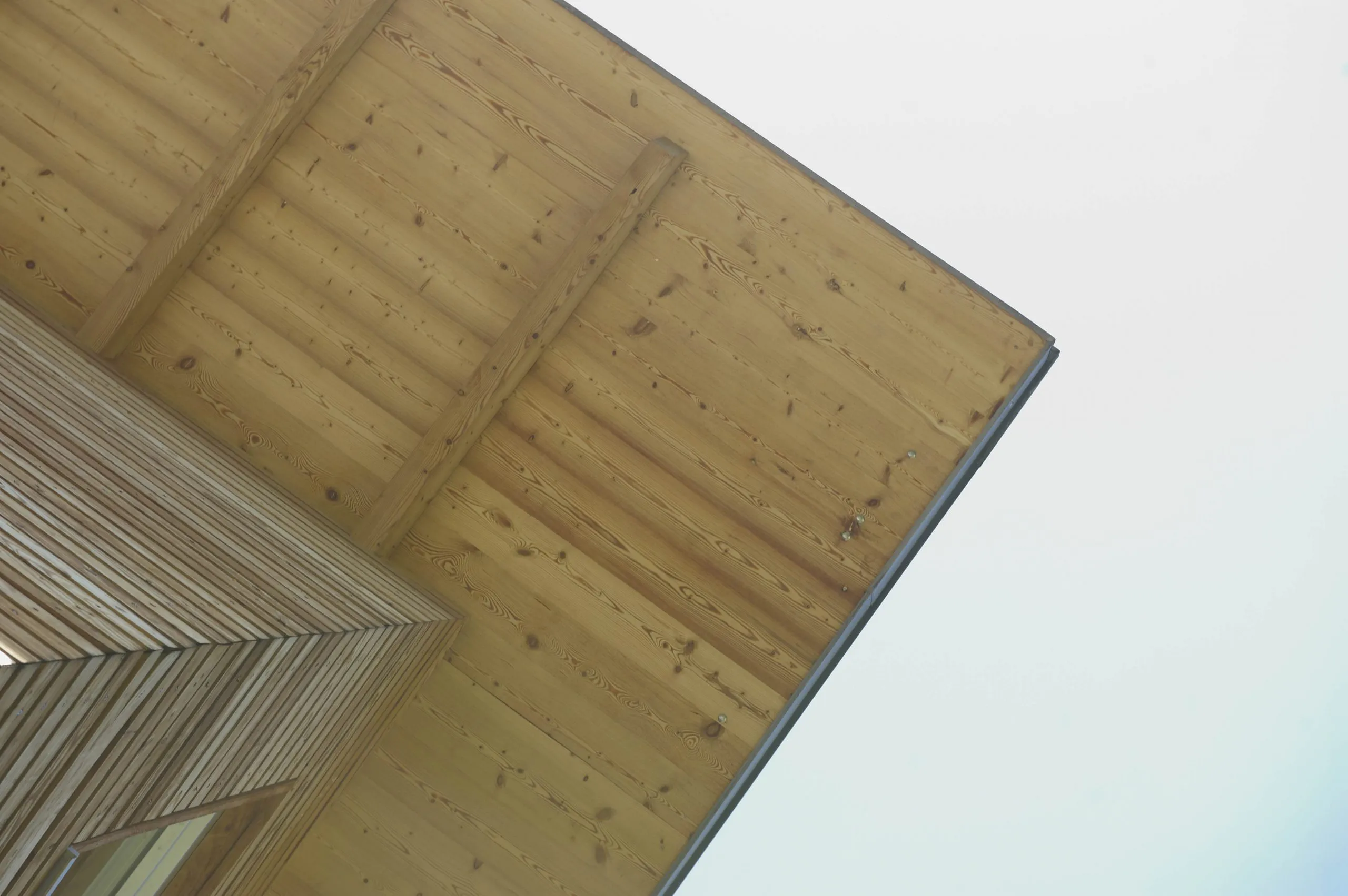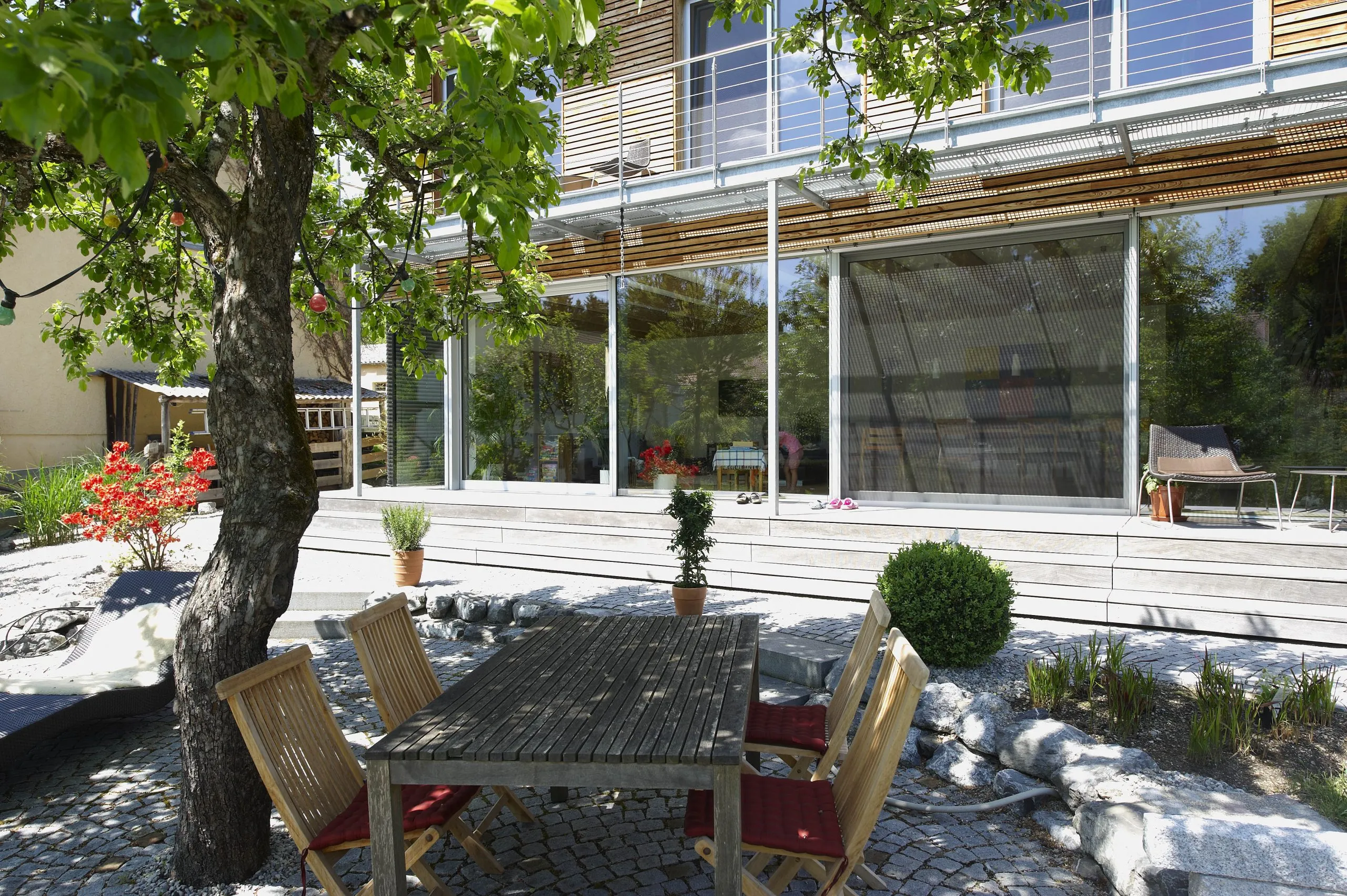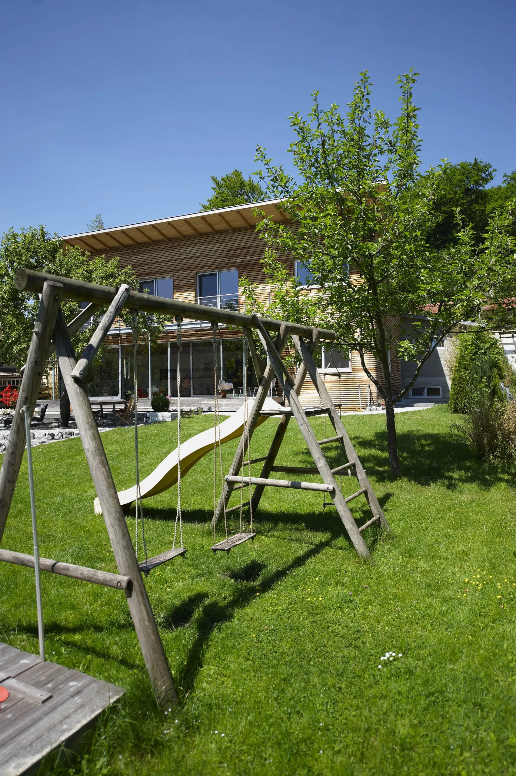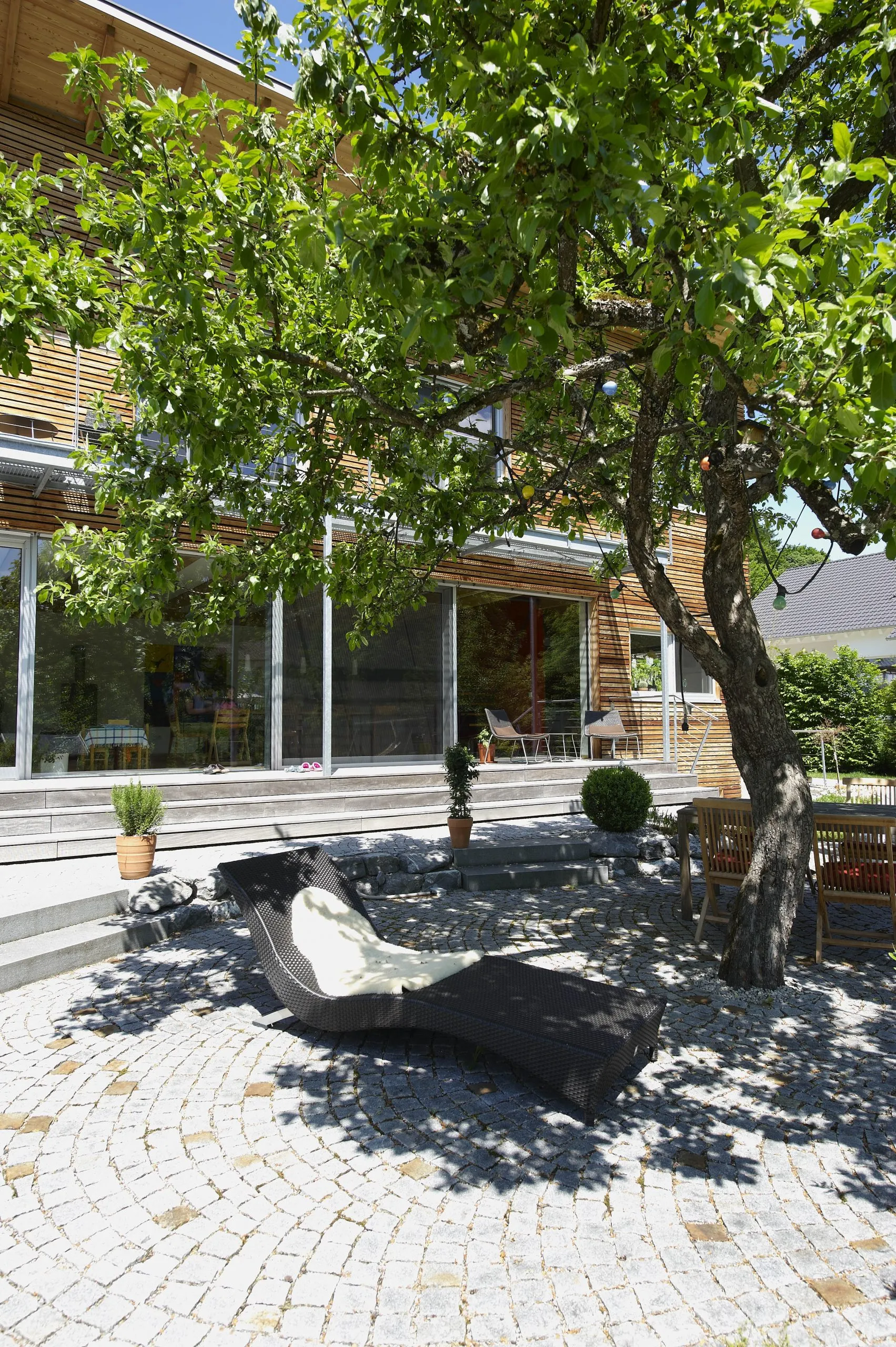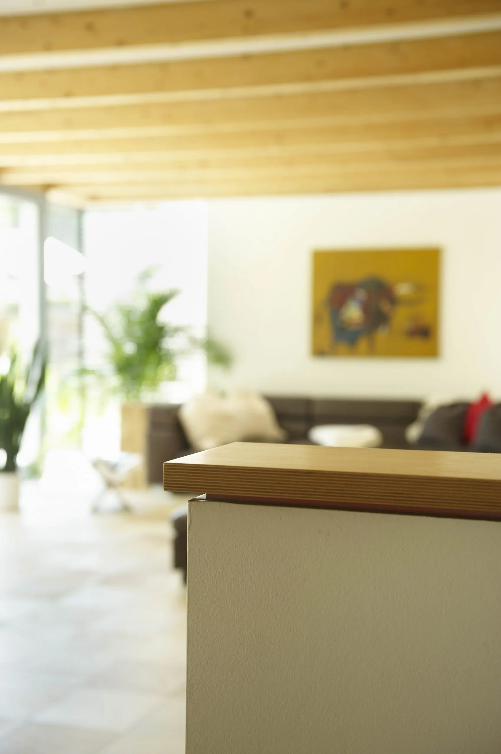 Treppe in Eigenbau, Fassade mit farbloser Lasur