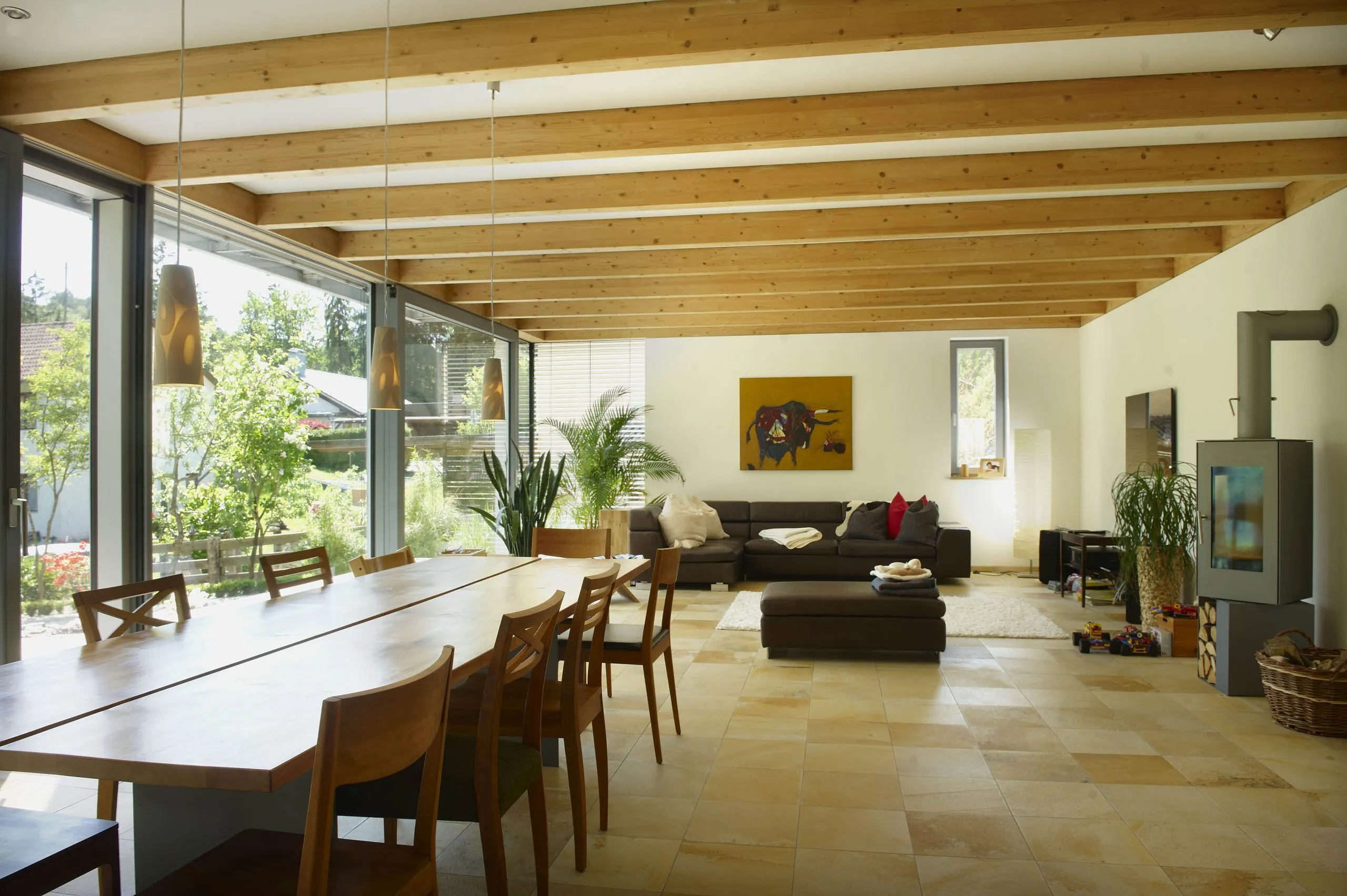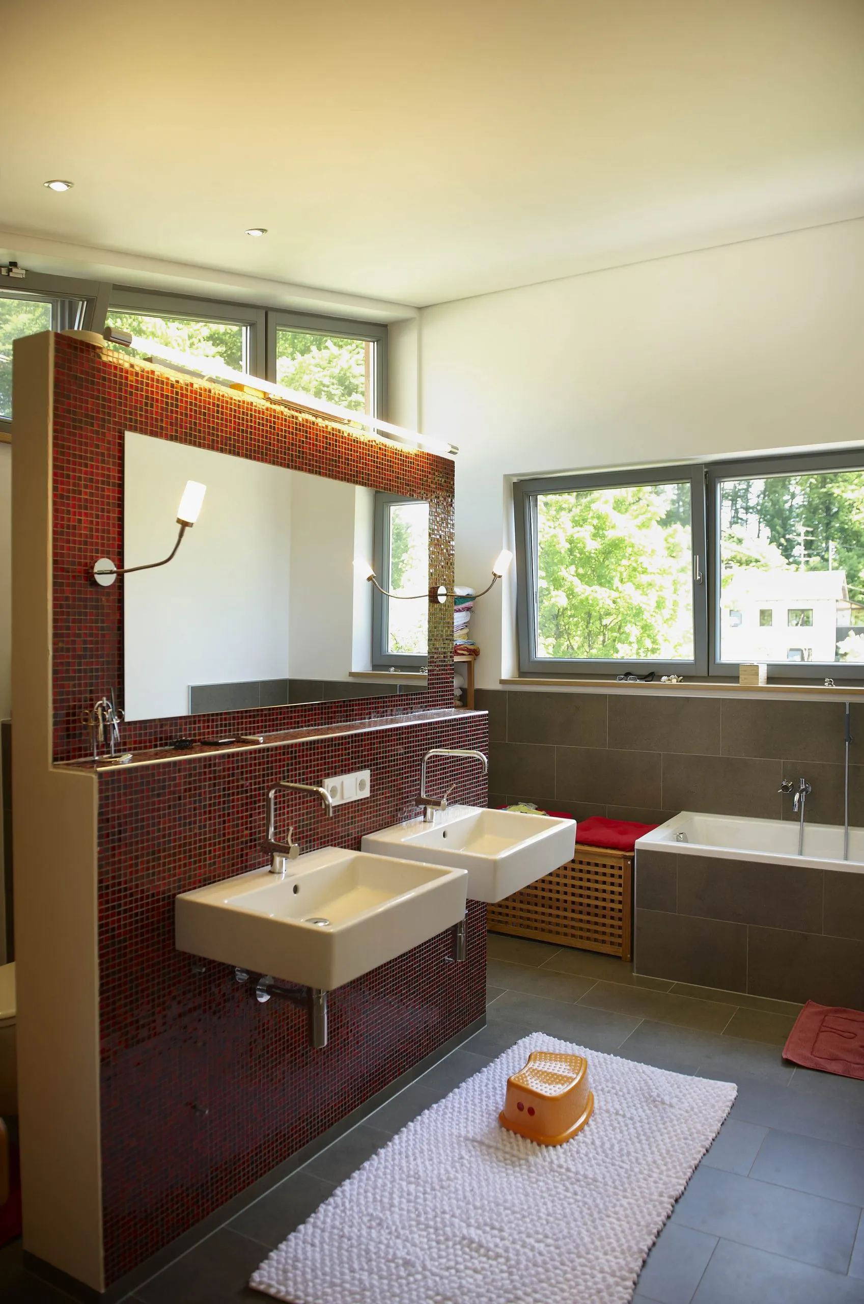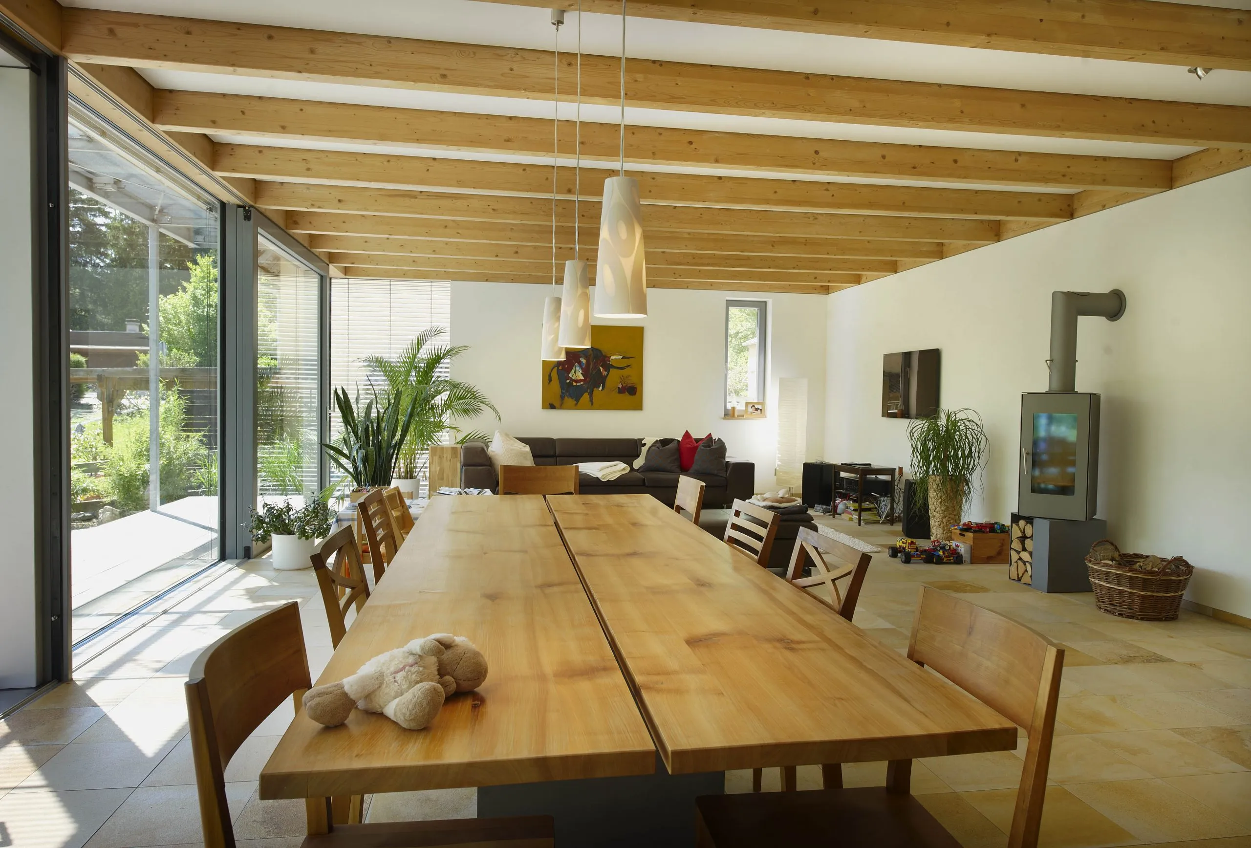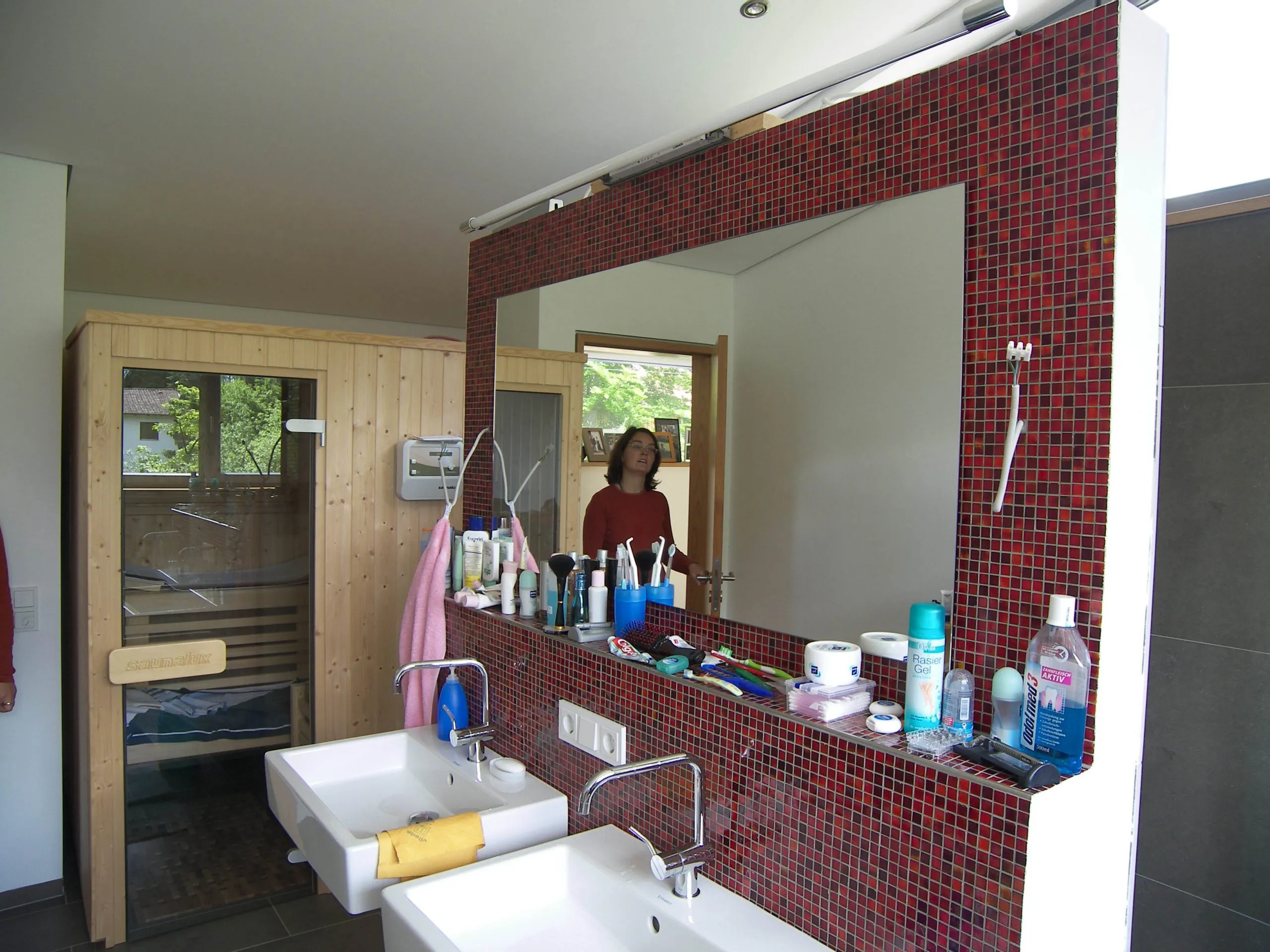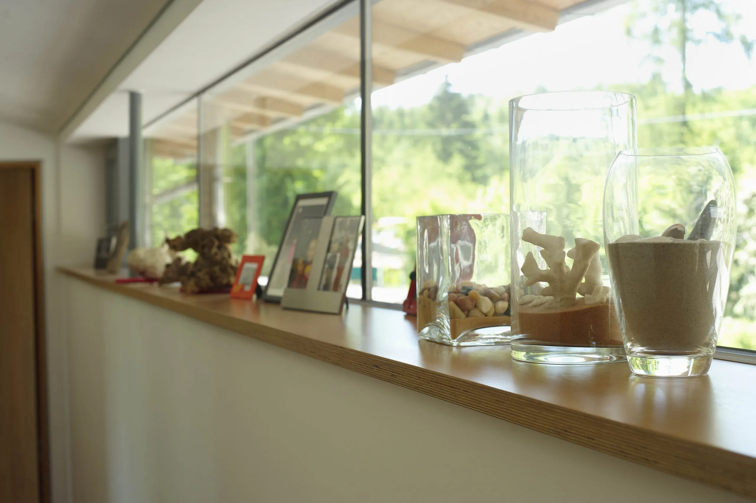 Treppe in Eigenbau, Fassade mit farbloser Lasur