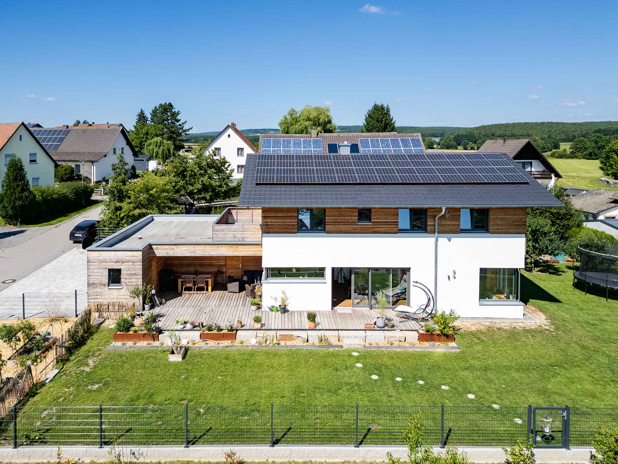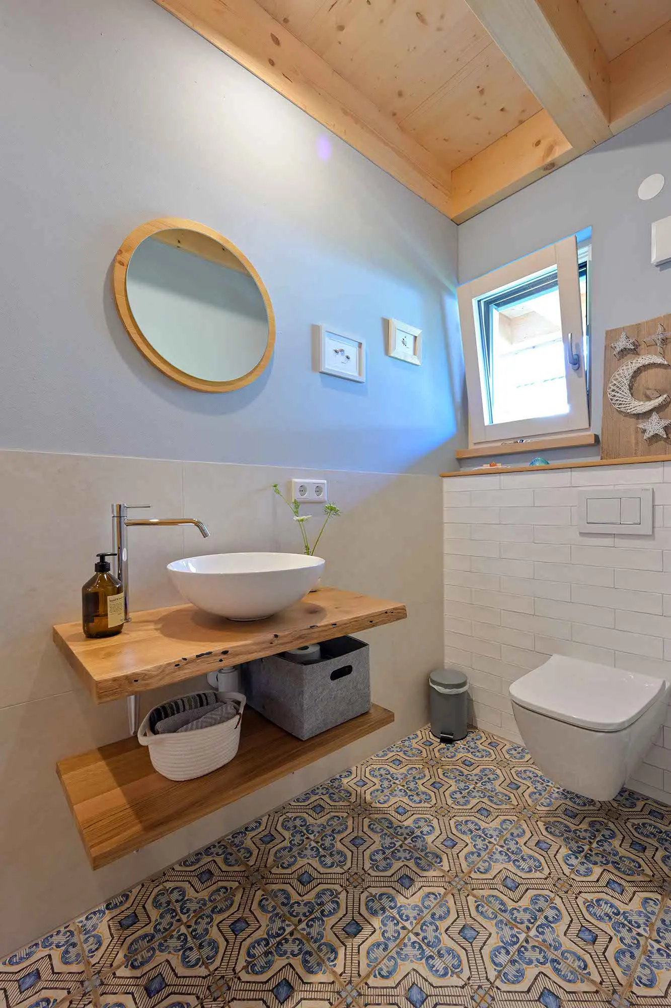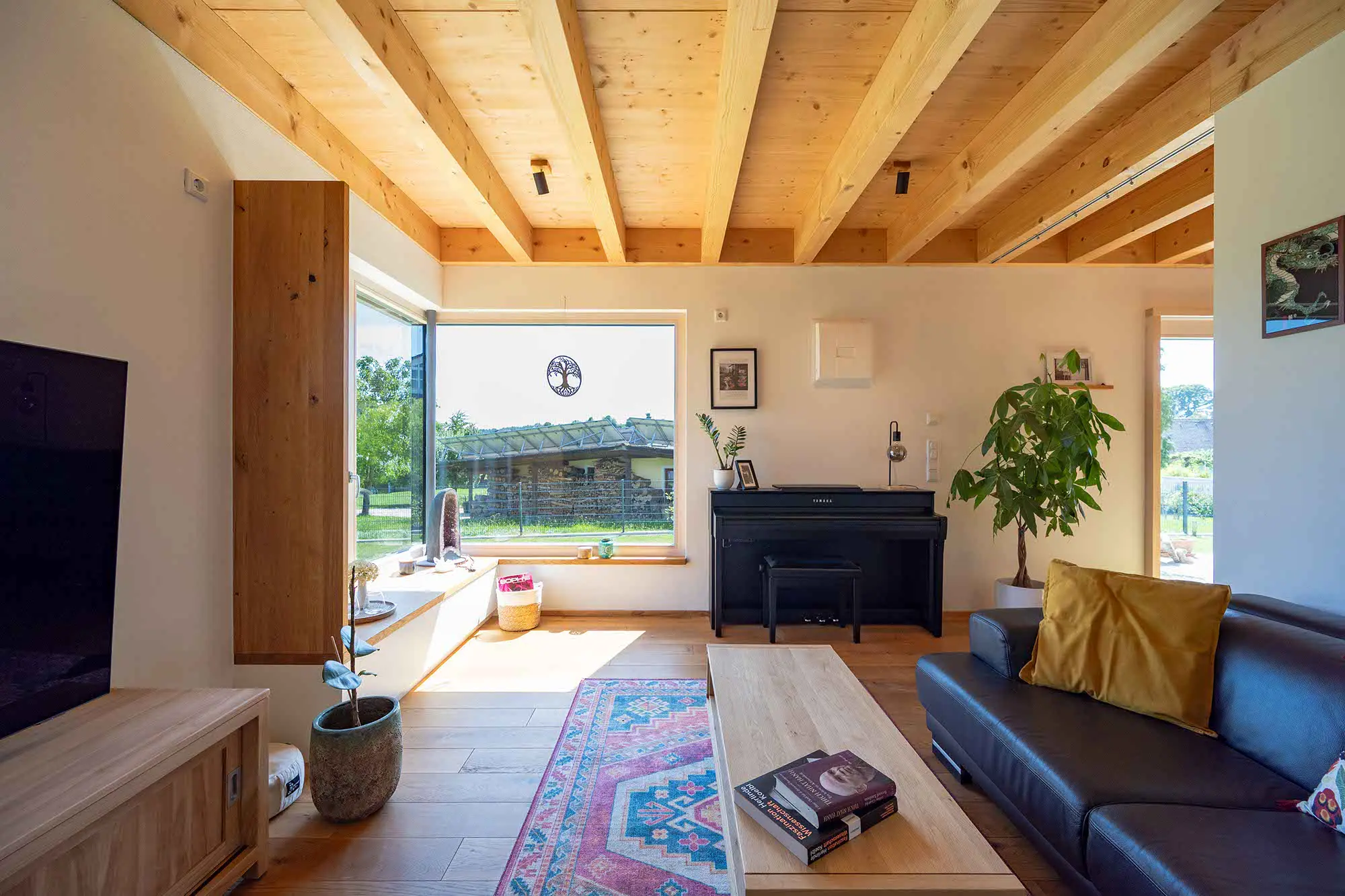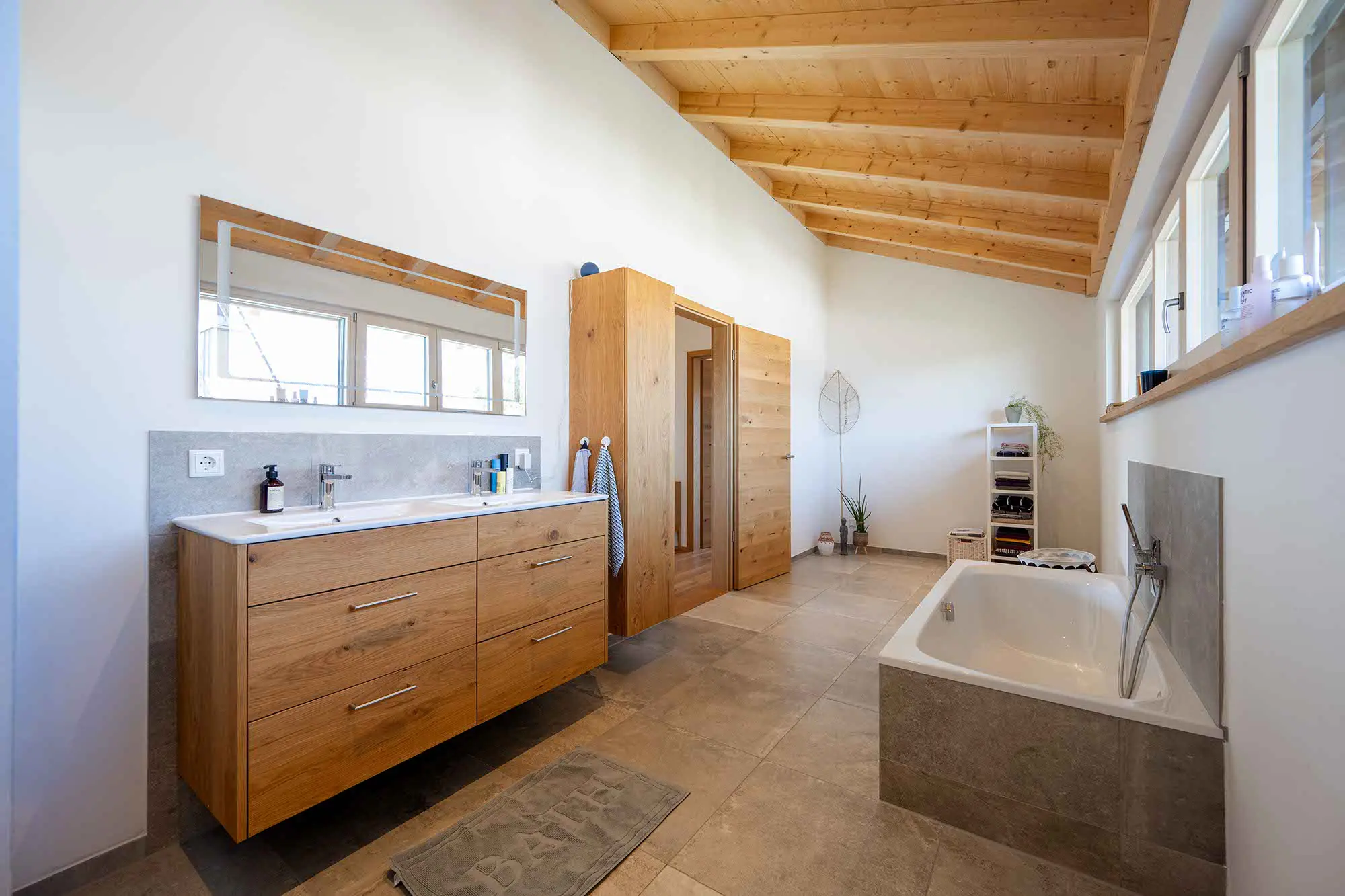 Zirbenwand im Schlafzimmer, Dachterrasse, windgeschützter Freisitz, maßgeschneiderter Stauraum unter der Treppe, Kinderzimmer mit Galerie