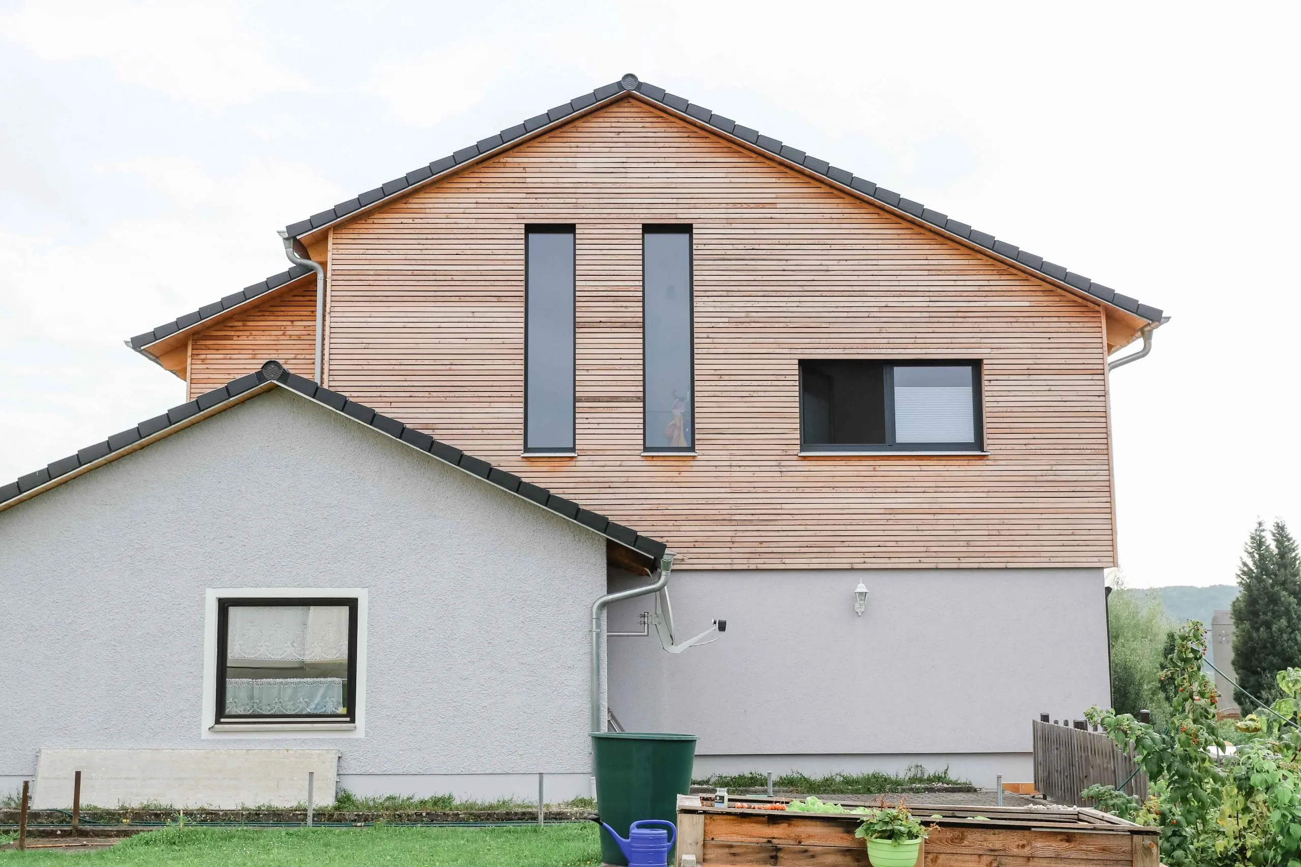 Aufstockung Bestandsgebäude, große Grundfläche, offener Wohn-Ess-Bereich, mit Glasüberdachung, innenliegender Dachterrasse und viel Eigenleistung